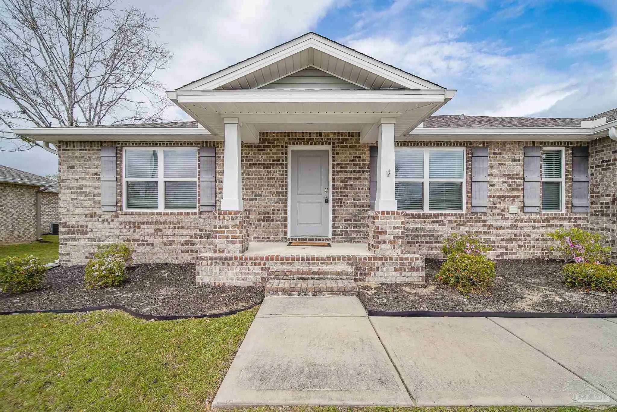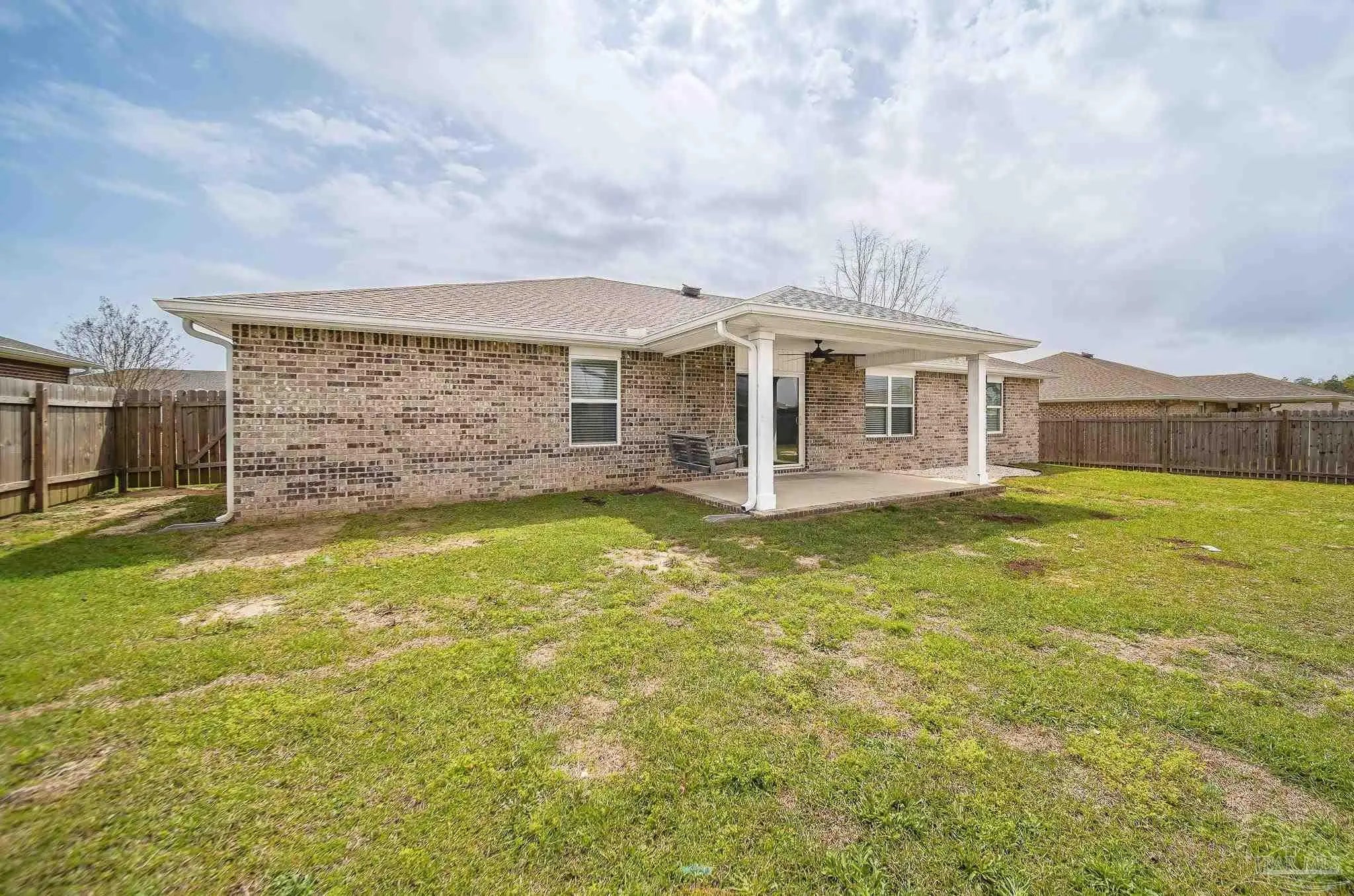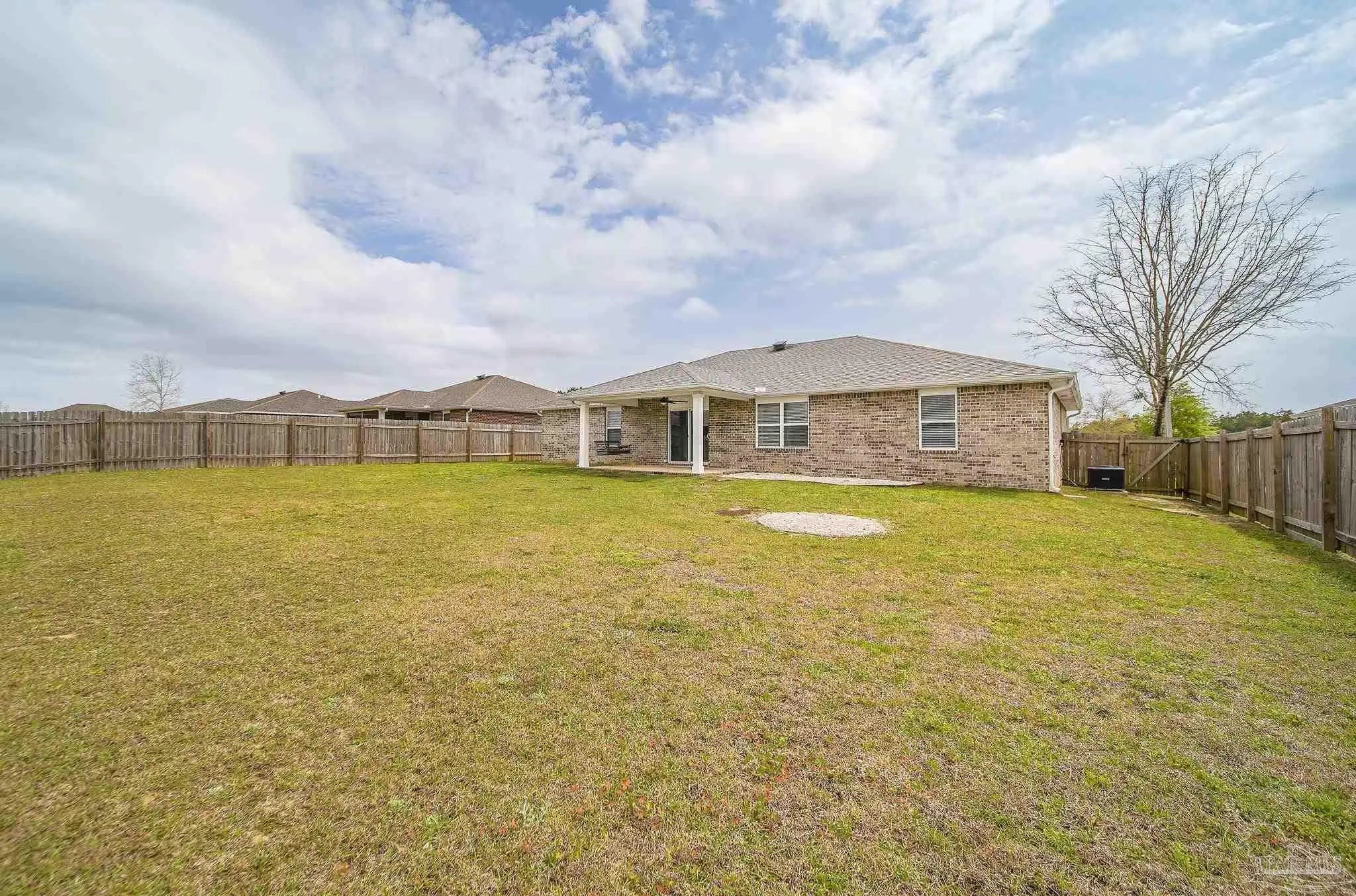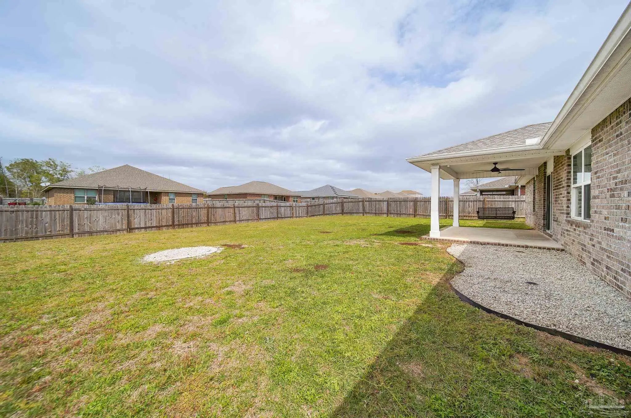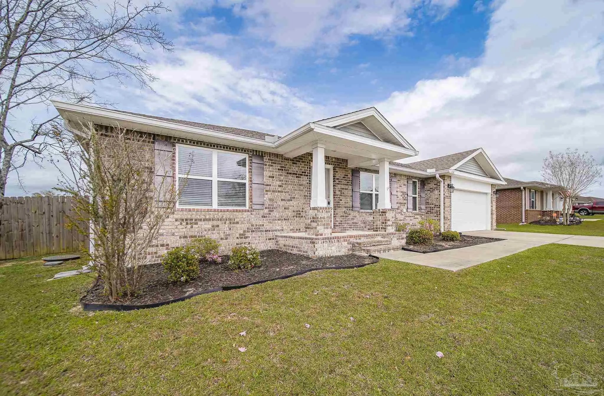 Stunning brick contemporary in the quiet Whisper Creek subdivision! This modern home offers nearly 2,100 square feet of living space including three bedrooms, two full baths, and a separate office. The open floorplan living room and kitchen are highlighted by flowing LVP floors and vaulted ceilings, creating an ideal space to entertain. A formal dining area is off the front entrance and is framed by rustic, floating shelves and a modern light fixture. It has easy access to the amazing kitchen accented with grey/green cabinetry and Platinum Pearl countertops, plus stainless steel appliances and a center island. Split from the guest bedrooms is the private primary suite. With high ceilings, a huge walk-in closet, and ensuite bathroom, it's a true oasis. Speaking of the ensuite, it features a double granite vanity, water closet for extra privacy, a relaxing soaker tub, and a separate shower. Out back is a large, privacy fenced yard for kids or pets to safely play, and a covered patio with a ceiling fan to keep cool during those hot summer afternoons.