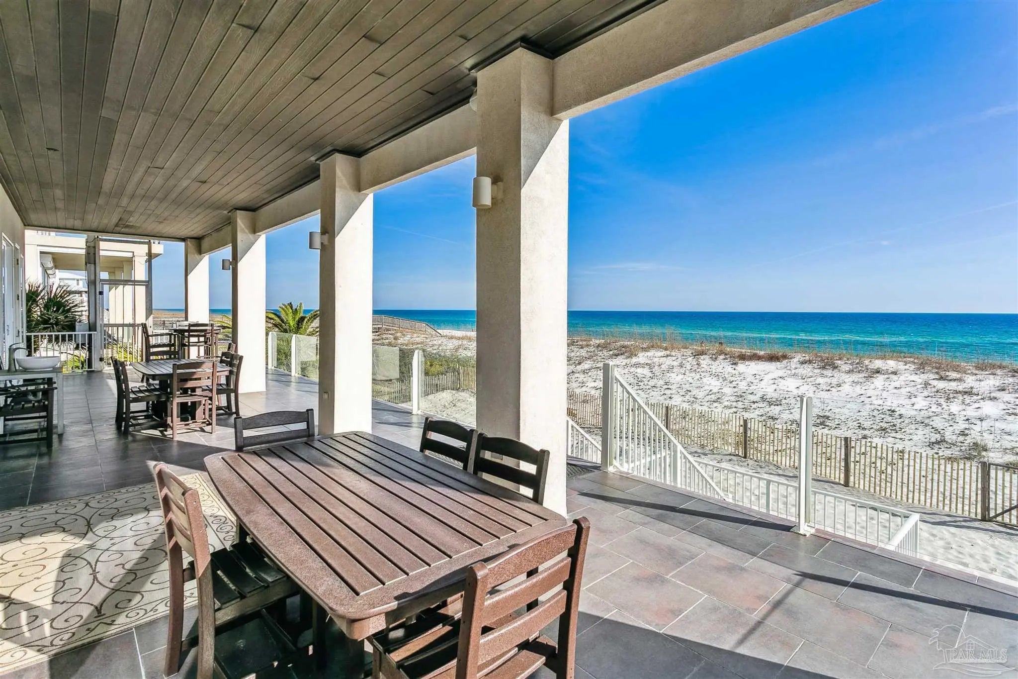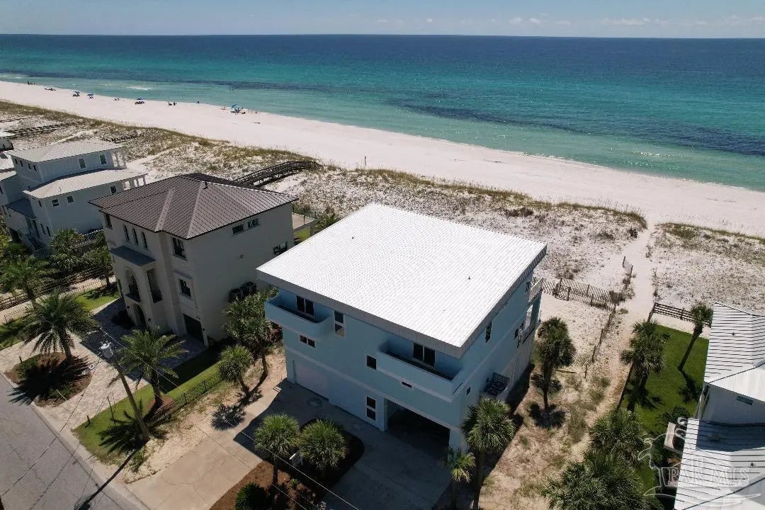 WOW — you can’t get closer to the Gulf, and the view from this stunning home will take your breath away. Located in the coveted first residential block of Ariola Drive, this impressive 4,000+ square foot home sits directly on the sand and offers unmatched access to the emerald waters, sugar-white beaches, and the vibrant dining and entertainment scene. With six bedrooms, five of them featuring en-suite bathrooms, and two expansive living spaces, the home was designed for both comfort and convenience. The first level welcomes you with ample private parking for up to six cars, an outdoor shower, and a grilling area. Upstairs, the main floor features a spacious open-concept living and dining area with seating for large gatherings, a full-size kitchen with bar seating, a wet bar, and a laundry room. A king suite with en-suite bath, an additional guest bedroom, and a full bathroom complete the space. Massive covered decks extend the living area outdoors, where you can enjoy panoramic views and the soothing sound of the waves. The second floor offers a second living area with an efficiency-style kitchen, perfect for additional guests or entertaining. Here you’ll also find four bedrooms, including two gulf-front king suites with private baths and balcony access, a third king suite with en-suite bath, and a versatile guest room with a queen bed and twin bunk and en suite. Enjoy being the closest you can be to the Gulf and Restaurants!
