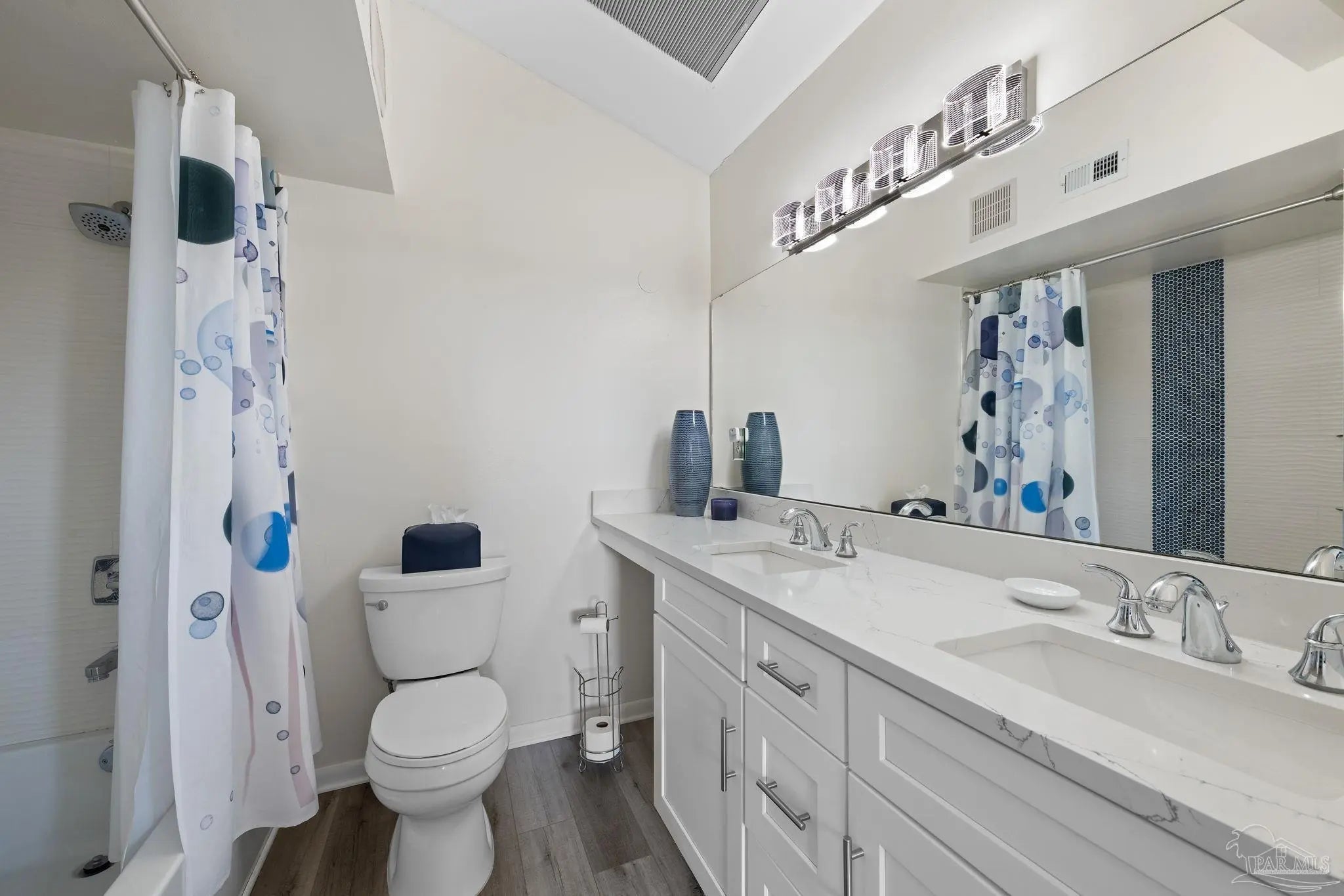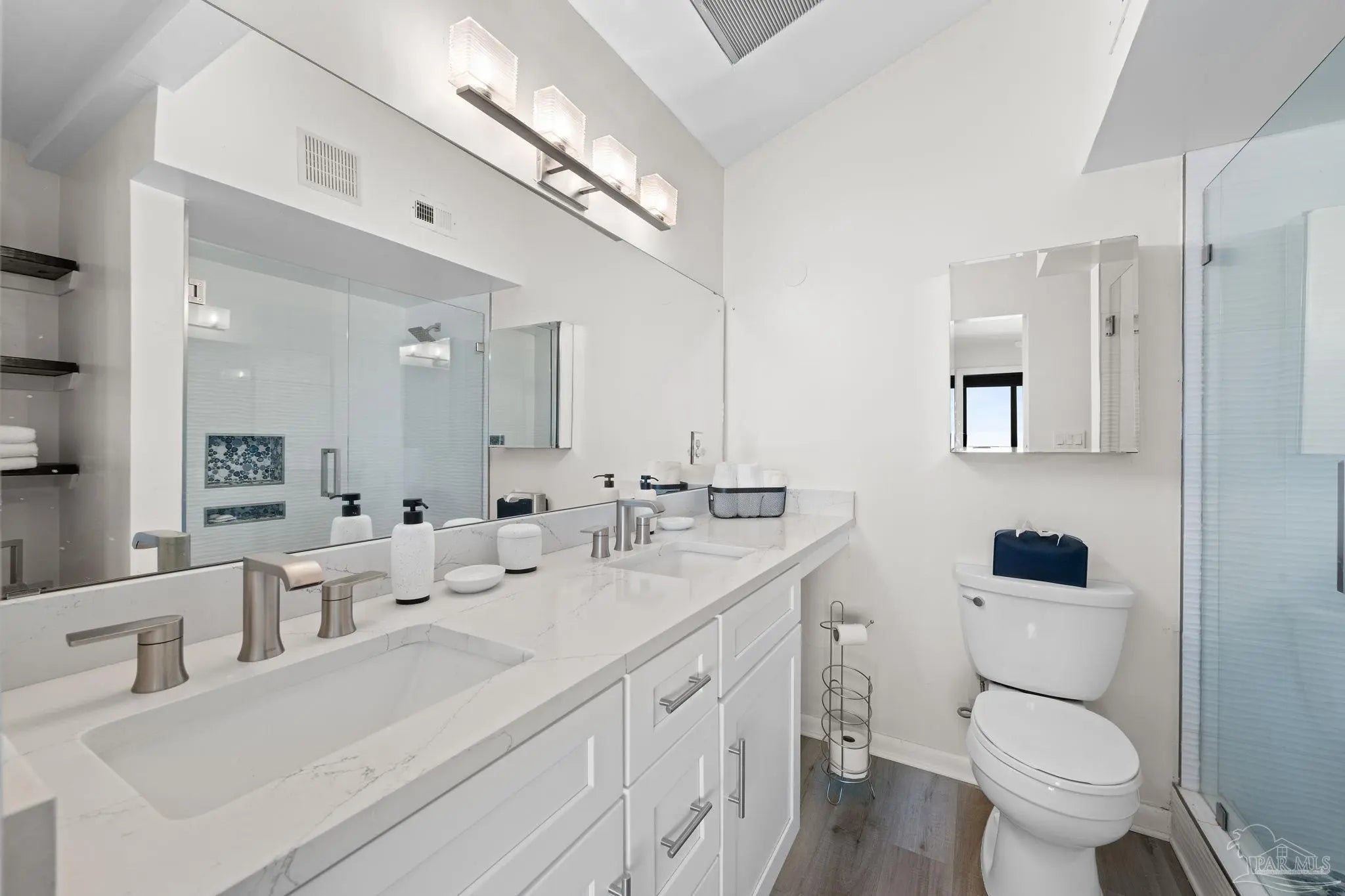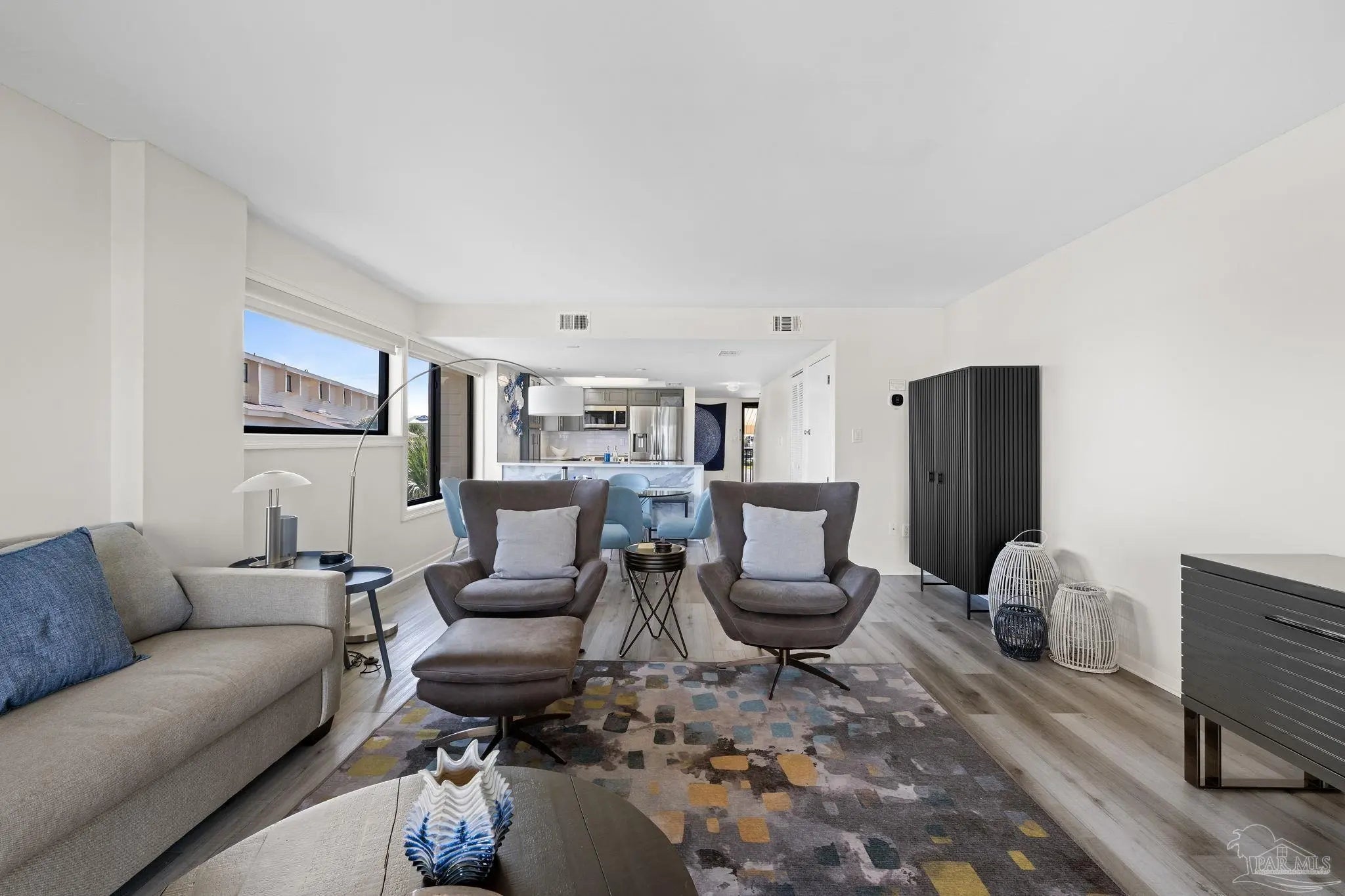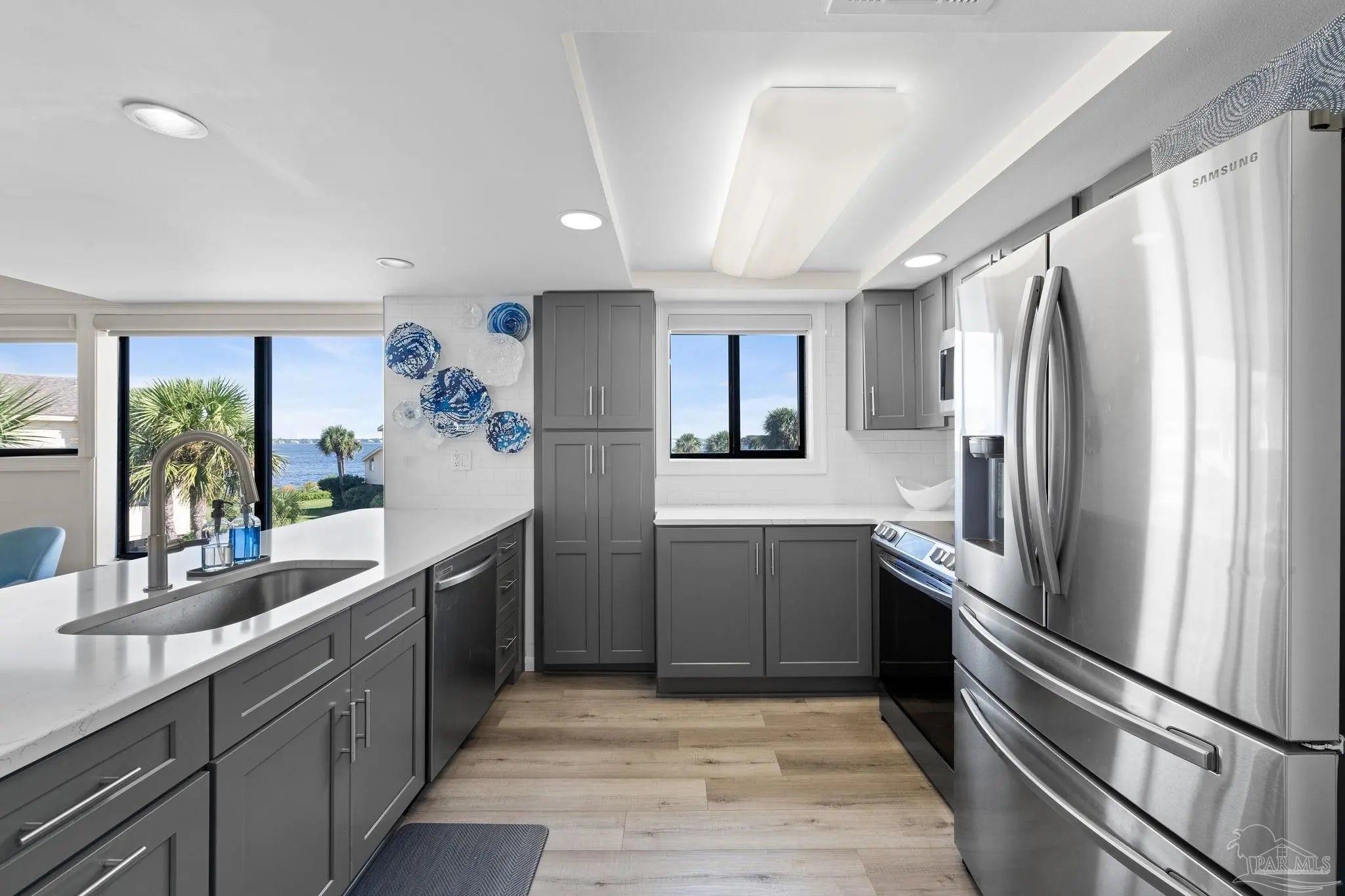 Welcome to your beachside escape at Santa Rosa Dunes on Pensacola Beach, where this fully remodeled 2-bedroom, 2-bathroom waterfront condo offers an unparalleled blend of luxury, comfort, and coastal charm. Perfectly positioned along the serene Santa Rosa Sound, this property captures breathtaking water views and vibrant sunsets, creating an idyllic setting for a primary residence, vacation getaway, or lucrative investment opportunity. Step inside to discover an updated interior featuring durable luxury vinyl plank (LVP) flooring, am expanded kitchen equipped with sleek stainless steel appliances, quartz countertops, and custom cabinetry, complemented by modern lighting fixtures that enhance the contemporary ambiance. The open-concept living area seamlessly connects to a private balcony, perfect for savoring morning coffee or evening cocktails while soaking in the Sound views. Residents of this exclusive community enjoy access to an array of resort-style amenities, including the largest pool on Pensacola Beach, ideal for refreshing swims or lounging under the sun, a fitness center, and well-maintained tennis courts for active lifestyles. For water enthusiasts, the property offers a community dock with mooring balls, making it a haven for boating enthusiasts eager to explore the Gulf Coast waters. With direct beach access just steps from your door, this move-in-ready condo promises a lifestyle of relaxation and recreation, blending coastal elegance with unmatched community features. Whether you're seeking a permanent seaside retreat or a high-demand rental property, this Santa Rosa Dunes condo delivers the ultimate Gulf Coast experience.