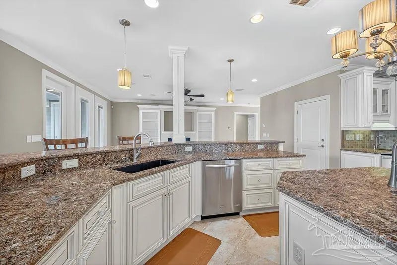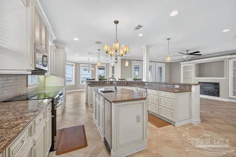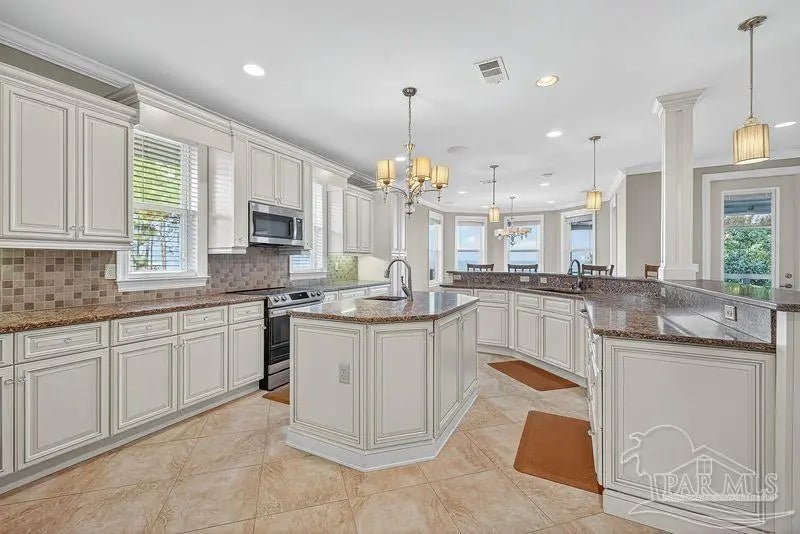 Experience the best of waterfront living in this custom built home designed for comfort and style! The main floor of this beautiful home offers a welcoming entrance with gorgeous stained glass doors ~ a nicely appointed living area with built in bookshelves and a fireplace ~ a nice half bath ~ an inviting kitchen with elegant cabinetry, quartz counter space, a convenient island and a breakfast bar ~ a dedicated dining area overlooking the water. Your kitchen also features a nice wetbar with an icemaker, pantry and lighting above the top cabinets. Just off the kitchen is your large laundry area which also contains more pantry space! Also on this floor with a waterview is your main suite with plenty of natural light, a 5' x 6' walk-in closet and adjacent is your luxurious main bath with dual vanities, beautiful cabinets, large shower and a 7' x 9' walk-in closet. Just off the living area, you can enjoy the outdoors and waterview in your 12' x 16' screened porch. On the second level, you have two inviting guest bedrooms, both with water views, a shared bath plus a wetbar, a 12' x 15' living area that could be used as a reading or TV area, and just off the bedrooms is a 9' x 39' private covered porch...another place to enjoy the waterview. From the two car garage, you can access all levels via the stairs or the elevator. The garage is 47' deep and also gives you an 11' x 12' air conditioned room that could be an office, gym, etc, plus an area for a workshop. Outside is what you'll enjoy with a fenced backyard, wrap around deck, nice 75' dock leading to the 16' x 16' covered platform area complete with a boat lift, perfect for your pontoon boat. Relax on the swing and enjoy the beautiful views! There are more details to this lovely home that you will want to see in person, so schedule your viewing today and start your waterfront lifestyle!