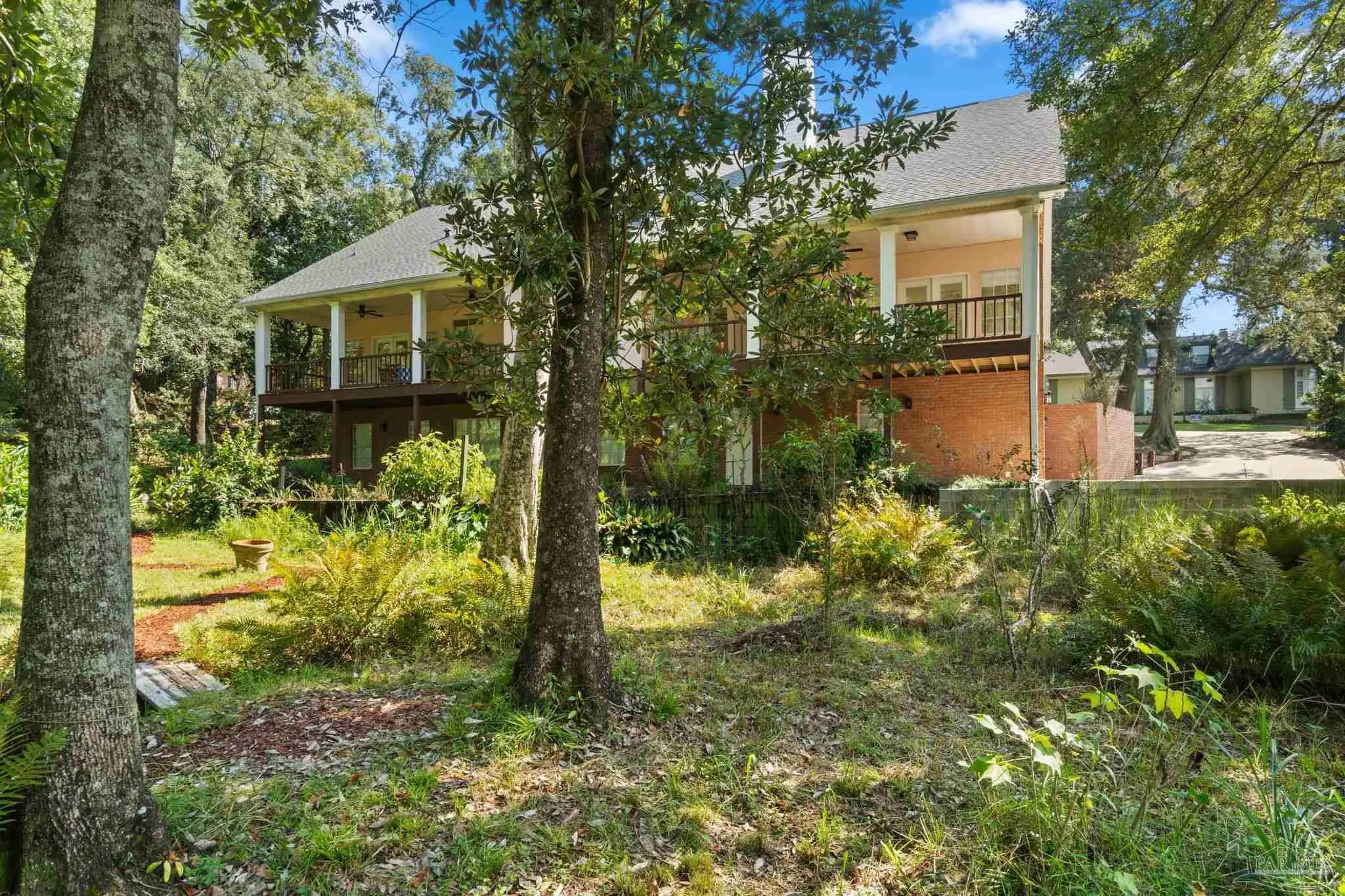 Come see this waterfront home! No HOA, East Hill neighborhood on Bayou Texar. This custom-built beautiful waterfront home has an extra unfinished 733 square-foot apartment/basement downstairs with four large windows that lookout on the bayou and large covered porch. The apartment has one-bedroom, one full bathroom, walk in closet, family room, and a kitchen area. Plumbing pipes, Electrical sockets and HVAC closet are already in place (roughed in), the studs are up for the walls, just needs to be finished, has its own private entrance from the back porch. This added space is a great asset to the home's main features, three bedrooms, three full bathrooms, formal dining room, living room/library and a family room that has the open concept to the kitchen. Off of the family room is a sunroom/kitchen nook that overlooks the beautiful view of the backyard foliage and the path that leads down to the Bayou. Sit on the back porch enjoy your morning coffee or just relax at the end of a busy day, so peaceful and stress free. Plenty of room to entertain, enjoy the extra space the huge porches have to offer. Roof replaced 2022, rear gutters replaced 2023 front gutters replaced 2025, refrigerator 2021, dishwasher 2025, HVAC 2023, Hot water heater 2022, garbage disposal 2022, most recessed lights replace. All columns on the front porch replaced 2025, outside porch ceiling fans and flood lights (LED lights) replaced 2025. All outside light fixtures replaced except the two by front door. Termite treatment 2025.