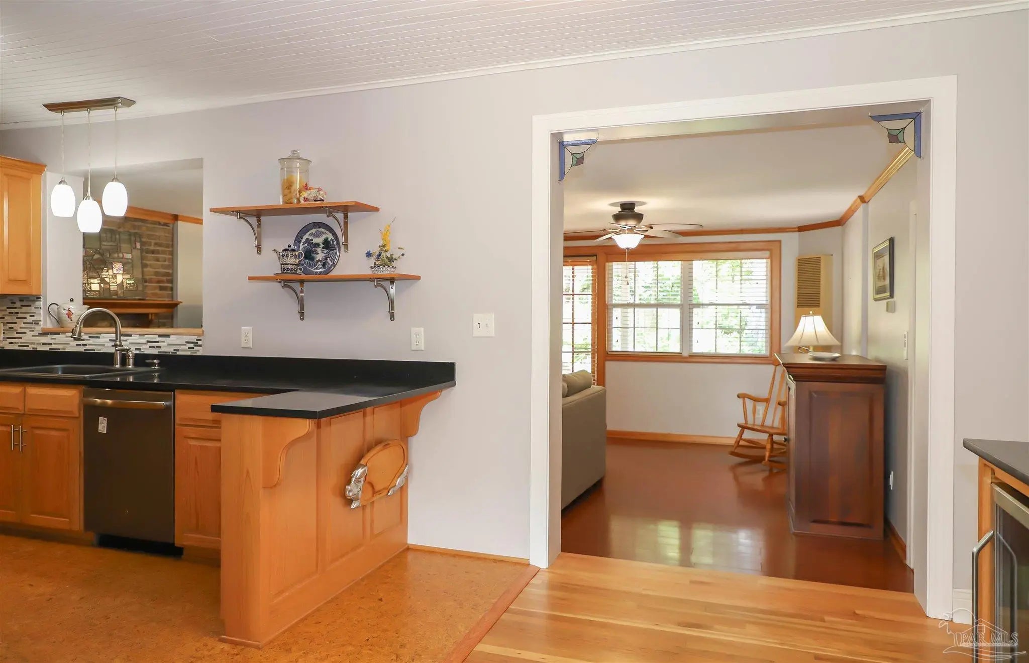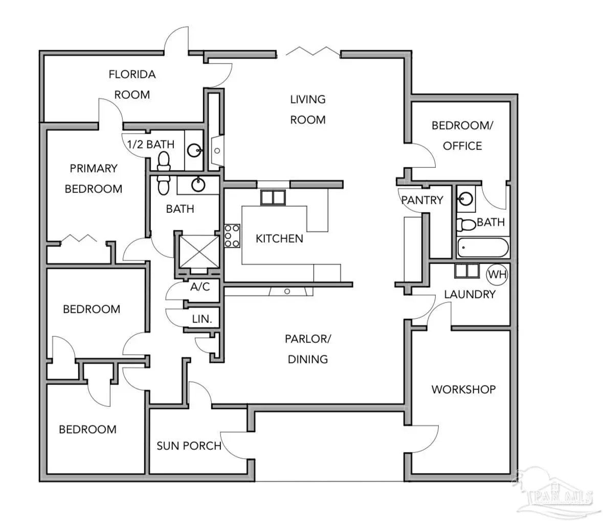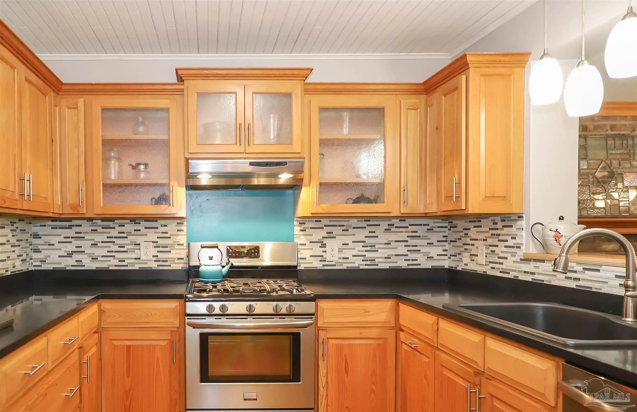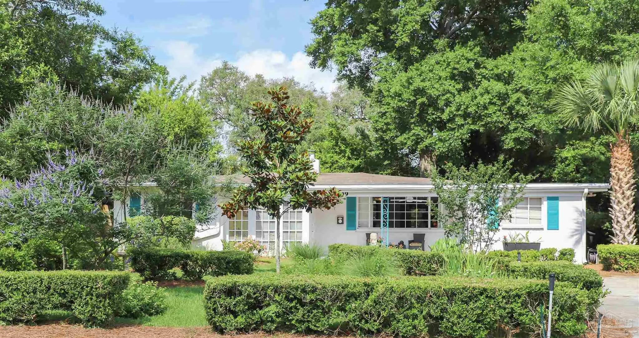 Experience timeless charm and modern comfort in this spacious midcentury brick home, perfectly situated in the desirable North Hill Historic District of Pensacola. With four bedrooms and two and a half baths, this well-maintained residence showcases classic hardwood floors, elegant crown molding, and tastefully updated kitchen and baths. The chef’s kitchen features soapstone countertops, cork flooring, a walk-in pantry, newer appliances, and a bar area with dual beverage coolers, including one for wine. The main bathroom impresses with a luxurious walk-in shower, while two living areas each offer a cozy fireplace for relaxing evenings. Light pours into the dining room through large windows, and both front and back enclosed porches provide year-round enjoyment. Step outside to a private backyard oasis with brick pavers and lush landscaping. Additional highlights include two sunrooms, an attached workshop, storm shutters, and insurance-friendly mitigation by Rebuild Northwest Florida. Major system upgrades include a shingled roof (2016), flat roof (2020), and HVAC (2021). Just minutes from downtown Pensacola’s nightlife, festivals, and cultural scene—this home beautifully blends historic charm with modern updates. A true must-see! Your Realtor has access to recent clear home inspections under documents.