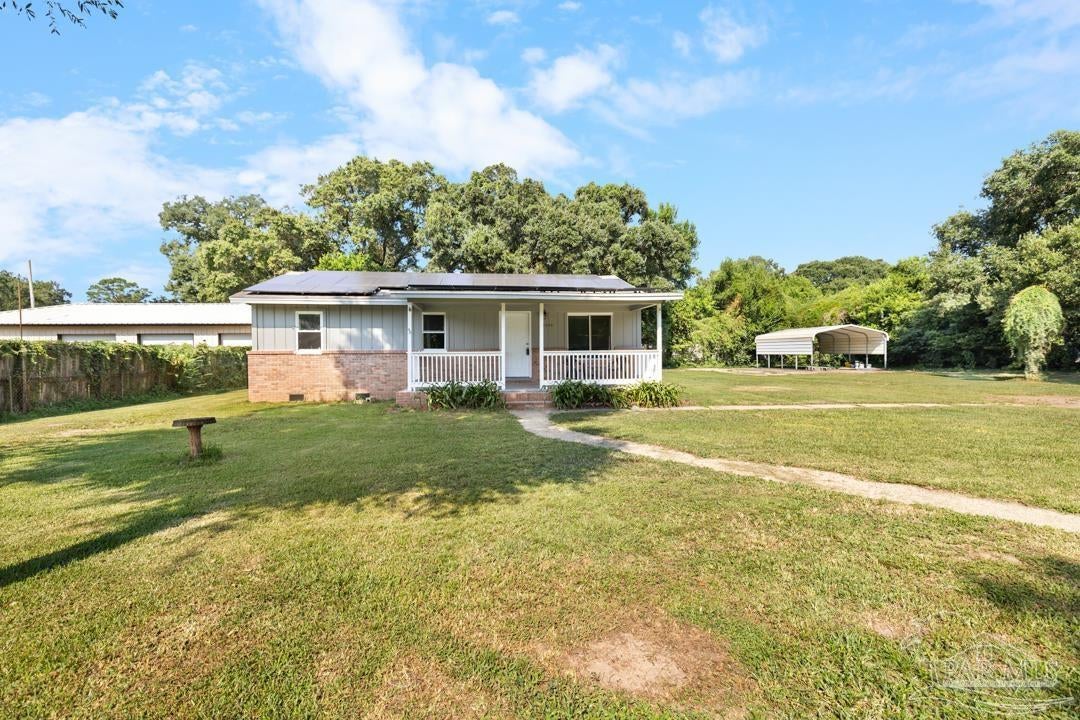 Wonderful opportunity in this 3 bedroom home. It is truly a "see to appreciate" property. The size of the property and the location could provide lots of opportunities. The solar panels make a big difference in the electric bill. You will also find underground utilities. Much has been done in the last five years and particularly in the last six months as it was prepared for the market. The charming front porch is a great place to enjoy a cup of coffee or tea. The interior has been completely painted. The new LVP flooring is very attractive as well as the completely updated bathrooms. The solar array is very efficient, averaging 1.2 MWh per month. It is capable of powering almost the entire house except in extreme weather months. The windows are double pane, double hung and impact rated. The extra large lot offers multiple opportunities. The location is convenient between US 29 and Palafox and close to Olive Rd.