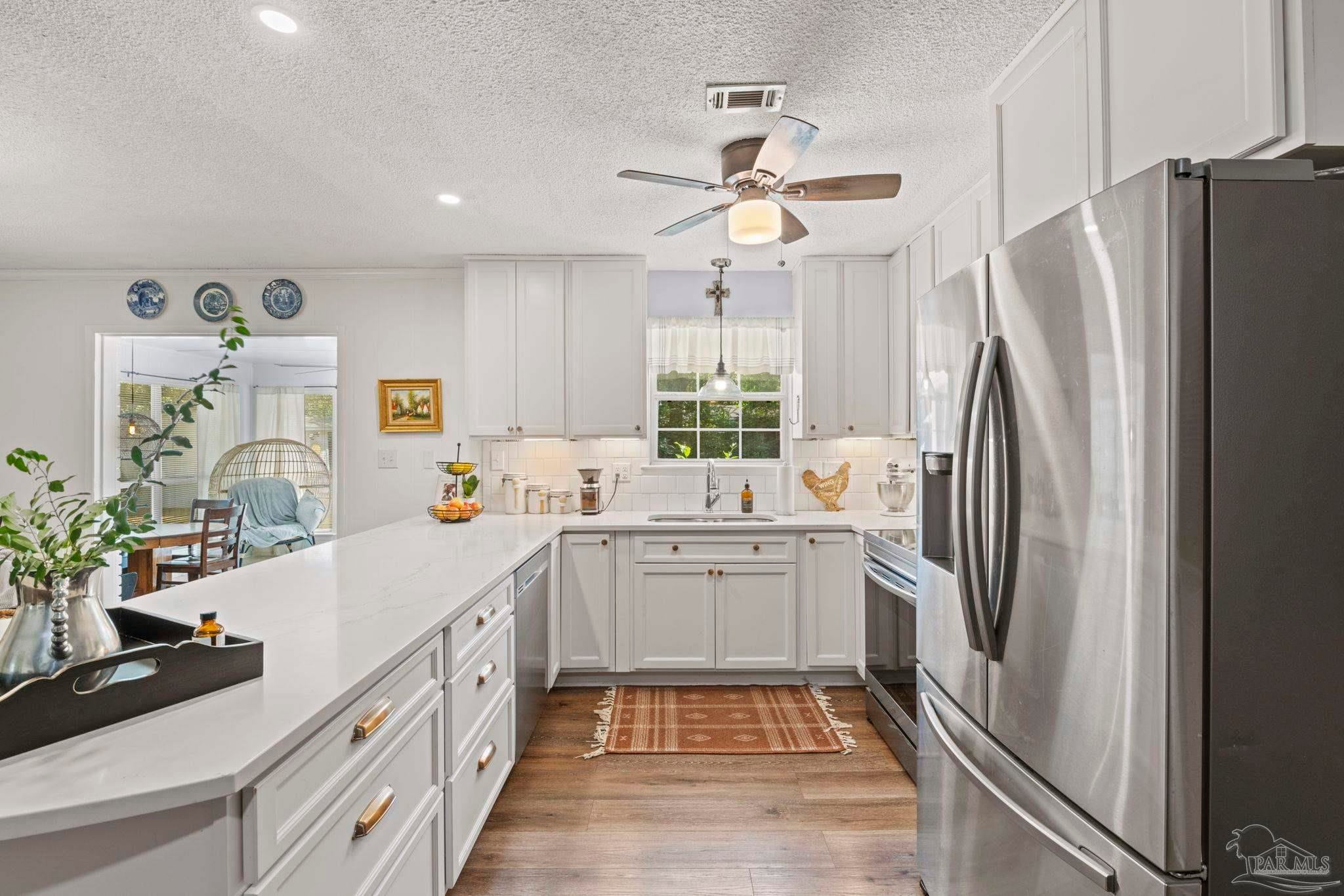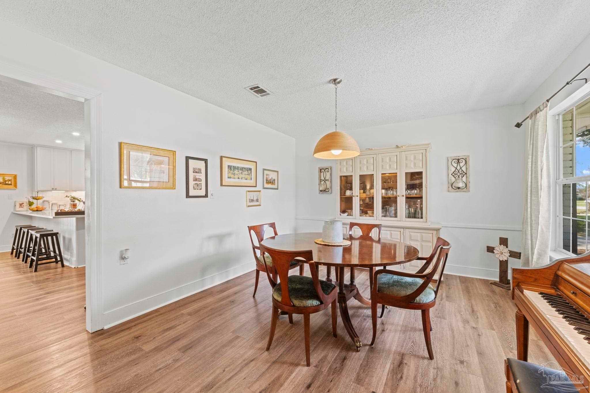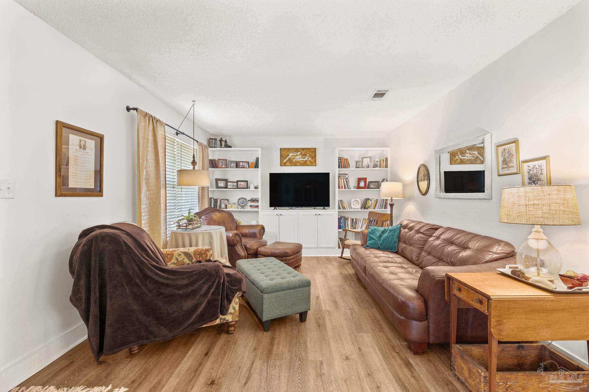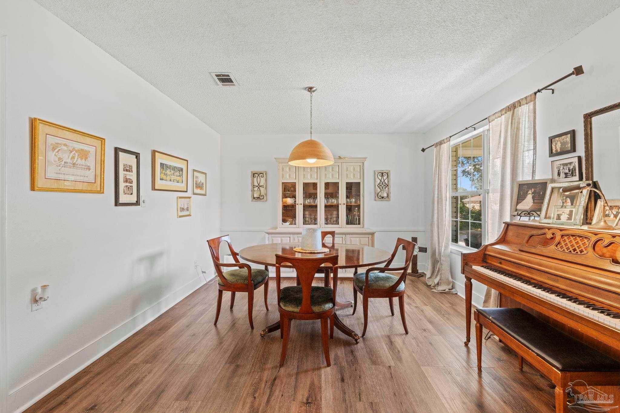 Welcome home! This brick, ranch-style home is a true classic with an open concept living area, 3 beds, 2 baths, and a sunroom. Located in NW Pensacola, only 5 minutes from I-10, shopping, dining, theaters, schools, and the airport are only minutes away! The interior of the home has two dining areas, and a living room with built-in book cases. The stunning kitchen features high-end finishes including stainless-steel appliances and quartz countertops, this kitchen will be a joy to entertain in. Throughout the home you will notice fresh paint, tastefully selected light fixtures, and new LVP floors continuing from main rooms to the bathrooms, making easy cleaning. The master suite has two closets and a remodeled bathroom with a lovely walk-in, tile shower. Outdoor living provides many amenities including a large, third of an acre with fenced in backyard, tool shed with electricity, oversized patio, rear-loading, single car garage and enough driveway space to park an RV. (All concrete poured in ‘22.) Many extensive updates have recently been made to ensure your enjoyment for years to come, including a roof (‘22), HVAC (brand new), and rewire. Only 30 minutes from Pensacola Beach and Perdido Key Beach, the white sands and sparkling waters of the Gulf Coast are near this quintessential FL home. Book your showing today!