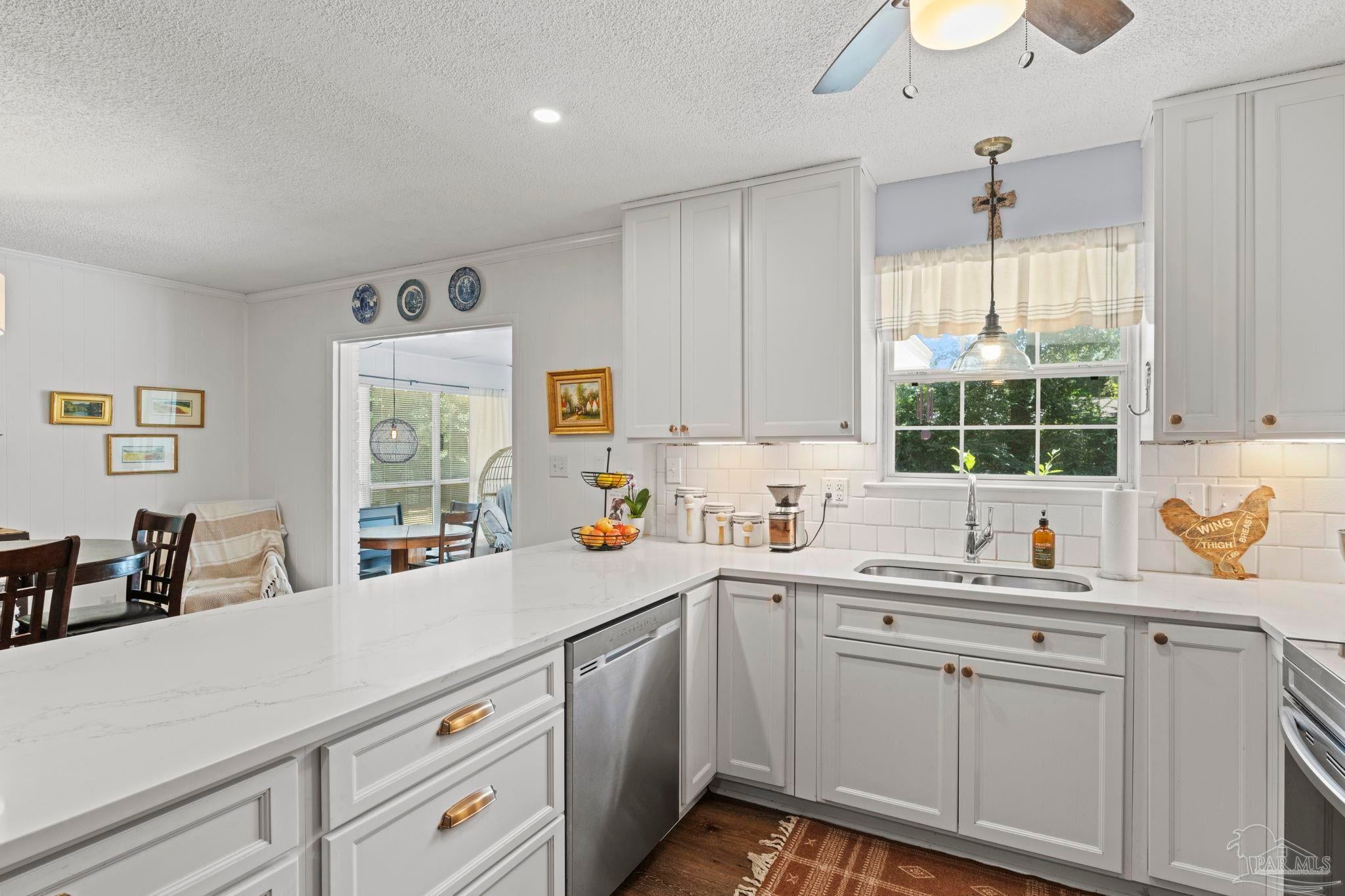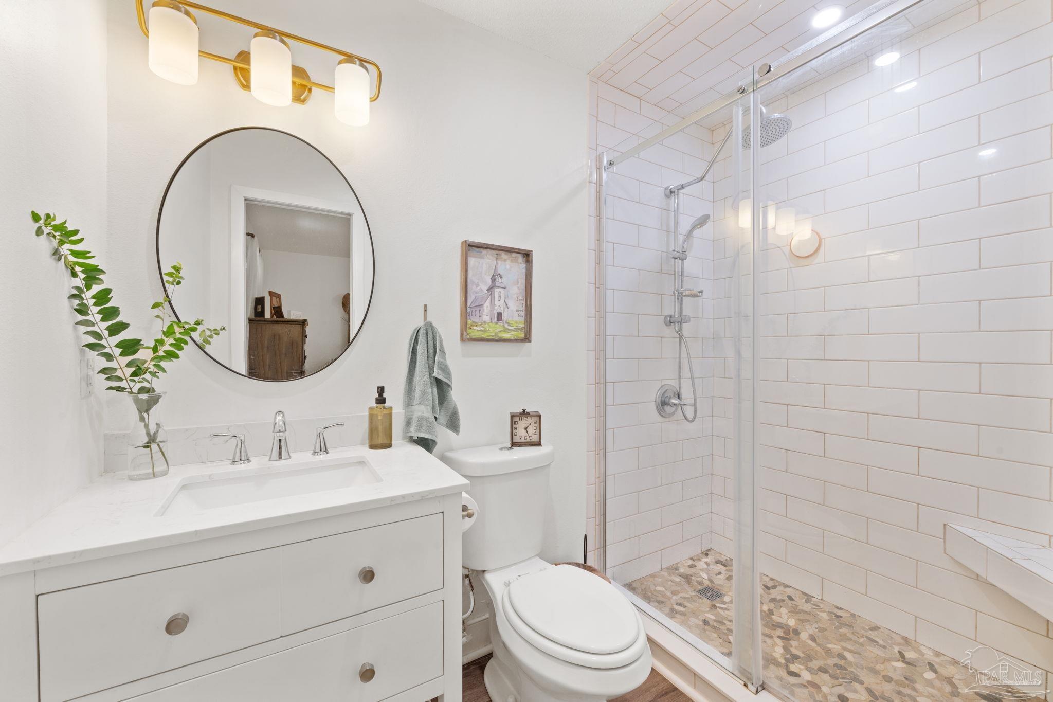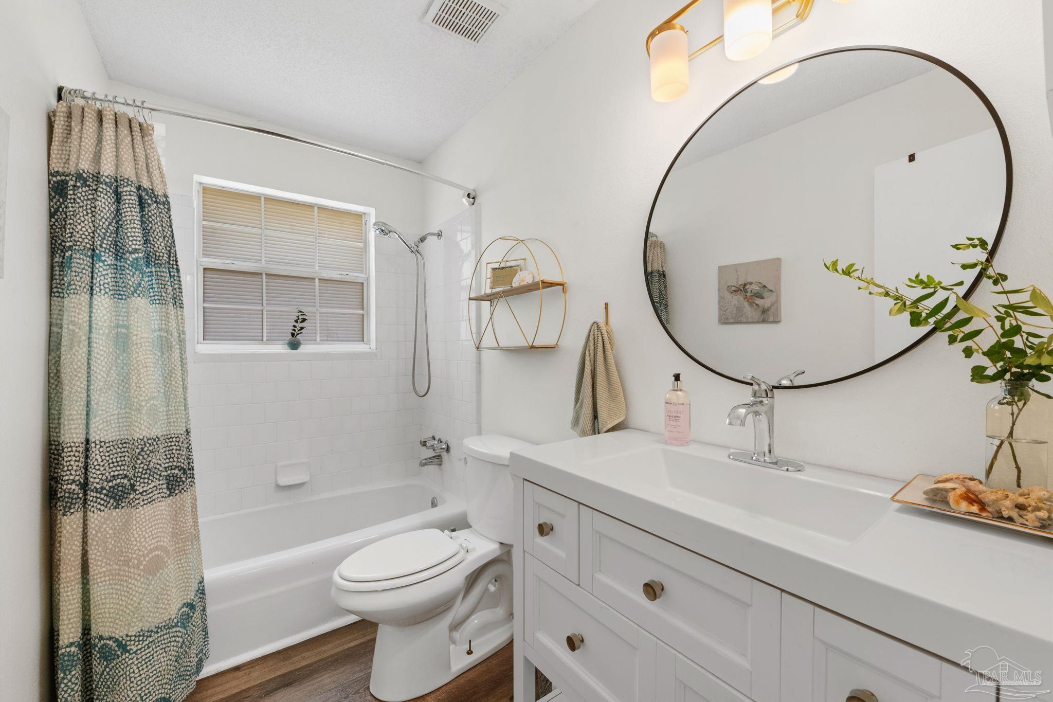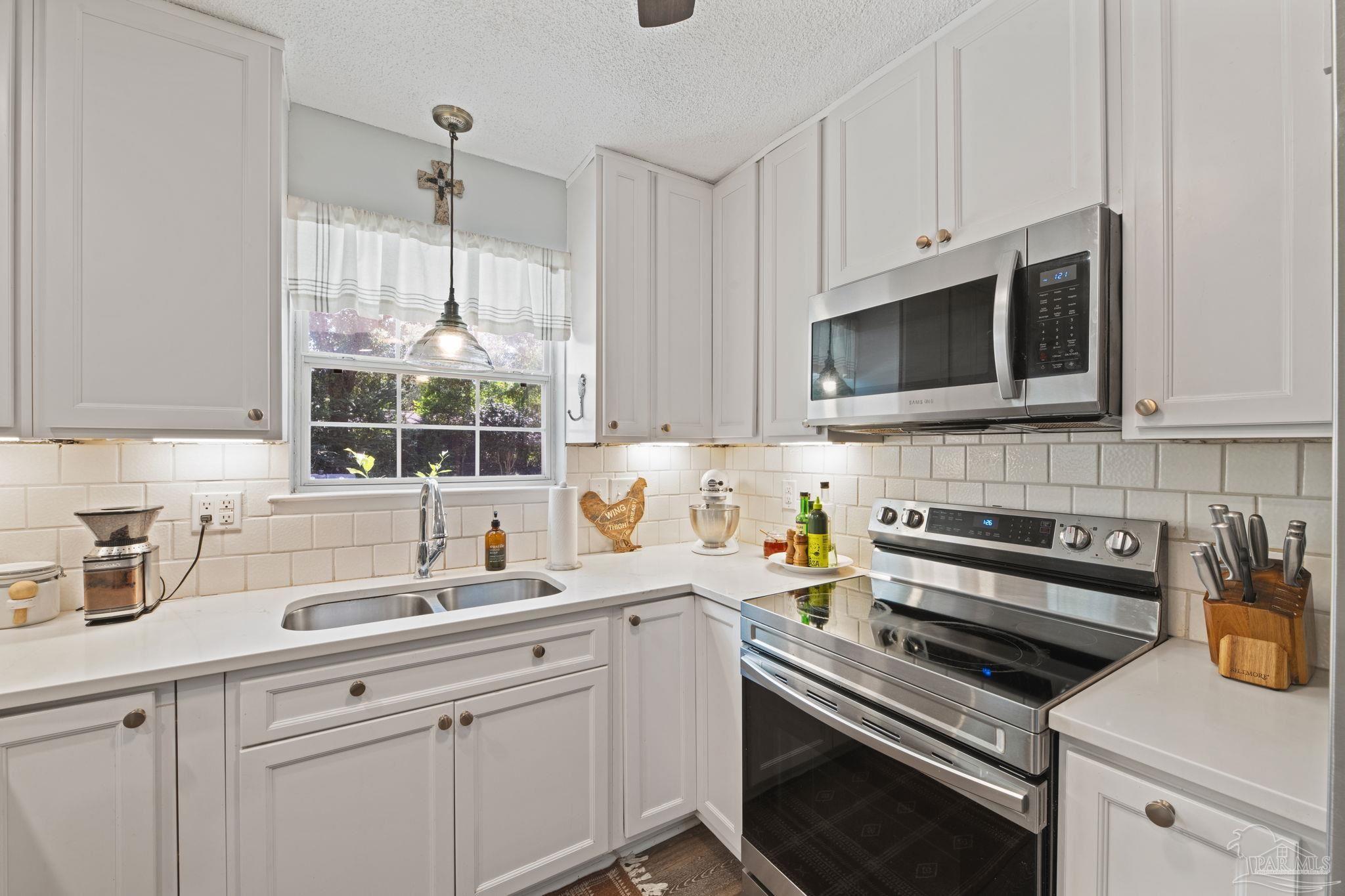 Welcome home! This brick, ranch-style home is a true classic with an open concept living area, 3 beds, 2 baths, and a sunroom. Located in NW Pensacola, only 5 minutes from I-10, shopping, dining, theaters, schools, and the airport are only minutes away! The interior of the home has two dining areas, and a living room with built-in book cases. The stunning kitchen features high-end finishes including stainless-steel appliances and quartz countertops, this kitchen will be a joy to entertain in. Throughout the home you will notice fresh paint, tastefully selected light fixtures, and new LVP floors continuing from main rooms to the bathrooms, making easy cleaning. The master suite has two closets and a remodeled bathroom with a lovely walk-in, tile shower. Outdoor living provides many amenities including a large, third of an acre with fenced in backyard, tool shed with electricity, oversized patio, rear-loading, single car garage and enough driveway space to park an RV. (All concrete poured in ‘22.) Many extensive updates have recently been made to ensure your enjoyment for years to come, including a roof (‘22), HVAC (brand new), and rewire. Only 30 minutes from Pensacola Beach and Perdido Key Beach, the white sands and sparkling waters of the Gulf Coast are near this quintessential FL home. Book your showing today!