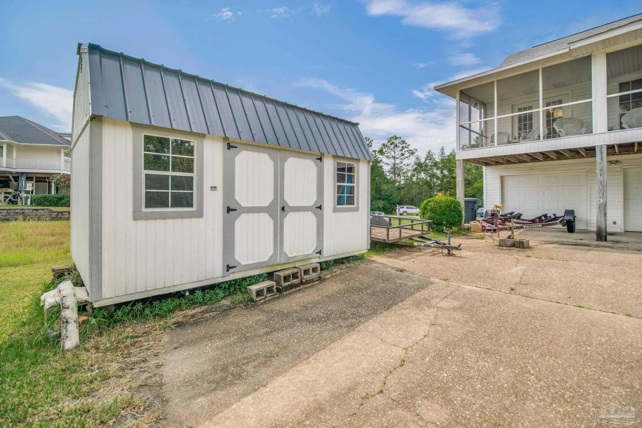 Step into this stunning waterfront home that offers the perfect blend of luxury, comfort, and outdoor recreation. Tucked away near the end of a peaceful cul-de-sac, this stately residence boasts impressive curb appeal from the front and breathtaking water views from the back, overlooking the beautiful Wright Basin off Blackwater River. As you enter the main level, you are welcomed by an open floor plan and a family room that features high ceilings, a cozy fireplace with an updated mantel and shelving, tons of natural light and panoramic views of Basin! The kitchen flows seamlessly from the living area and features an eat-in dining area, bar seating, a new wall oven and microwave and ample cabinet space. For those that enjoy hosting, this home features a formal dining room as well as an additional space, previously used as a bar area that is equipped with plumbing for any future endeavors utilizing the space. The oversized primary bedroom offers a fireplace with an updated mantel, extra closet space for storage, plenty of natural light, and two french doors that open out onto the screened back porch that stretches over the entire width of the home and overlooks the basin. The primary bathroom is massive with a new oversized walk-in shower, two vanities with updated cabinetry and countertops, a makeup vanity, and massive walk in closet. The two additional bedrooms are large in size with copious closet and storage space, and sit on opposite ends of the third level, allowing for extra privacy. The ground level is an oversized garage that has an additional area perfect for a game room or tool shop. TONS of storage here! Walk out to the 52ft of waterfront views and enjoy a pier with a full sized covered boat lift powered with dual motors, with an additional covered space for seating. Fish from the dock or relax with friends! This home truly checks all the boxes, call or schedule a showing today.