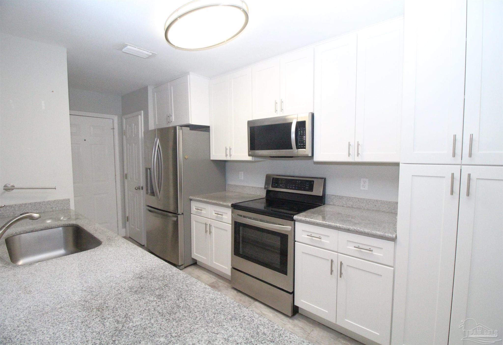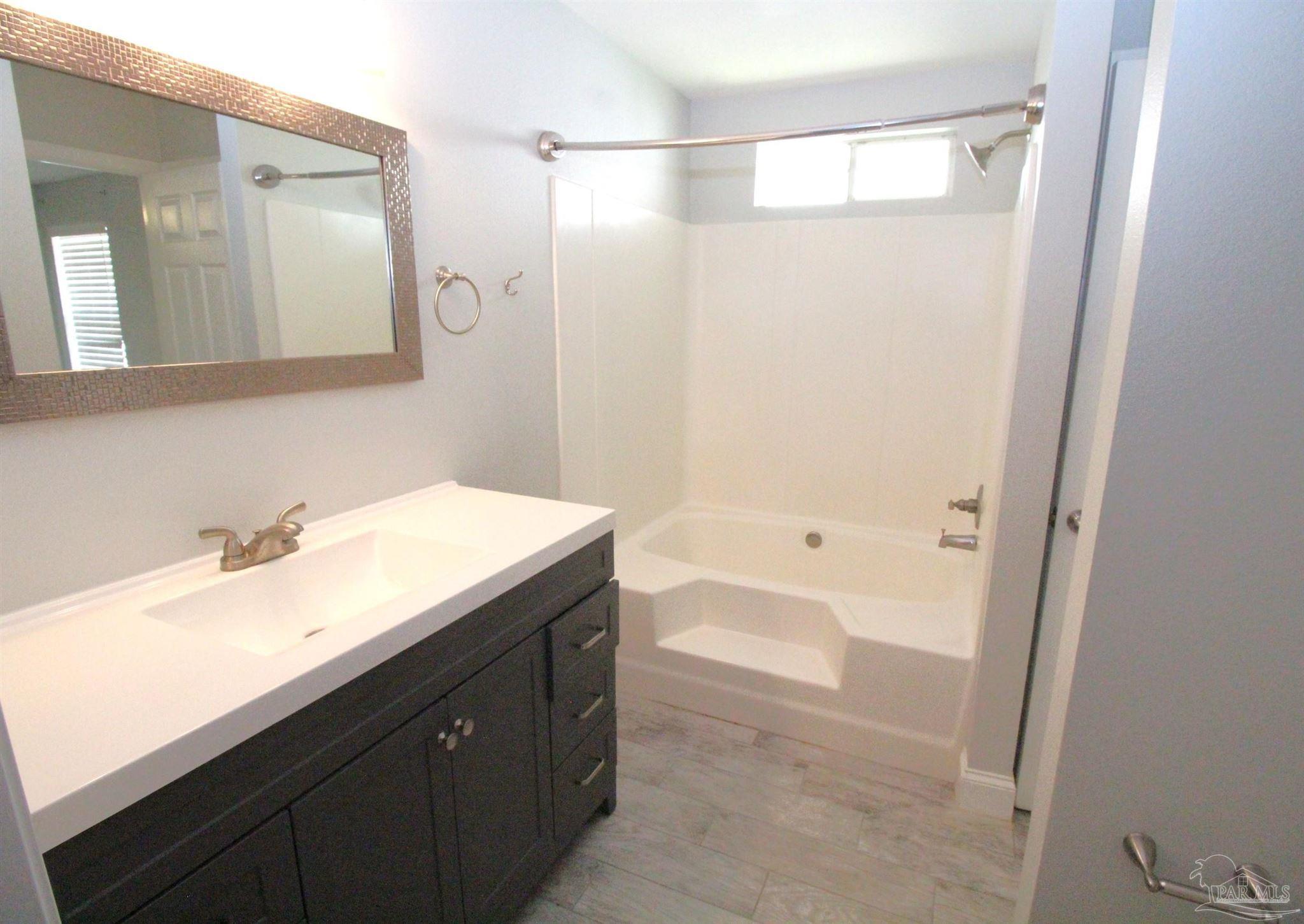 Coming Available 10/31 – Beautiful 3/2 Home in Mirabelle Subdivision – This desirable northeast Pensacola home is located off Davis Hwy near UWF and features wood-look tile flooring in the main living areas with carpet in the bedrooms, an open living/dining space with vaulted ceilings, and a galley-style kitchen with white cabinetry, granite countertops, stainless steel appliances, pantry, and breakfast bar that overlooks the living room. A bright breakfast nook offers natural light and views of the backyard. The primary bedroom has an ensuite bath with updated vanity, garden tub/shower combo, and large walk-in closet, while the front bedroom boasts vaulted ceilings, a ceiling fan, and generous closet space. Additional highlights include an inside laundry room with washer and dryer included, a privacy-fenced backyard, and an extended patio ideal for entertaining or relaxing. Pets may be considered with owner approval and a $250 non-refundable pet fee per pet. Residents are required to maintain renter liability insurance, which can be added for $11.95/month, or you may opt into the Resident Benefits Package (RBP) for $45/month that includes insurance, HVAC air filter delivery, and on-demand pest control; more details are available in the application.
