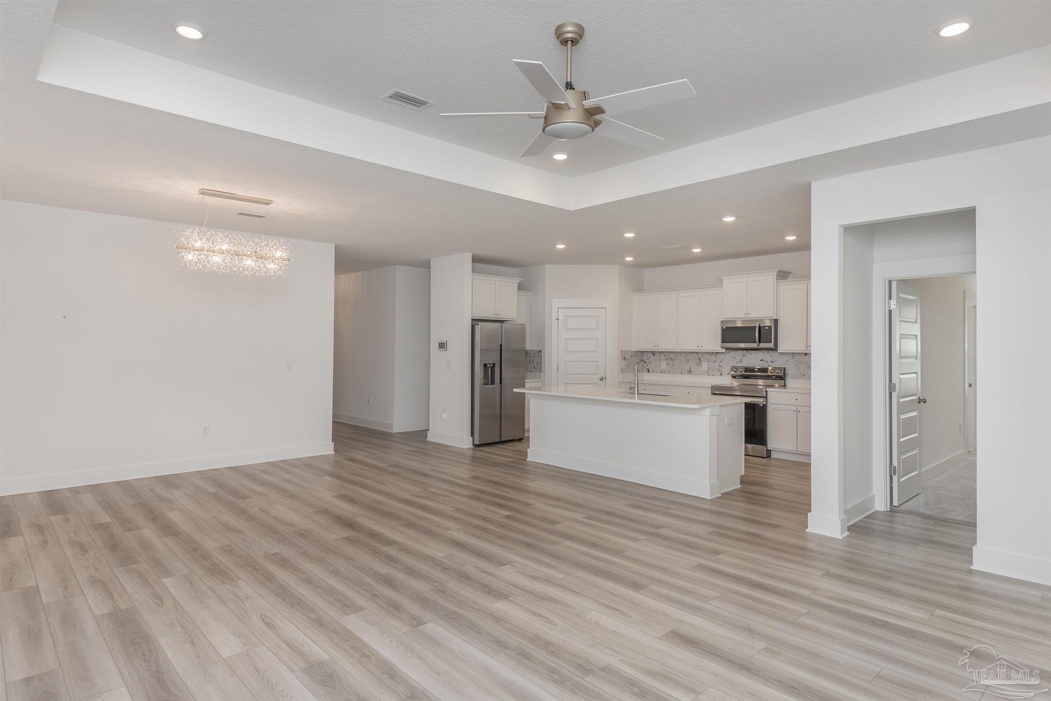 This stunning single-family home features 4 bedrooms and 3 bathrooms across a spacious open floor plan that flows over more than 1,900 square feet. The upgraded kitchen is a chef’s dream, showcasing quartz countertops, sleek white cabinets, a pantry, stainless steel appliances, and a breakfast bar that overlooks the expansive living area—perfect for entertaining or family gatherings. The primary suite offers a vaulted tray ceiling for added style, while the en-suite bath includes a garden tub, separate shower, double vanity, water closet, and a large walk-in closet. Relax on the covered patio and enjoy the privacy and convenience of a 2-car garage. Pets are welcome with owner approval, making this home ideal for animal lovers who value comfort and space.