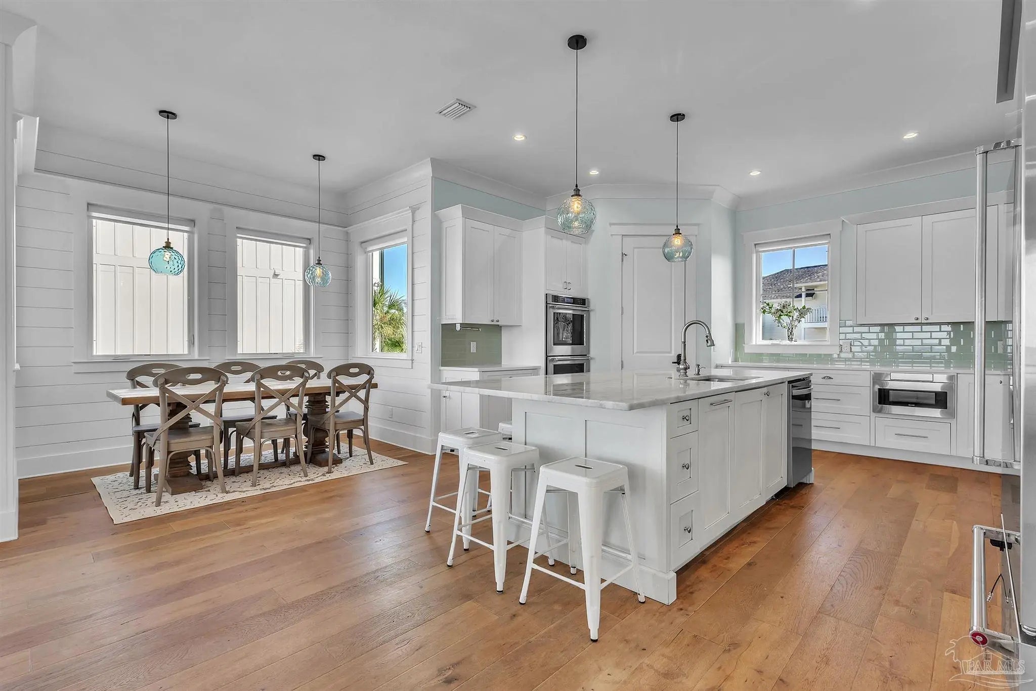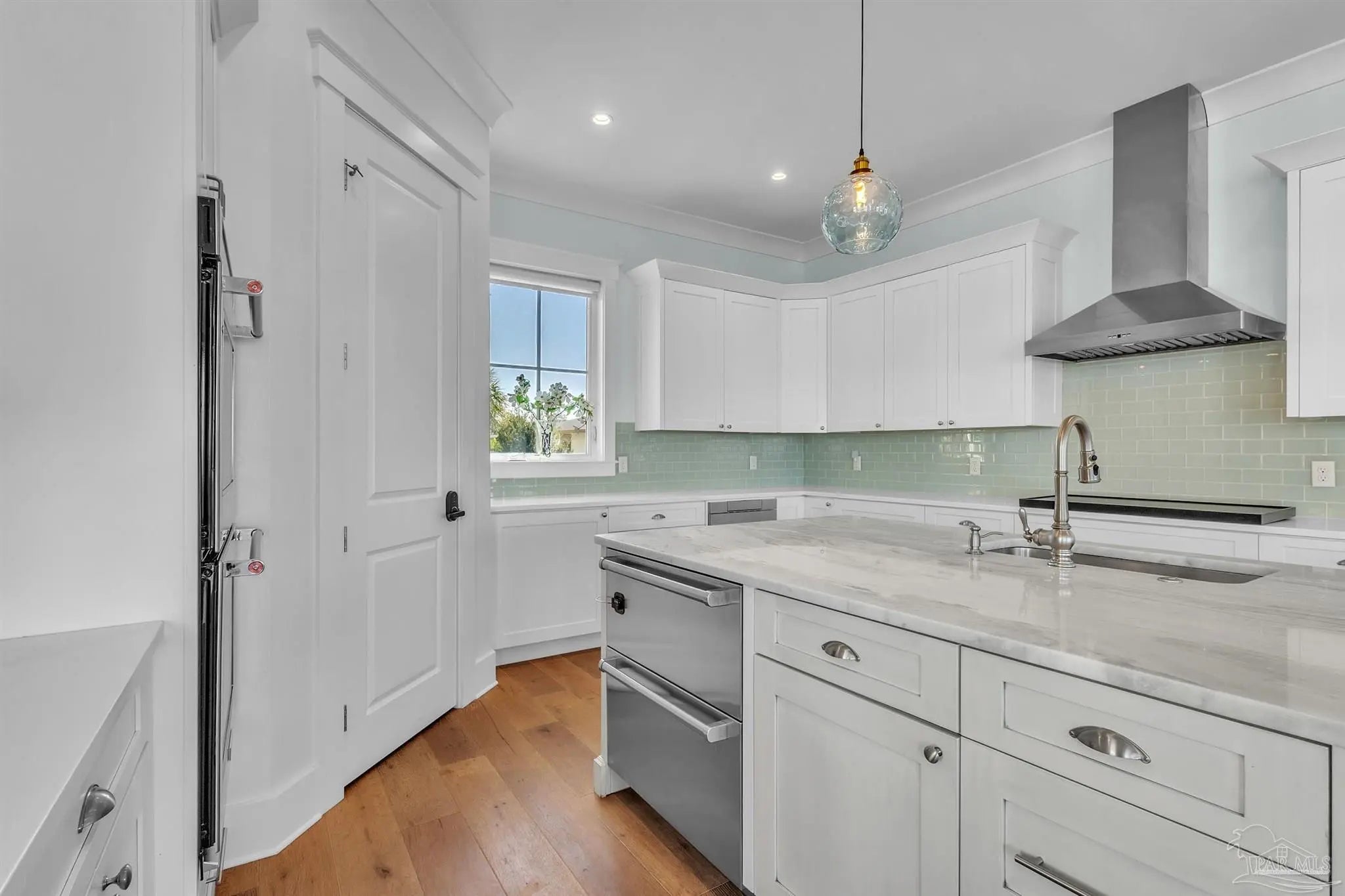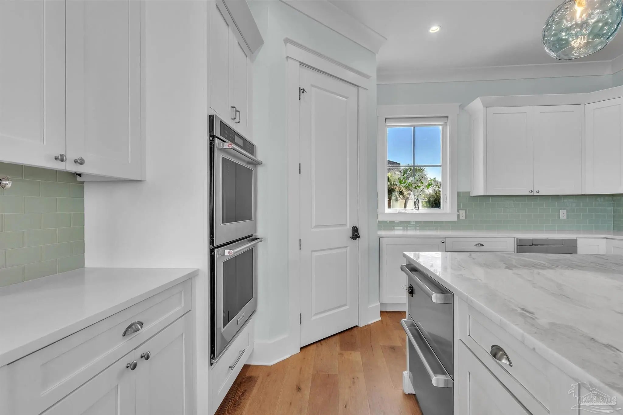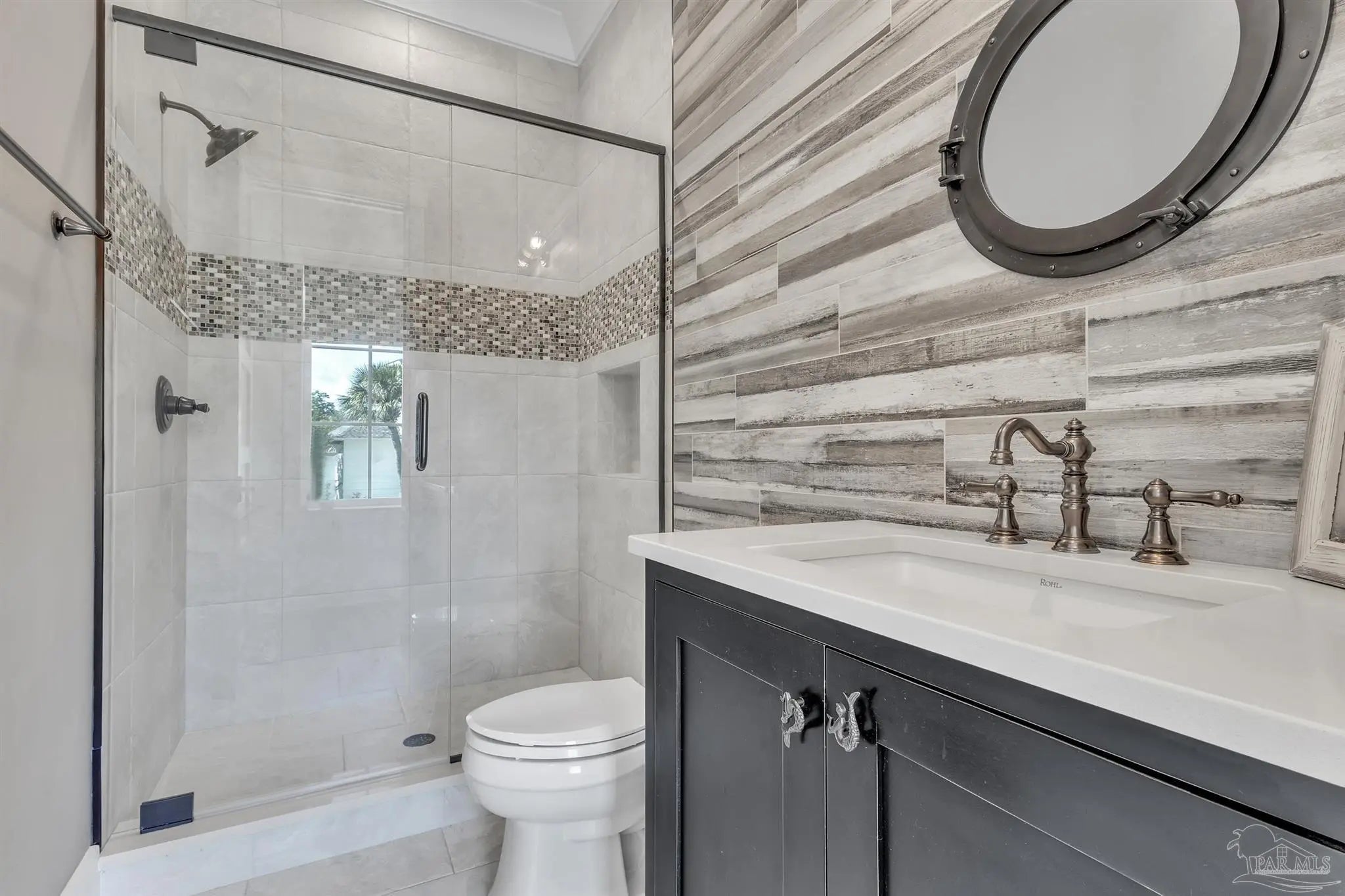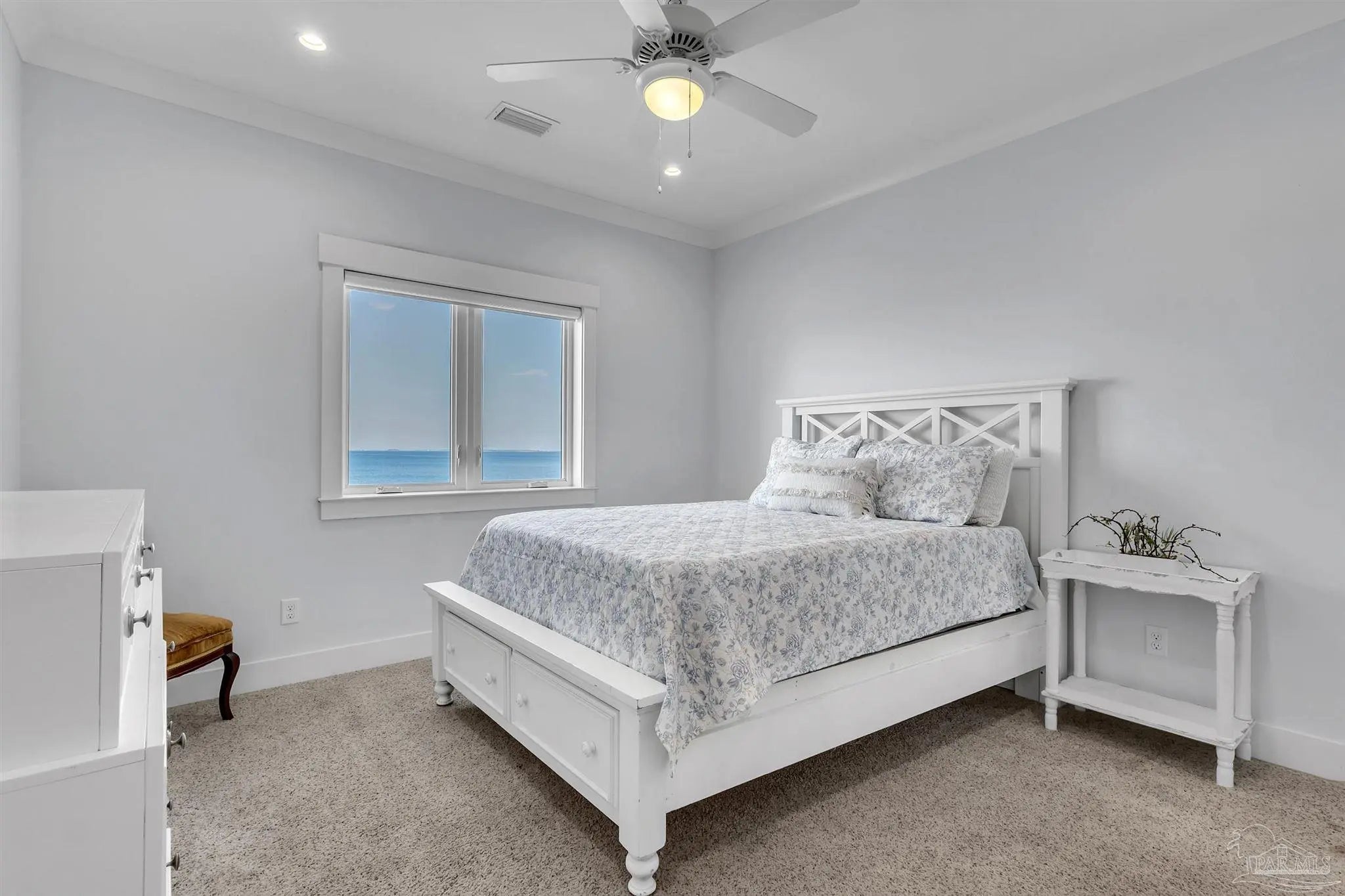 Welcome to a rare opportunity in the private, gated community of Deer Point Village. Perfectly positioned in Gulf Breeze Proper, this home places you just minutes from all the conveniences locals treasure from top-rated schools and shopping to the world-famous white sands of Pensacola Beach. Living here means enjoying the charm of a close-knit community while never sacrificing comfort or accessibility. From your covered deck, you’ll have front-row seats to the Intracoastal Waterway and even the beloved Blue Angels as they soar above. The backyard is nothing short of a retreat, complete with a heated saltwater pool, a private man-made beach, and community dock truly make this a dream setting for both fishing enthusiasts and those who simply love the water. The home itself was designed with both elegance and livability in mind. A grand foyer opens to a bright, open-concept living space where floor-to-ceiling windows and high ceilings capture the water views and fill the home with natural light. The gourmet kitchen is as functional as it is beautiful, offering double wall ovens, granite countertops, an oversized island, multiple refrigerator and freezer units, and a spacious pantry ideal for both everyday living and entertaining. On the main level, the Primary Suite serves as a true retreat with private deck access, a tiled walk-in shower, stand-alone soaking tub, extended double vanities, and a large walk-in closet thoughtfully designed by Alpha Closets. Upstairs, three additional bedrooms provide flexibility for family or guests, including one with an en-suite bath and two joined by a Jack-and-Jill. Practicality meets innovation throughout this residence, a full-service elevator, geothermal heating and cooling, and abundant storage integrated seamlessly into the design Every feature reflects a commitment to quality and comfort, creating a waterfront lifestyle that is both refined and relaxed.This is more than just a home, experience the best of Gulf Breeze living!
