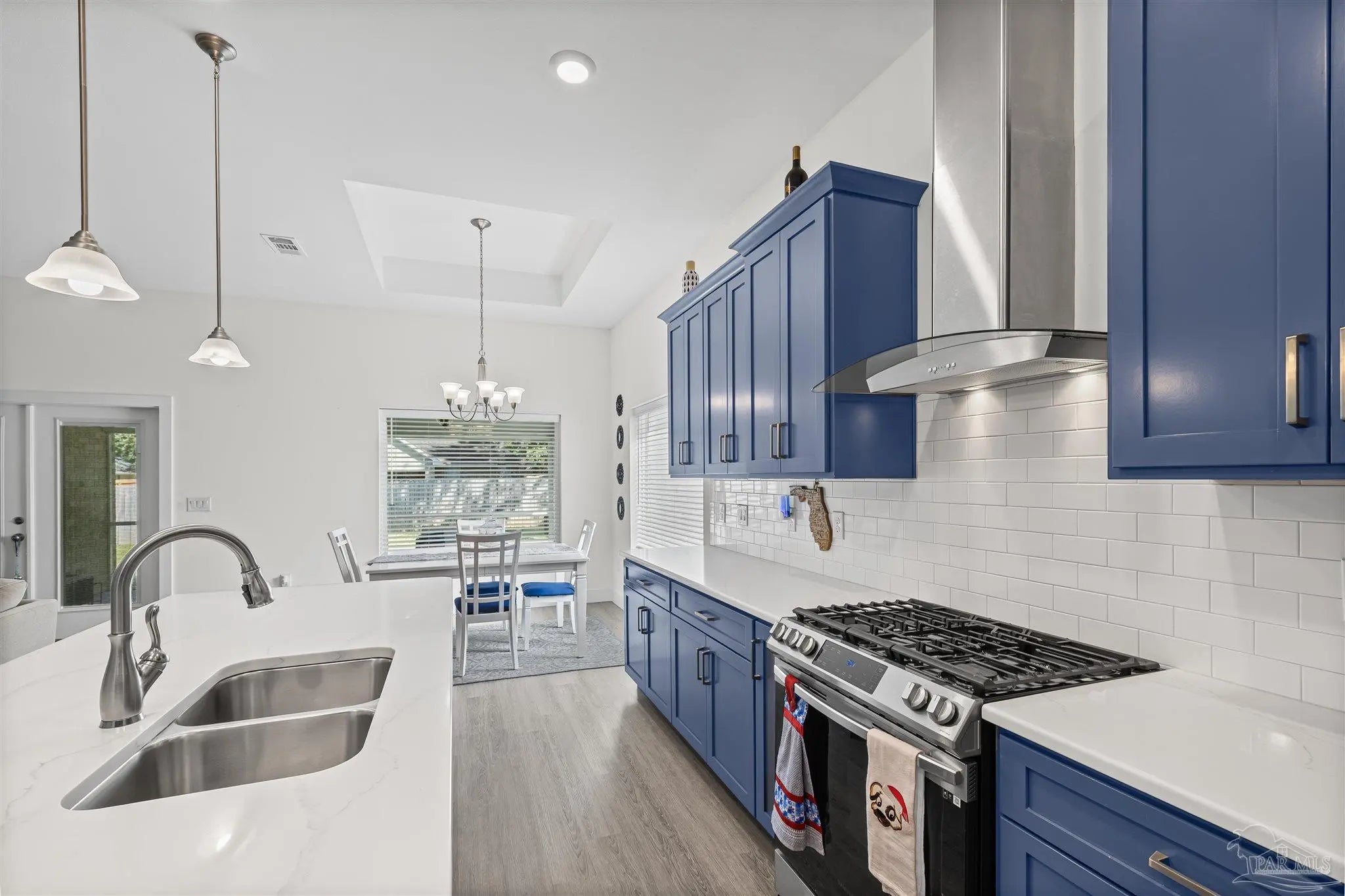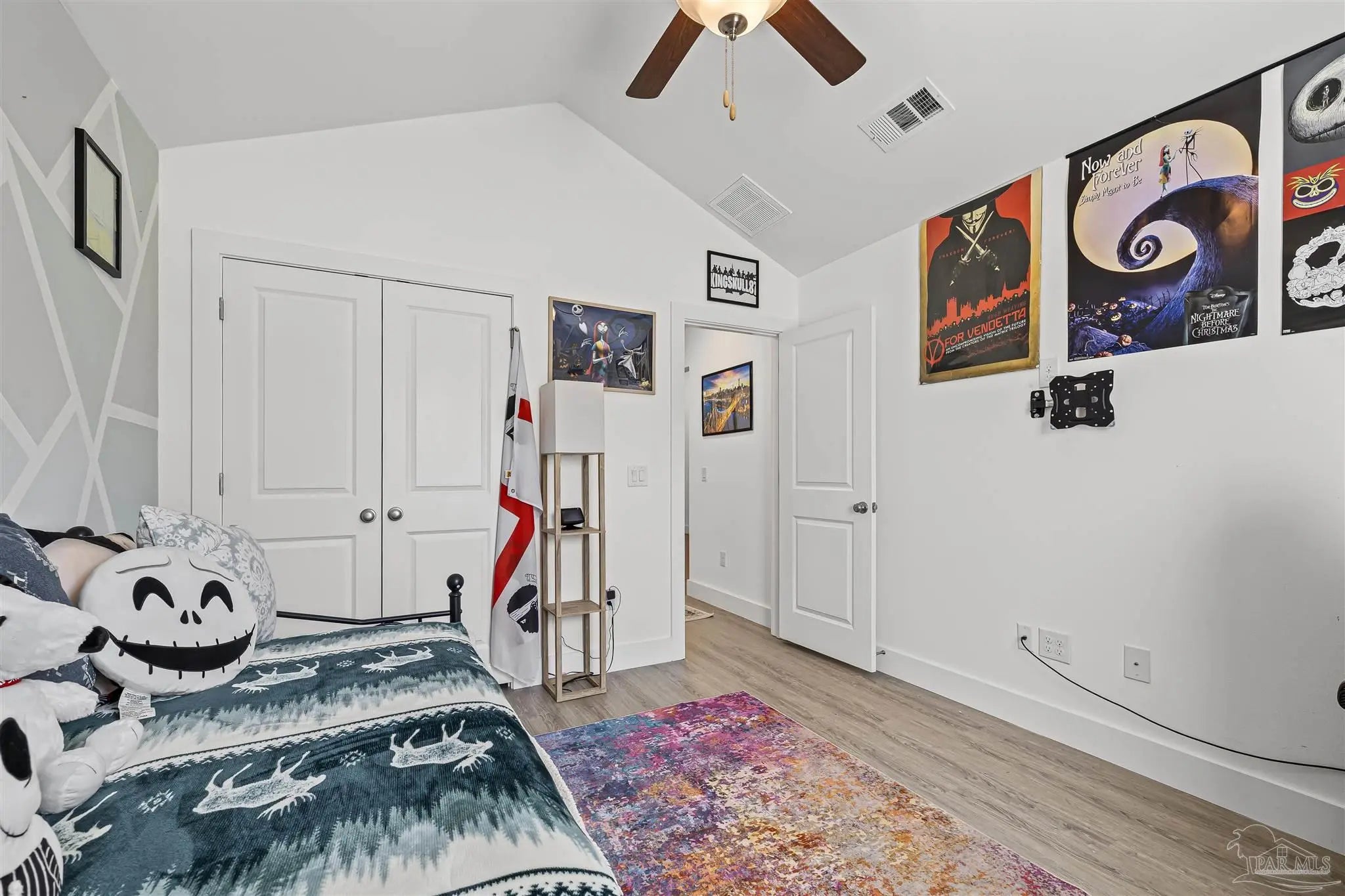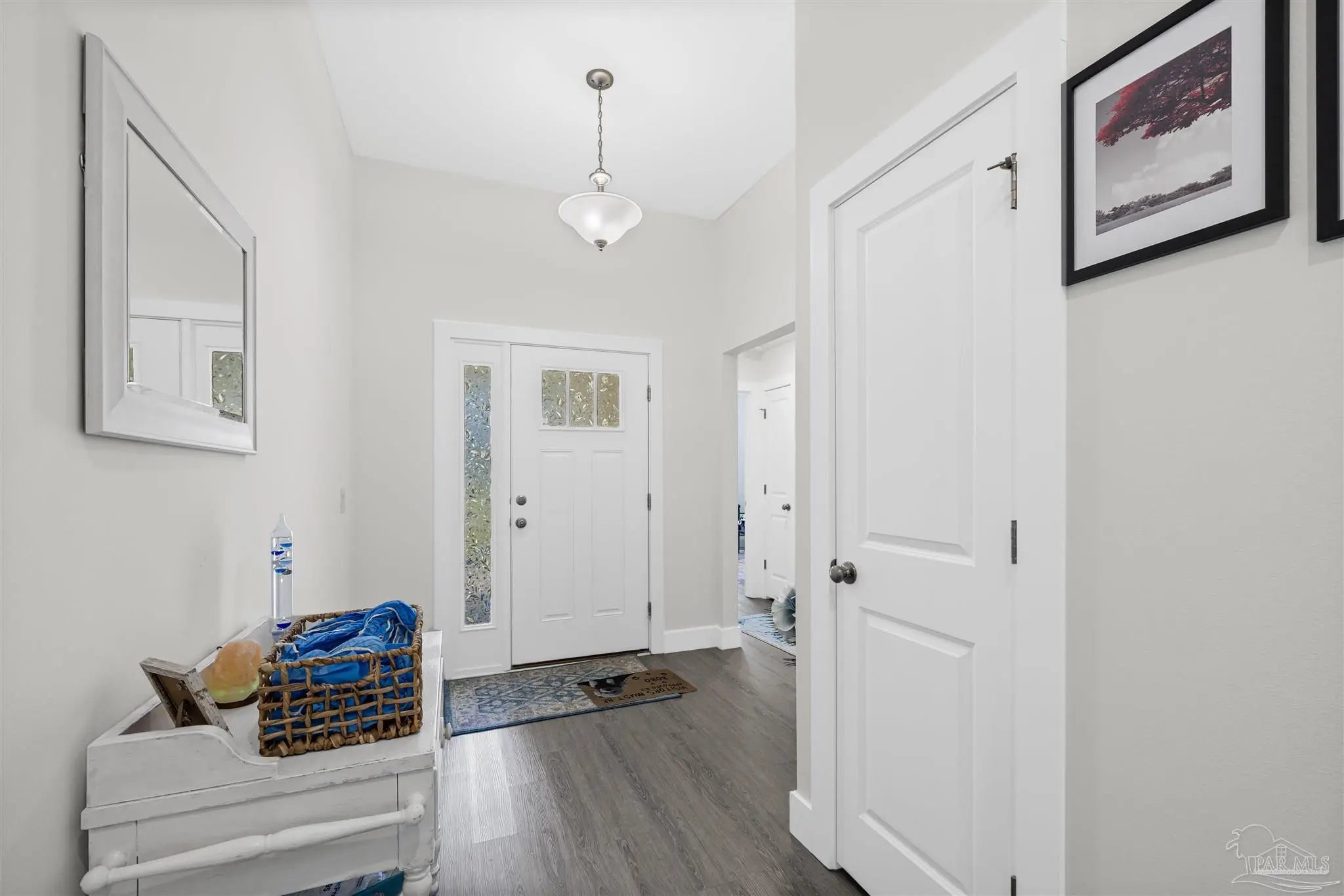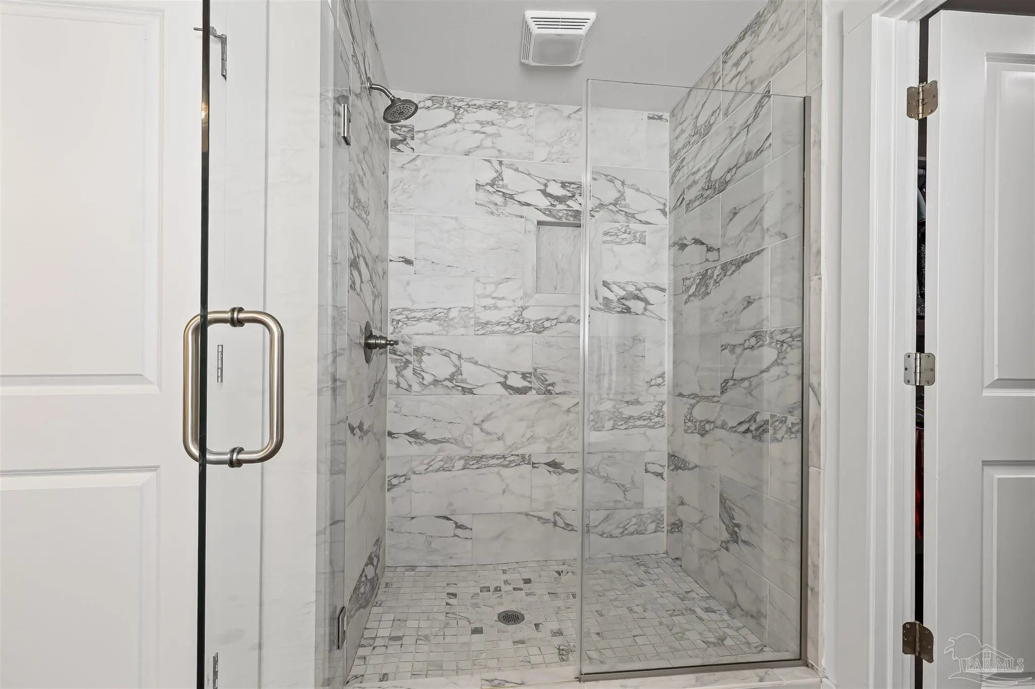 Stonechase Gated Community in Pace, FL is synonymous with class, charm and quality construction. This Semi-Custom, all brick home with premium upgrades is a unique opportunity that you wont find anywhere else in the neighborhood and was completed by the neighborhood's original builder! Note the ornate custom printed concrete as you approach the front door. Grand entry ceilings greet you as you enter the home. Drop your outerwear in the coat closet on your way into the open floorplan's living space. The Chef's Kitchen is loaded with custom features, like Calcutta Luna Quartz counters, Solid Maple Cabinets in elegant blue, premium Samsung gas range with dedicated ventilation, built in wine storage, subway tile backsplash and premium (non builder grade) appliances like the Bostch dishwasher and LG refrigerator. Plenty of prep and service space for any size gathering! Both bathrooms are fitted with Shadow Blue Marble counters and custom cabinetry. The large master suite is finished with a box trey ceilings and ensuite bathroom with even more custom upgrades. The tub is a stand alone, with separate Romana Tile Shower and independent water closet for privacy. The oversized walk in closet is double hung and has built in shelving and drawers as well. Not a stitch of carpet with LVP lining the entire home with scratch and water resistant LVP flooring throughout. Bali premium blinds on the windows. Recessed LED lighting, custom fixtures and Horchow ceiling fans, The front bedroom features a vault ceiling, opening up the space. The yard is tastefully landscaped and well manicured, with reclaimed water irrigation, fully fenced backyard and screened in back porch for outdoor entertaining without the bugs! Smart doorbell and Garage Door Opener with Fiber internet lines in multiple rooms. Samsung Washer and Dryer can convey. Eligible for USDA 100% No Down Payment Financing - Call today for a tour!