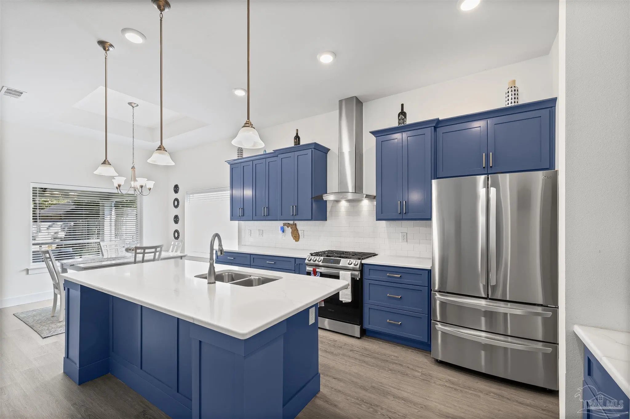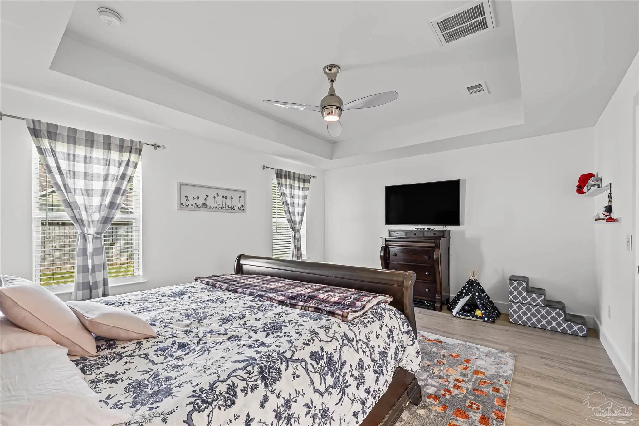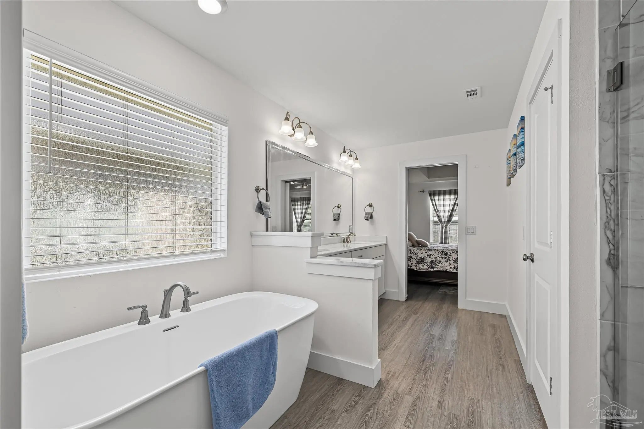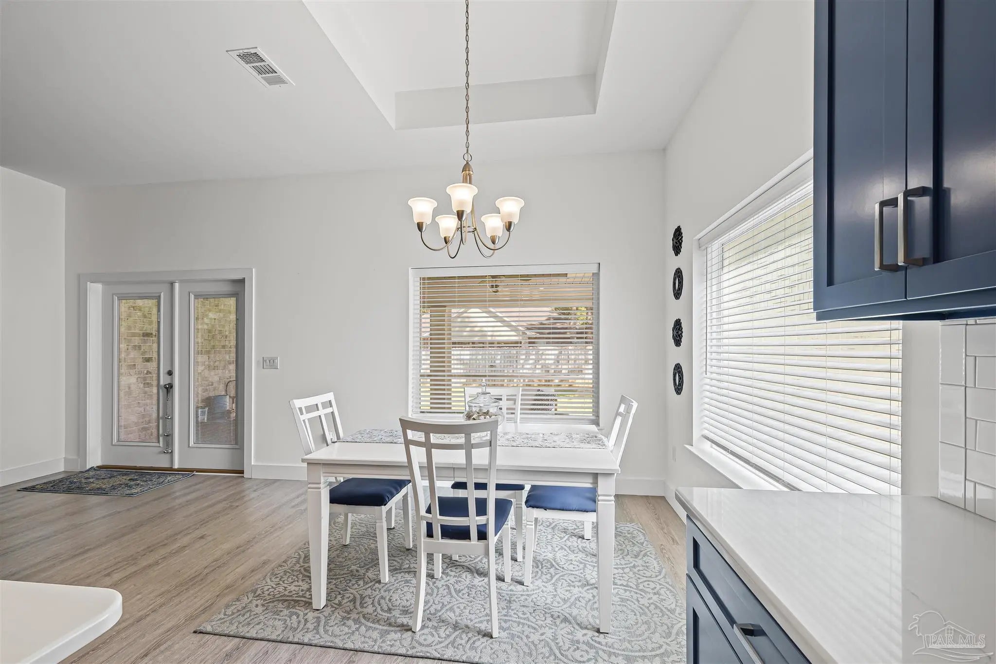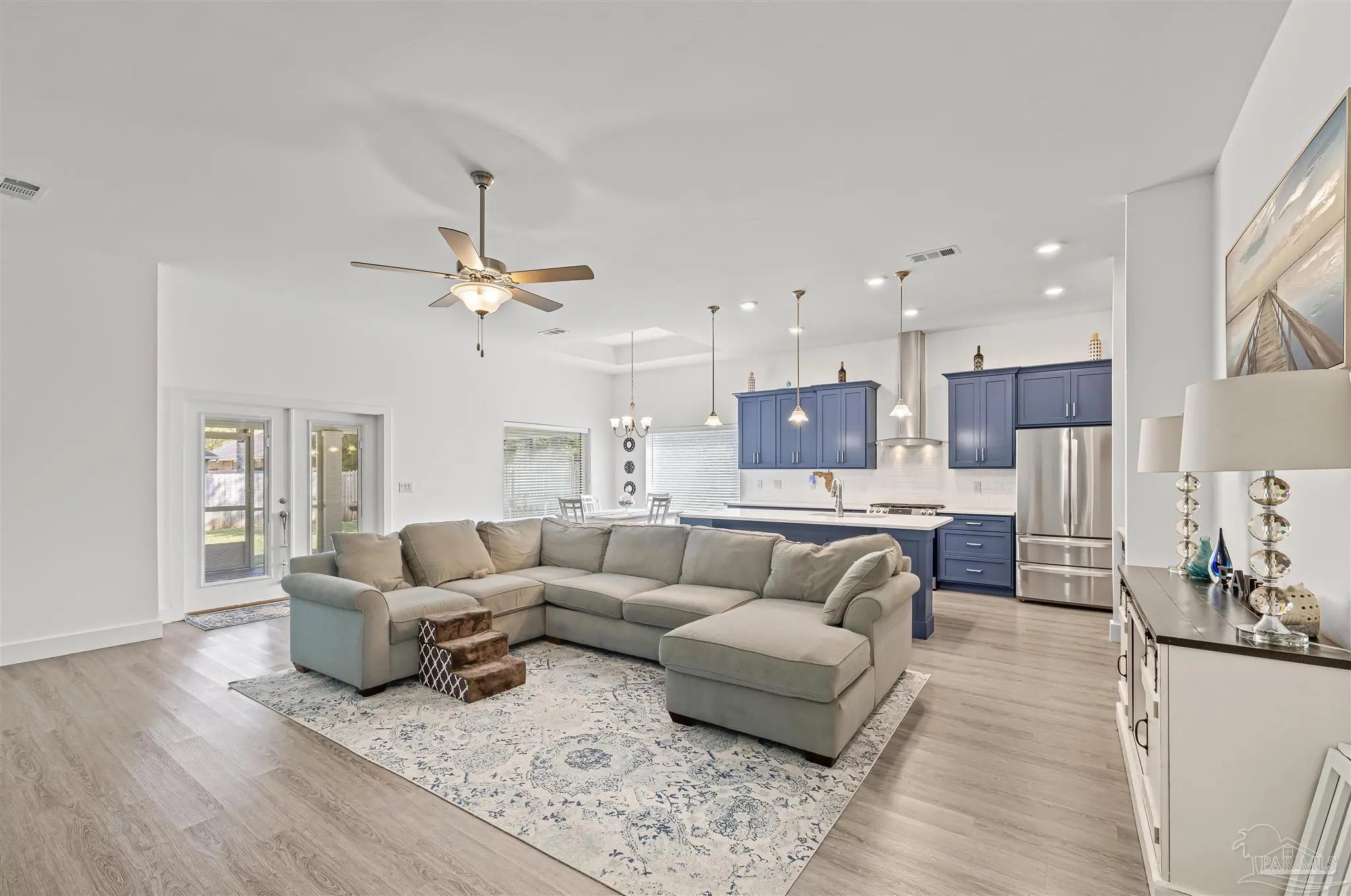 Stonechase Gated Community in Pace, FL is synonymous with class, charm and quality construction. This Semi-Custom, all brick home with premium upgrades is a unique opportunity that you wont find anywhere else in the neighborhood and was completed by the neighborhood's original builder! Note the ornate custom printed concrete as you approach the front door. Grand entry ceilings greet you as you enter the home. Drop your outerwear in the coat closet on your way into the open floorplan's living space. The Chef's Kitchen is loaded with custom features, like Calcutta Luna Quartz counters, Solid Maple Cabinets in elegant blue, premium Samsung gas range with dedicated ventilation, built in wine storage, subway tile backsplash and premium (non builder grade) appliances like the Bostch dishwasher and LG refrigerator. Plenty of prep and service space for any size gathering! Both bathrooms are fitted with Shadow Blue Marble counters and custom cabinetry. The large master suite is finished with a box trey ceilings and ensuite bathroom with even more custom upgrades. The tub is a stand alone, with separate Romana Tile Shower and independent water closet for privacy. The oversized walk in closet is double hung and has built in shelving and drawers as well. Not a stitch of carpet with LVP lining the entire home with scratch and water resistant LVP flooring throughout. Bali premium blinds on the windows. Recessed LED lighting, custom fixtures and Horchow ceiling fans, The front bedroom features a vault ceiling, opening up the space. The yard is tastefully landscaped and well manicured, with reclaimed water irrigation, fully fenced backyard and screened in back porch for outdoor entertaining without the bugs! Smart doorbell and Garage Door Opener with Fiber internet lines in multiple rooms. Samsung Washer and Dryer can convey. Eligible for USDA 100% No Down Payment Financing - Call today for a tour!