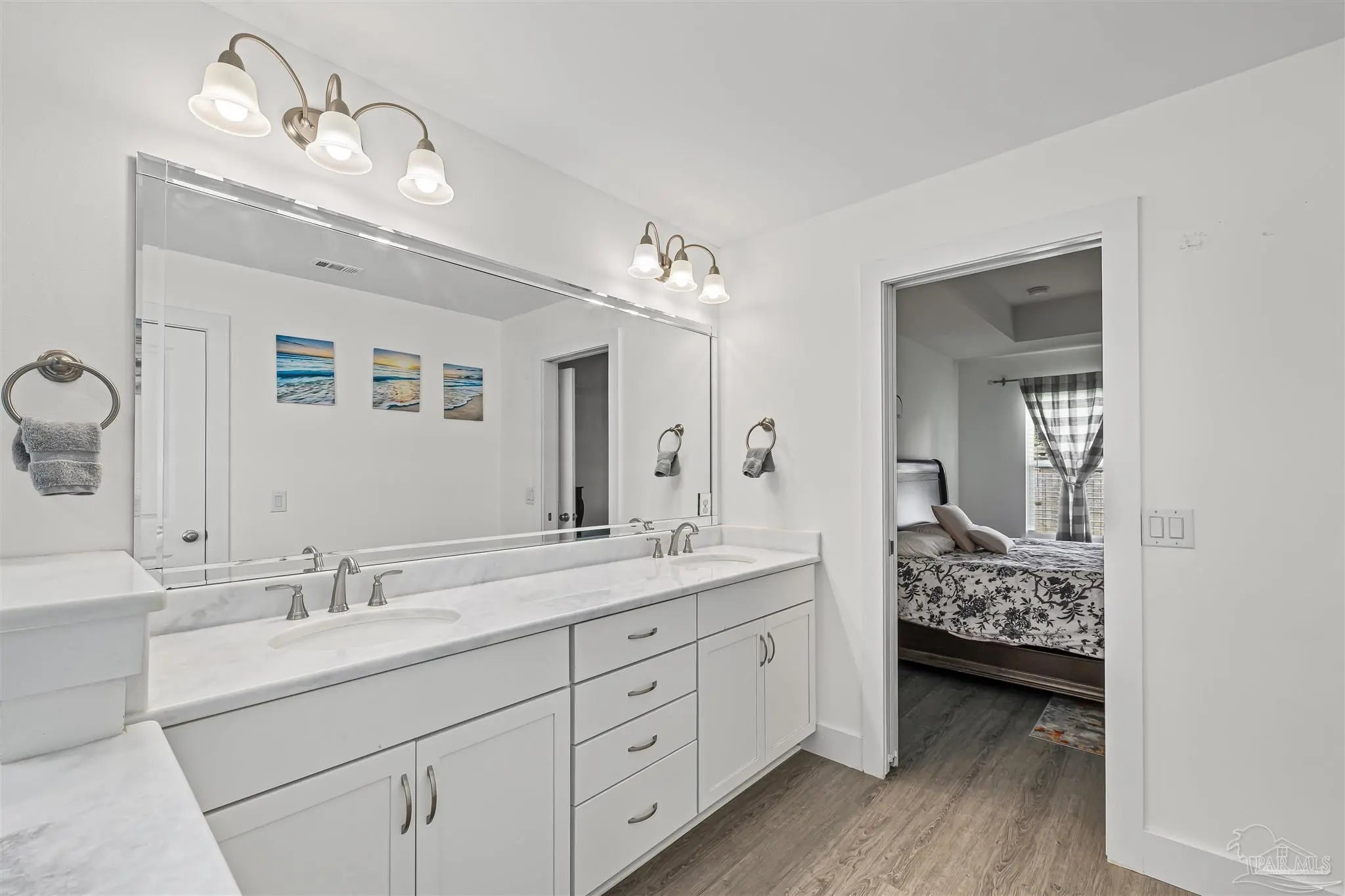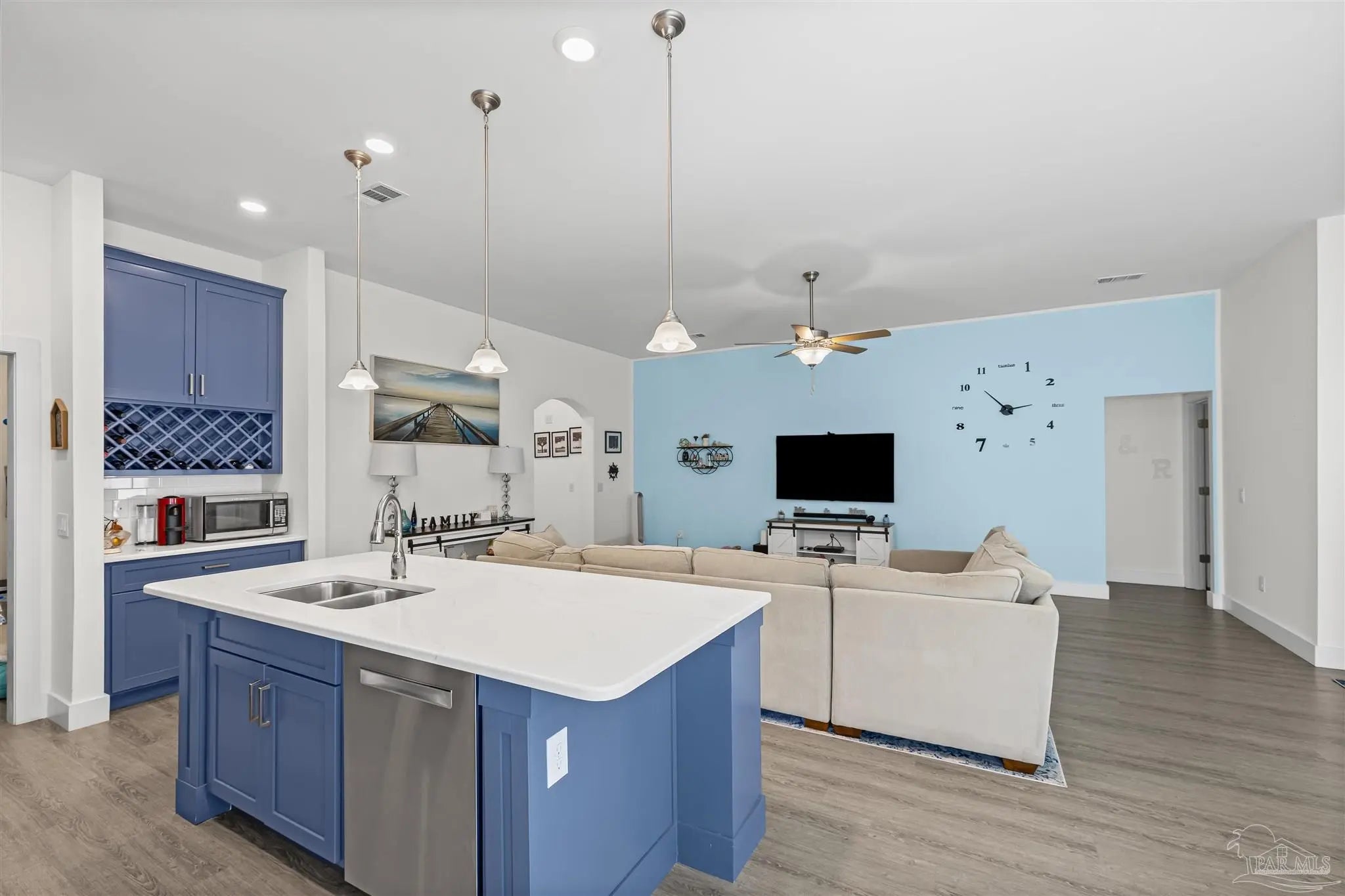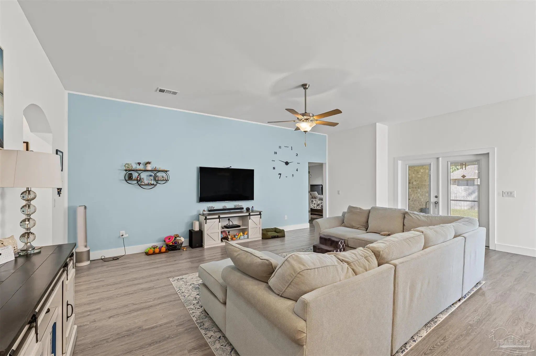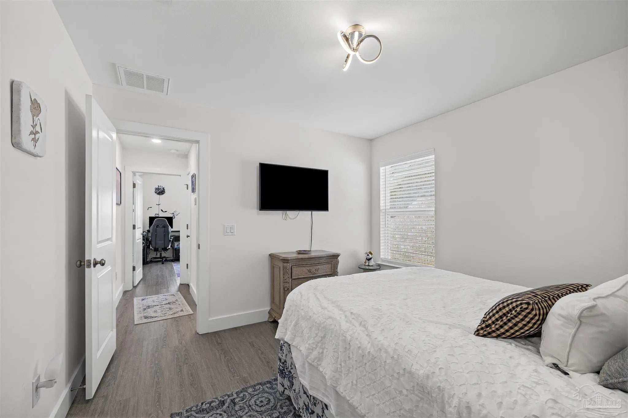 Stonechase Gated Community in Pace, FL is synonymous with class, charm and quality construction. This Semi-Custom, all brick home with premium upgrades is a unique opportunity that you wont find anywhere else in the neighborhood and was completed by the neighborhood's original builder! Note the ornate custom printed concrete as you approach the front door. Grand entry ceilings greet you as you enter the home. Drop your outerwear in the coat closet on your way into the open floorplan's living space. The Chef's Kitchen is loaded with custom features, like Calcutta Luna Quartz counters, Solid Maple Cabinets in elegant blue, premium Samsung gas range with dedicated ventilation, built in wine storage, subway tile backsplash and premium (non builder grade) appliances like the Bostch dishwasher and LG refrigerator. Plenty of prep and service space for any size gathering! Both bathrooms are fitted with Shadow Blue Marble counters and custom cabinetry. The large master suite is finished with a box trey ceilings and ensuite bathroom with even more custom upgrades. The tub is a stand alone, with separate Romana Tile Shower and independent water closet for privacy. The oversized walk in closet is double hung and has built in shelving and drawers as well. Not a stitch of carpet with LVP lining the entire home with scratch and water resistant LVP flooring throughout. Bali premium blinds on the windows. Recessed LED lighting, custom fixtures and Horchow ceiling fans, The front bedroom features a vault ceiling, opening up the space. The yard is tastefully landscaped and well manicured, with reclaimed water irrigation, fully fenced backyard and screened in back porch for outdoor entertaining without the bugs! Smart doorbell and Garage Door Opener with Fiber internet lines in multiple rooms. Samsung Washer and Dryer can convey. Eligible for USDA 100% No Down Payment Financing - Call today for a tour!