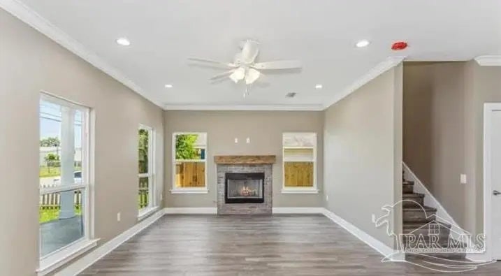 OPEN HOUSE Saturday 10-12 PM. Location, Location!!! Do not miss out on this amazing new home that has never been lived in minutes from Downtown Pensacola. You can either walk for take a 5 minute ride to all of the shops, restaurants, entertainment venues in Pensacola Downtown. Very spacious and open feel with your own fireplace and enlarged windows for great lighting. Quartz counters when you enter the kitchen area with separate pantry and laundry off the kitchen, and also a half bath downstairs for your guests. Upstairs you will find your primary bedroom, that has its own French doors that open onto an amazing balcony for those great morning coffees. The primary bath has a separate tub and tile shower with double vanities. Out back you will have your own backyard that has new privacy fencing. Everything is brand new and has never been lived in. Come make this your dream home.