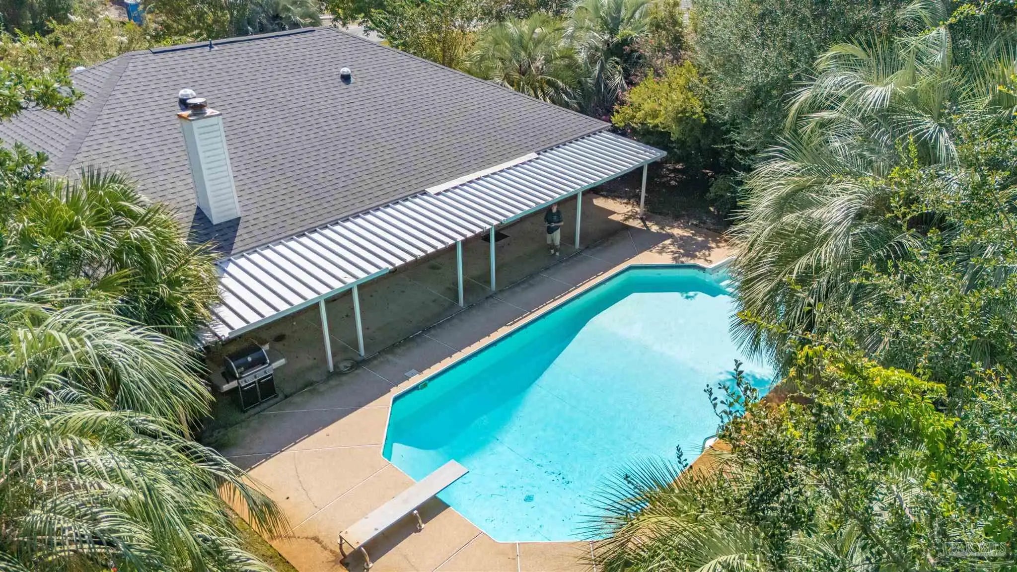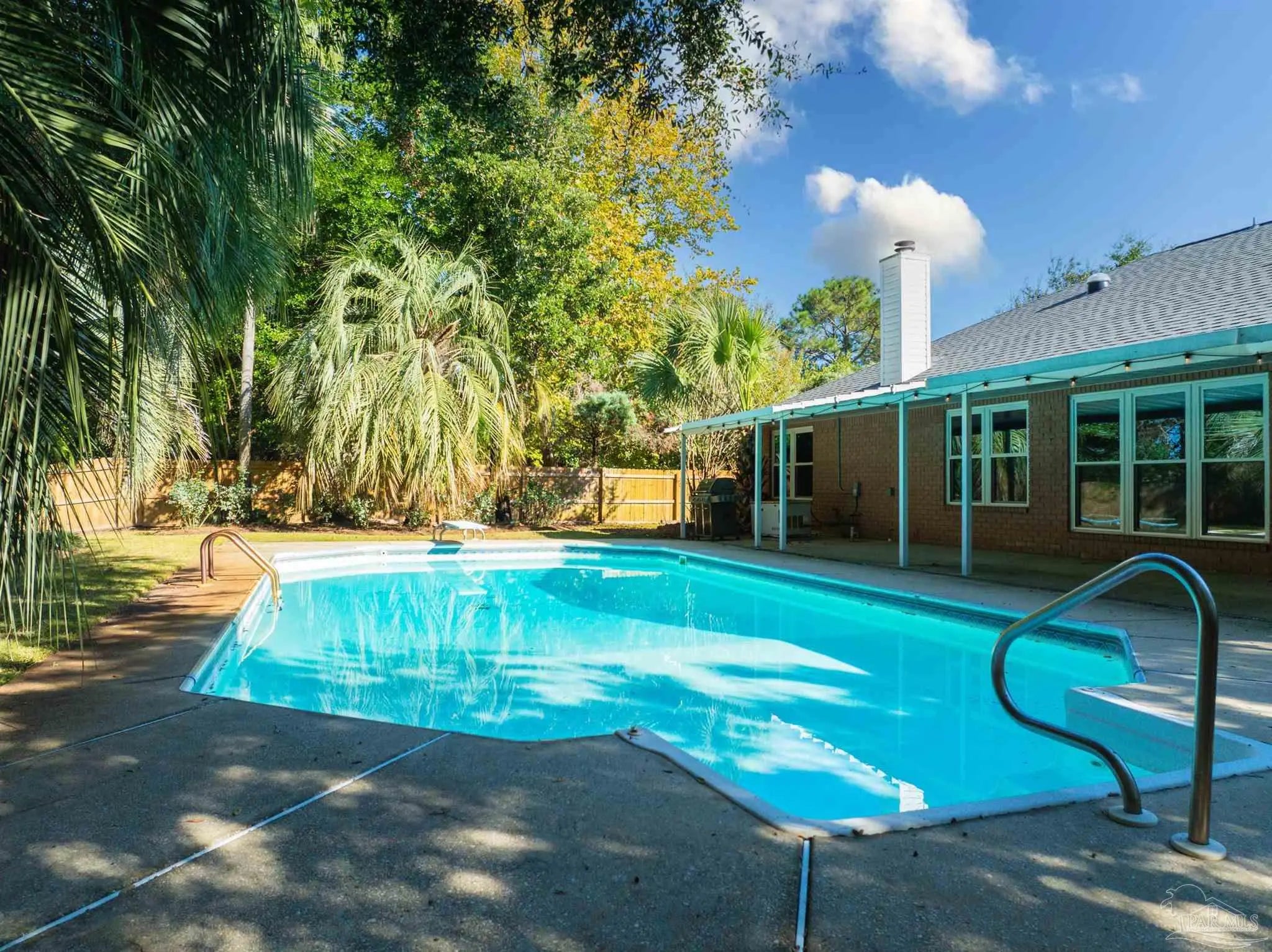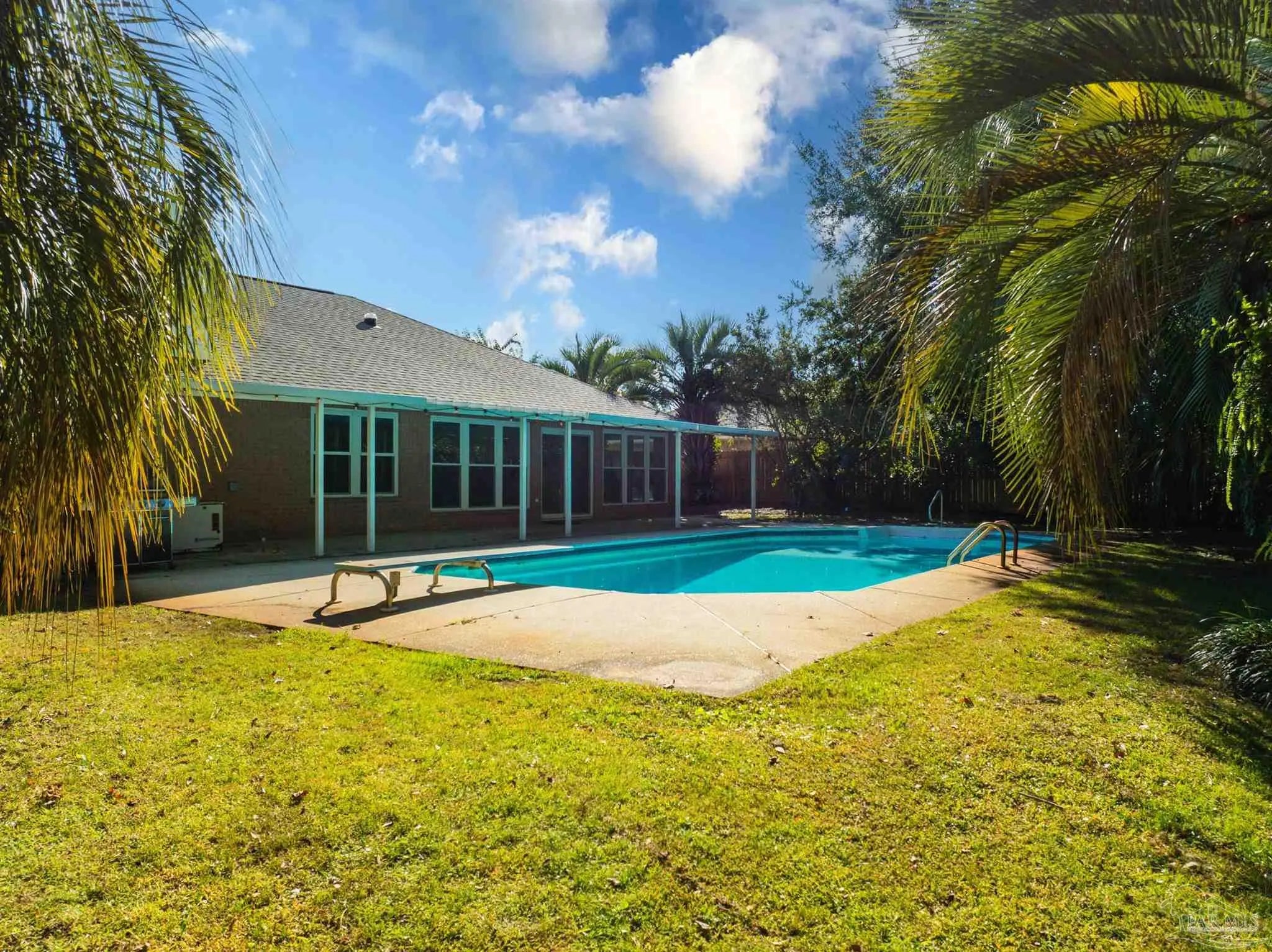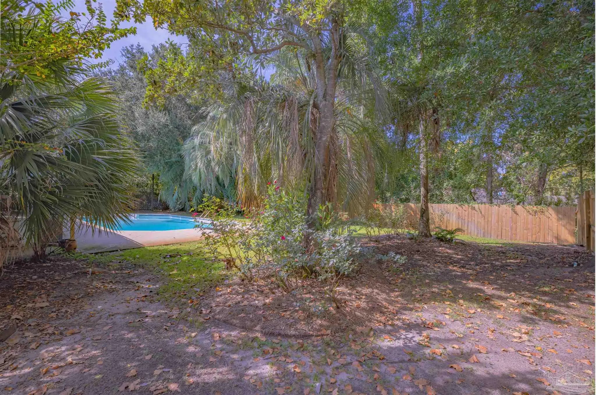 **OPEN HOUSE** November 8 from 11-2pm. Welcome to your dream home, nestled amongst the coveted Tiger Point Village Neighborhood. This budget friendly 3-bedroom, 2-bath haven presents a fabulous blend of comfort and luxury, offering a tranquil retreat from the hustle and bustle of life. Imagine waking up every day to the sight of a sparkling pool in your backyard, surrounded by a lush, well-maintained private oasis with mature foliage. The expansive corner lot provides ample space for your outdoor entertainment and an easy access side yard entry on the East side making rear lawn maintenance a breeze and may also serve as additional storage access for an HOA approved boat or RV. In addition to the fabulous natural canopy of trees at the rear yard, the expansive rear porch offers an extra covering of shade. The lush green yard is maintained by a sprinkler system on a well. Inside the sunroom bathes this lovely abode in natural yet shadowy ambient lighting with a beautiful panoramic view of the pool. The primary bedroom is a sanctuary in itself, featuring an ensuite bath with a large double sink vanity, garden tub and shower. The kitchen is a chef's delight, boasting stainless appliances, breakfast nook and is an open wrapping bar design. This split floorplan allows guests or family some space and privacy in their own bedroom suite. Living in Tiger Point means you're part of a golf cart-friendly community with a plethora of features. Enjoy a 55-acre Soundside Preserve with a ½ mile beach on the sound, dine at The Pointe Restaurant or its themed restaurant neighbor Tiki Republic, and shop at nearby stores 2 minutes away like Lowe's, Publix, and Super Walmart. This home is more than just a house; it's a lifestyle. This home offers so many desirable attributes, it surely won't last long so schedule your showing today! Priced to Sell, so why wait?