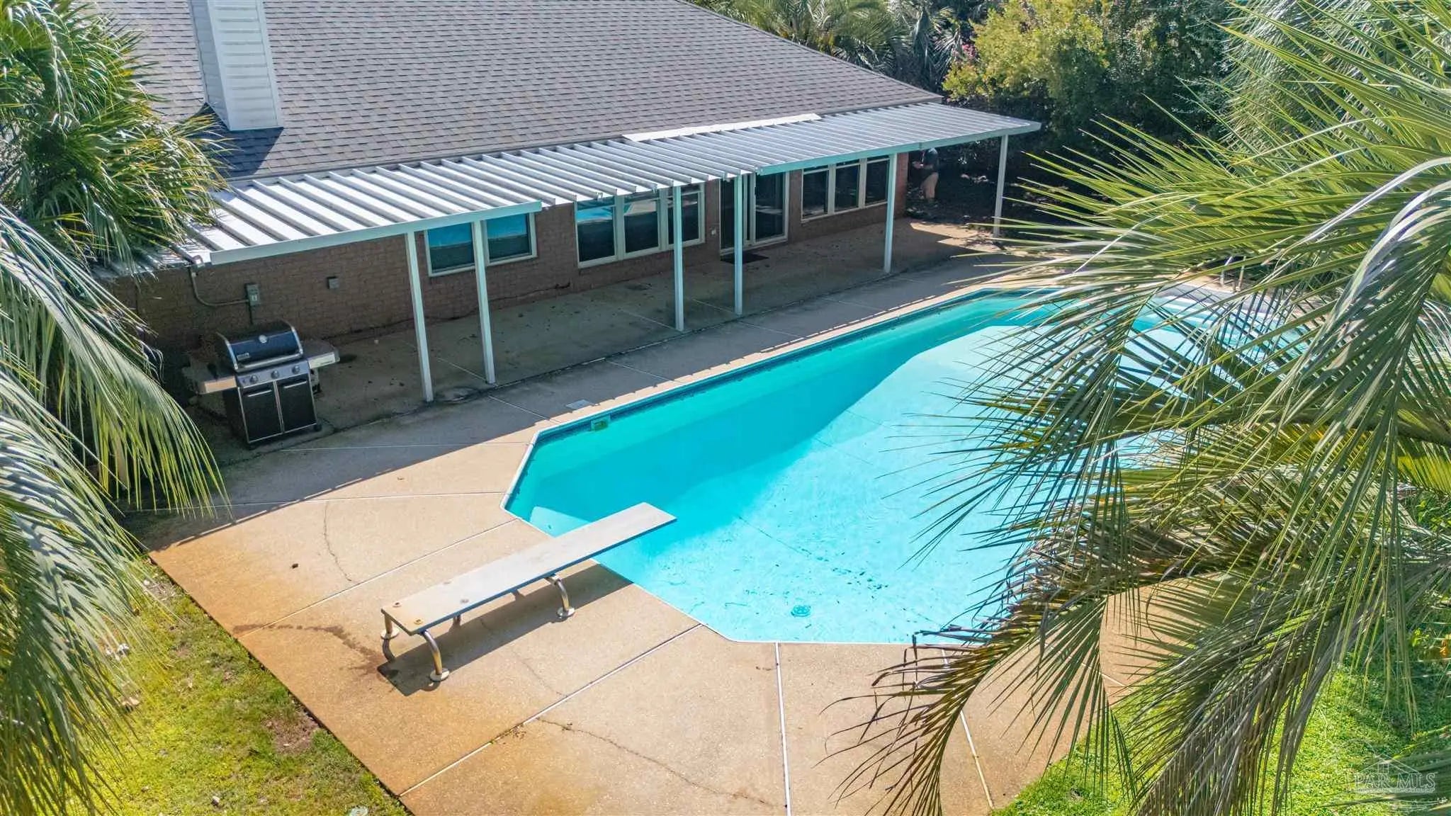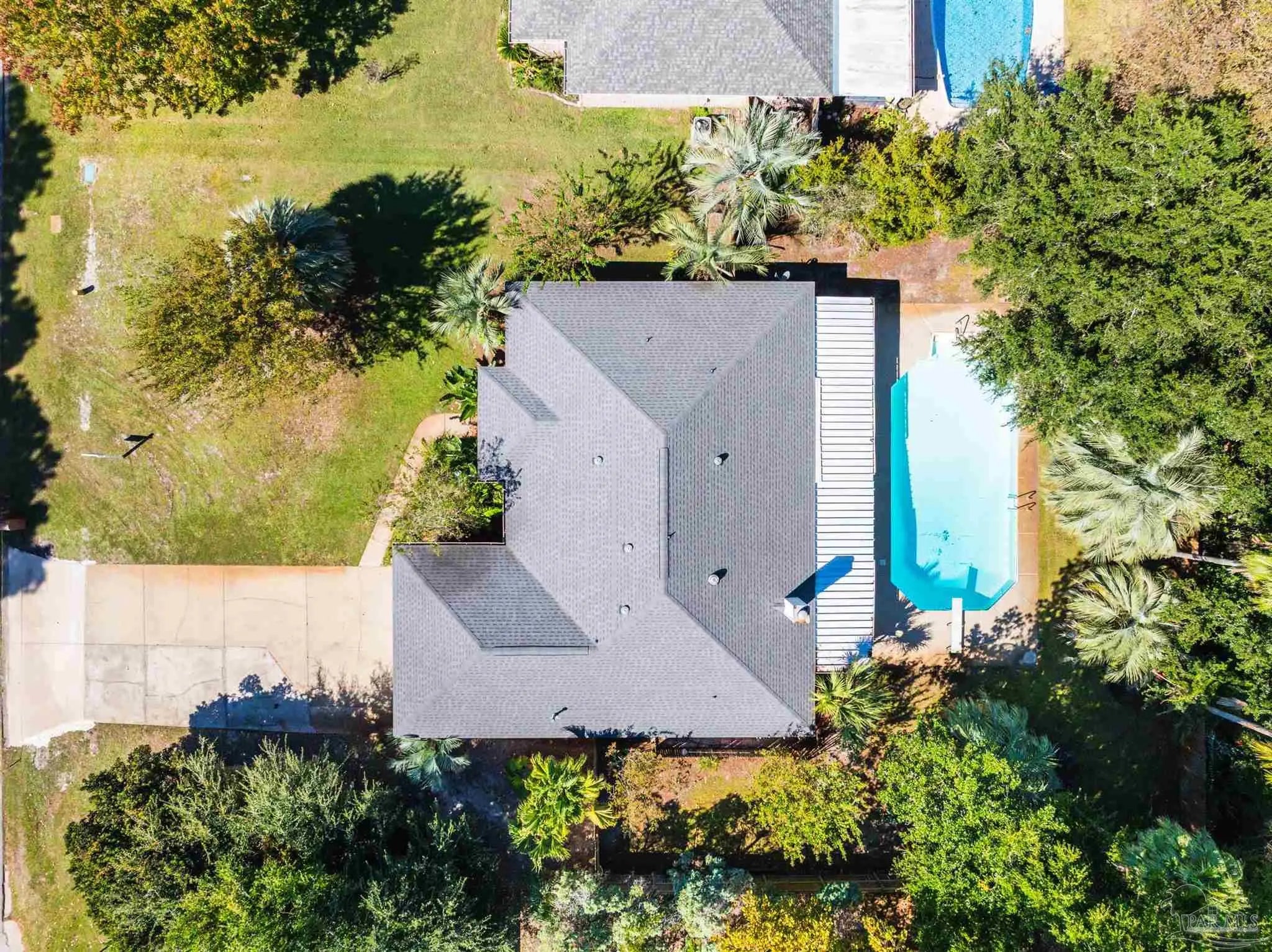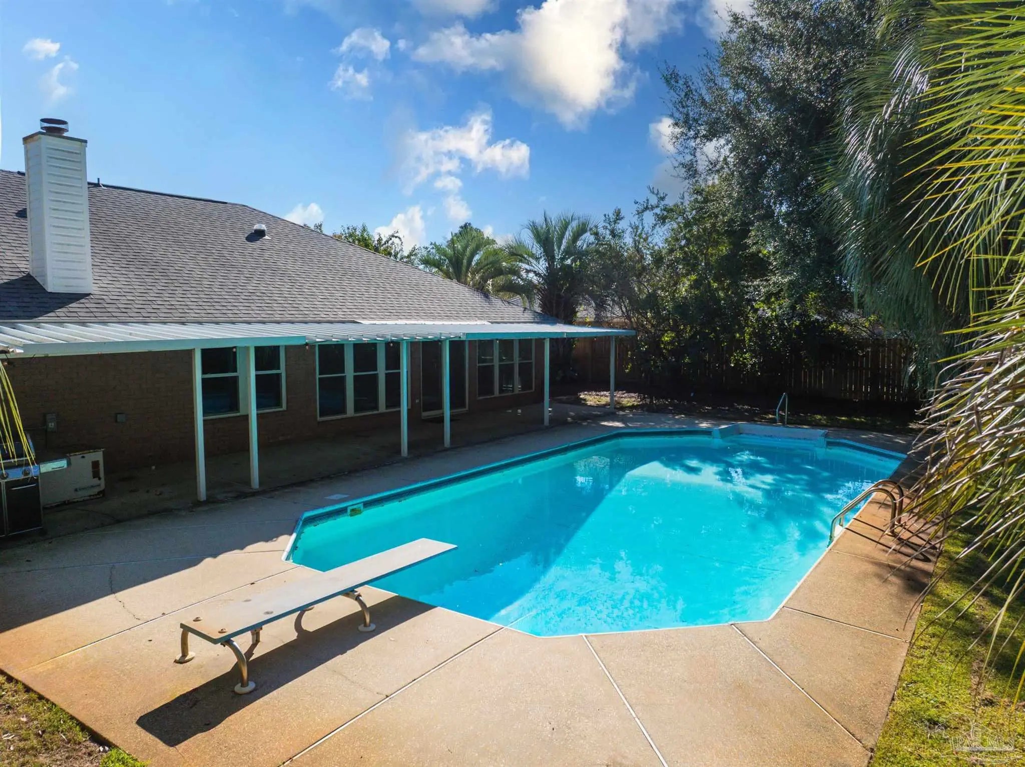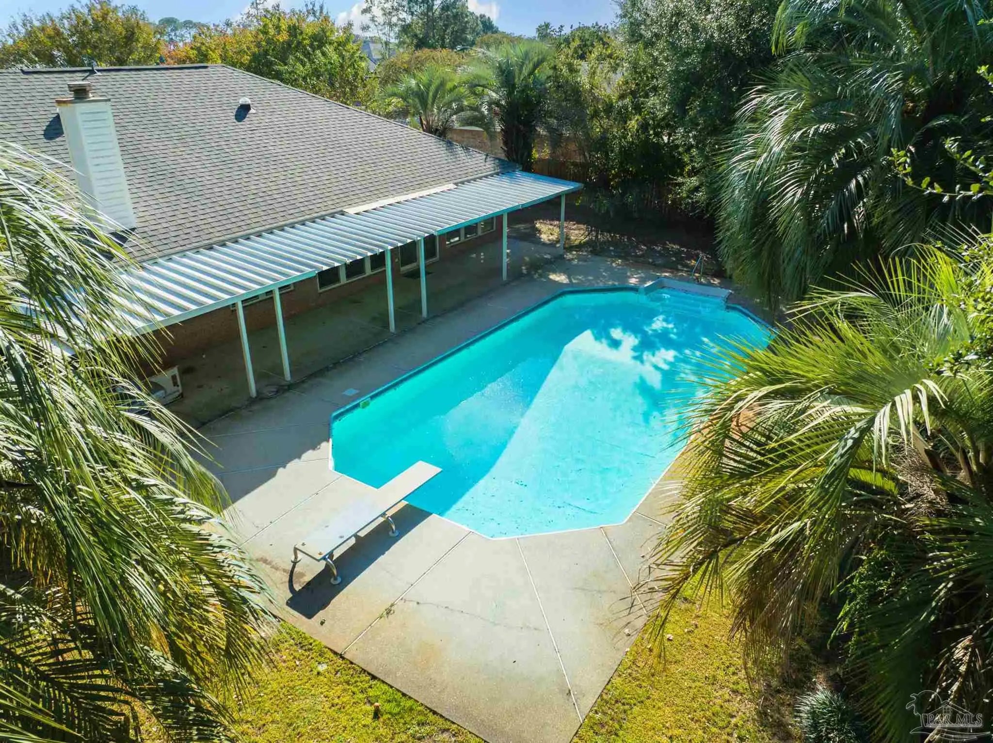 **OPEN HOUSE** November 8 from 11-2pm. Welcome to your dream home, nestled amongst the coveted Tiger Point Village Neighborhood. This budget friendly 3-bedroom, 2-bath haven presents a fabulous blend of comfort and luxury, offering a tranquil retreat from the hustle and bustle of life. Imagine waking up every day to the sight of a sparkling pool in your backyard, surrounded by a lush, well-maintained private oasis with mature foliage. The expansive corner lot provides ample space for your outdoor entertainment and an easy access side yard entry on the East side making rear lawn maintenance a breeze and may also serve as additional storage access for an HOA approved boat or RV. In addition to the fabulous natural canopy of trees at the rear yard, the expansive rear porch offers an extra covering of shade. The lush green yard is maintained by a sprinkler system on a well. Inside the sunroom bathes this lovely abode in natural yet shadowy ambient lighting with a beautiful panoramic view of the pool. The primary bedroom is a sanctuary in itself, featuring an ensuite bath with a large double sink vanity, garden tub and shower. The kitchen is a chef's delight, boasting stainless appliances, breakfast nook and is an open wrapping bar design. This split floorplan allows guests or family some space and privacy in their own bedroom suite. Living in Tiger Point means you're part of a golf cart-friendly community with a plethora of features. Enjoy a 55-acre Soundside Preserve with a ½ mile beach on the sound, dine at The Pointe Restaurant or its themed restaurant neighbor Tiki Republic, and shop at nearby stores 2 minutes away like Lowe's, Publix, and Super Walmart. This home is more than just a house; it's a lifestyle. This home offers so many desirable attributes, it surely won't last long so schedule your showing today! Priced to Sell, so why wait?