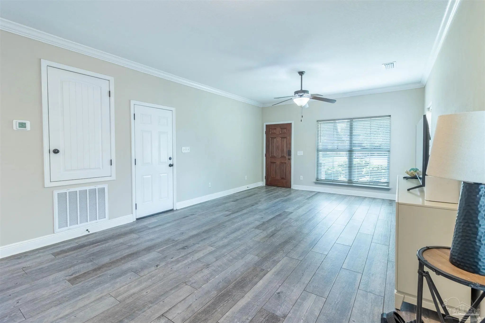 - Baseboards, Ceiling Fan(s), Crown Molding, High Ceilings, Smart Thermostat