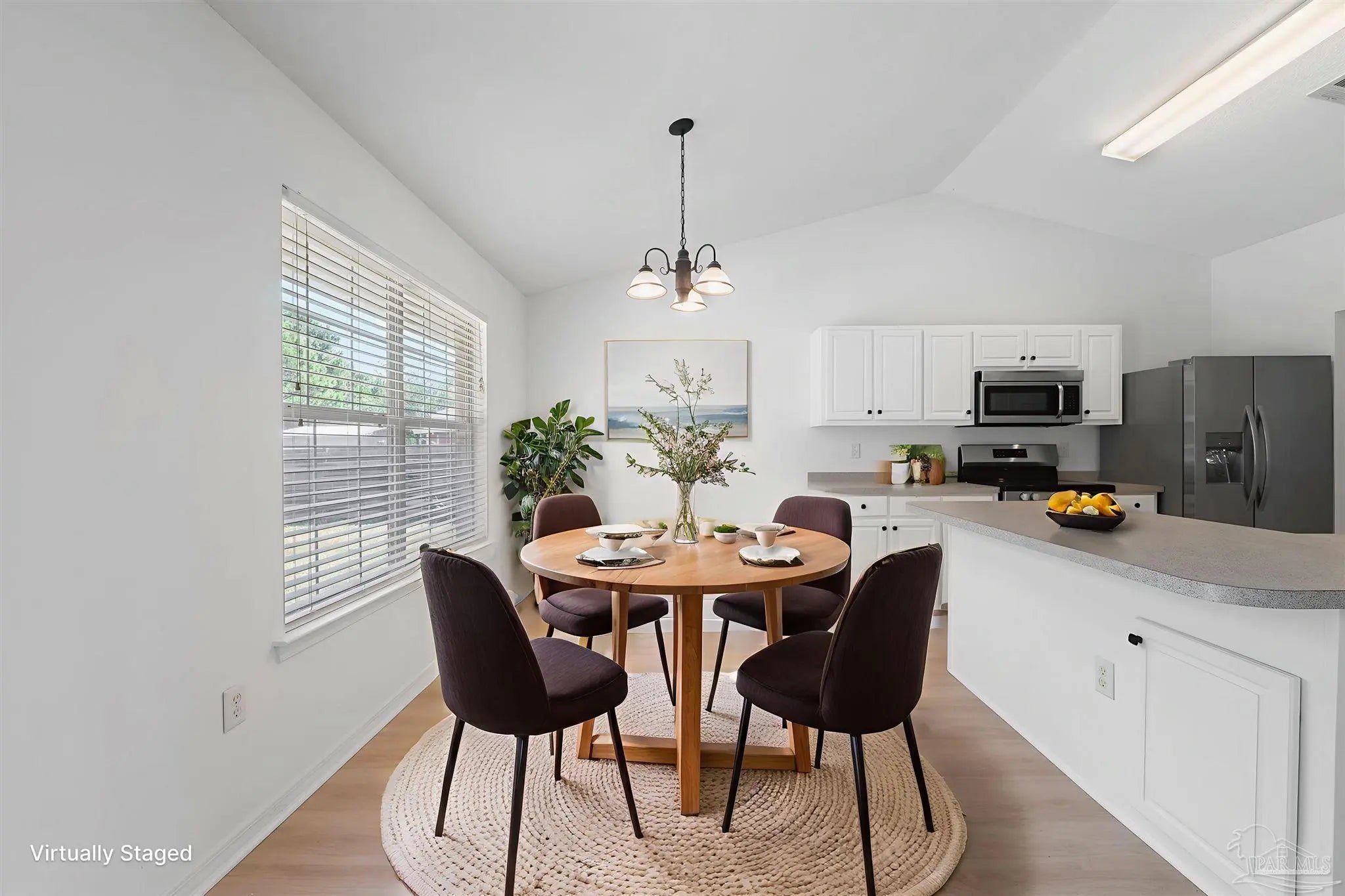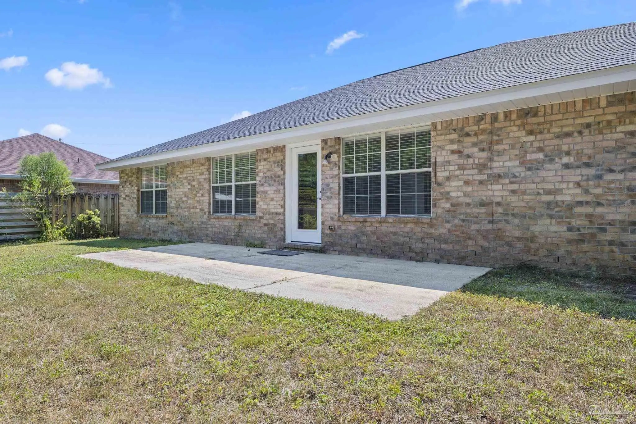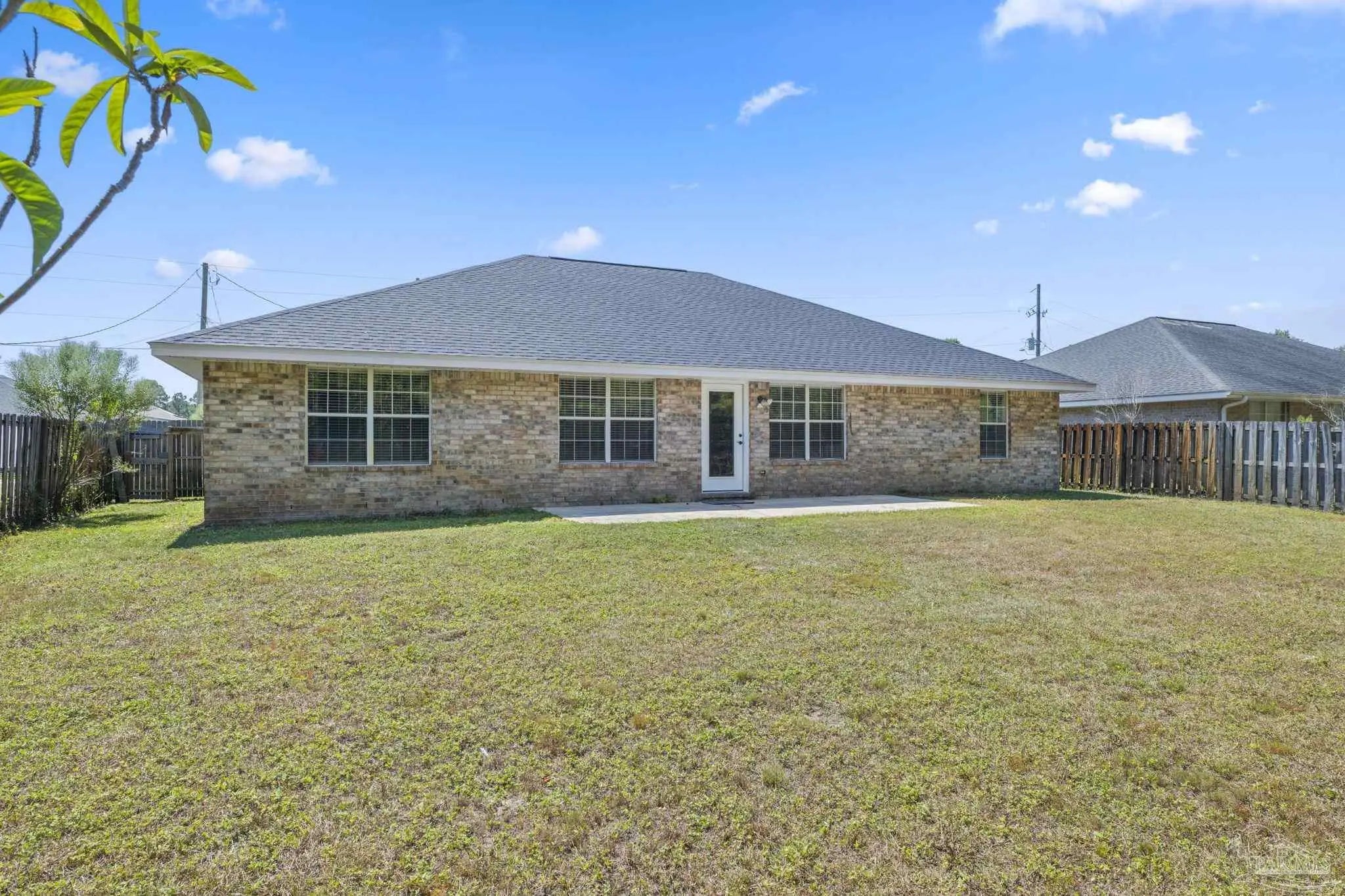 Located in the heart of East Navarre’s sought-after Hampton Ridge Estates, this home offers the perfect blend of modern elegance, thoughtful design, and prime location, making it an exceptional choice for a primary residence, second home, or investment property. Just 3 miles from the pristine emerald waters of Navarre Beach, this property is conveniently located minutes from top-rated schools, shopping, dining, and a quick 20-minute drive to Hurlburt Field.. Recently upgraded with a brand-new roof, this home boasts lasting durability and peace of mind. The inviting interior features soaring vaulted ceilings, fresh white paint, and light-colored tile and luxury vinyl plank (LVP) flooring, creating a bright and airy atmosphere that amplifies natural light throughout the main living areas. The spacious kitchen is a chef’s delight, showcasing shaker-style cabinetry, sleek stainless steel appliances, a built-in microwave, and a breakfast bar with seating, perfect for casual dining or entertaining. Adjacent to the kitchen, the versatile breakfast nook area that is ideal for everything from cozy family meals to formal dinners or lively game nights. Step outside to a fully fenced backyard offering ample space for a pool, playset, or outdoor entertaining, complete with a private area for relaxation. The primary suite is a serene retreat, featuring an en-suite bathroom with a double vanity, white cabinetry, a walk-in closet, a tub, a freestanding shower, and elegant porcelain tile flooring. The thoughtfully designed split floor plan ensures privacy, with two additional bedrooms featuring modern LVP flooring and large windows, sharing a full bathroom, ideal for guests, a home office, or a fitness room. A third bedroom includes a private bathroom with a shower/tub combo, adding extra convenience. The home also offers a laundry room with direct access to a spacious garage, providing ample room for vehicles and storage.