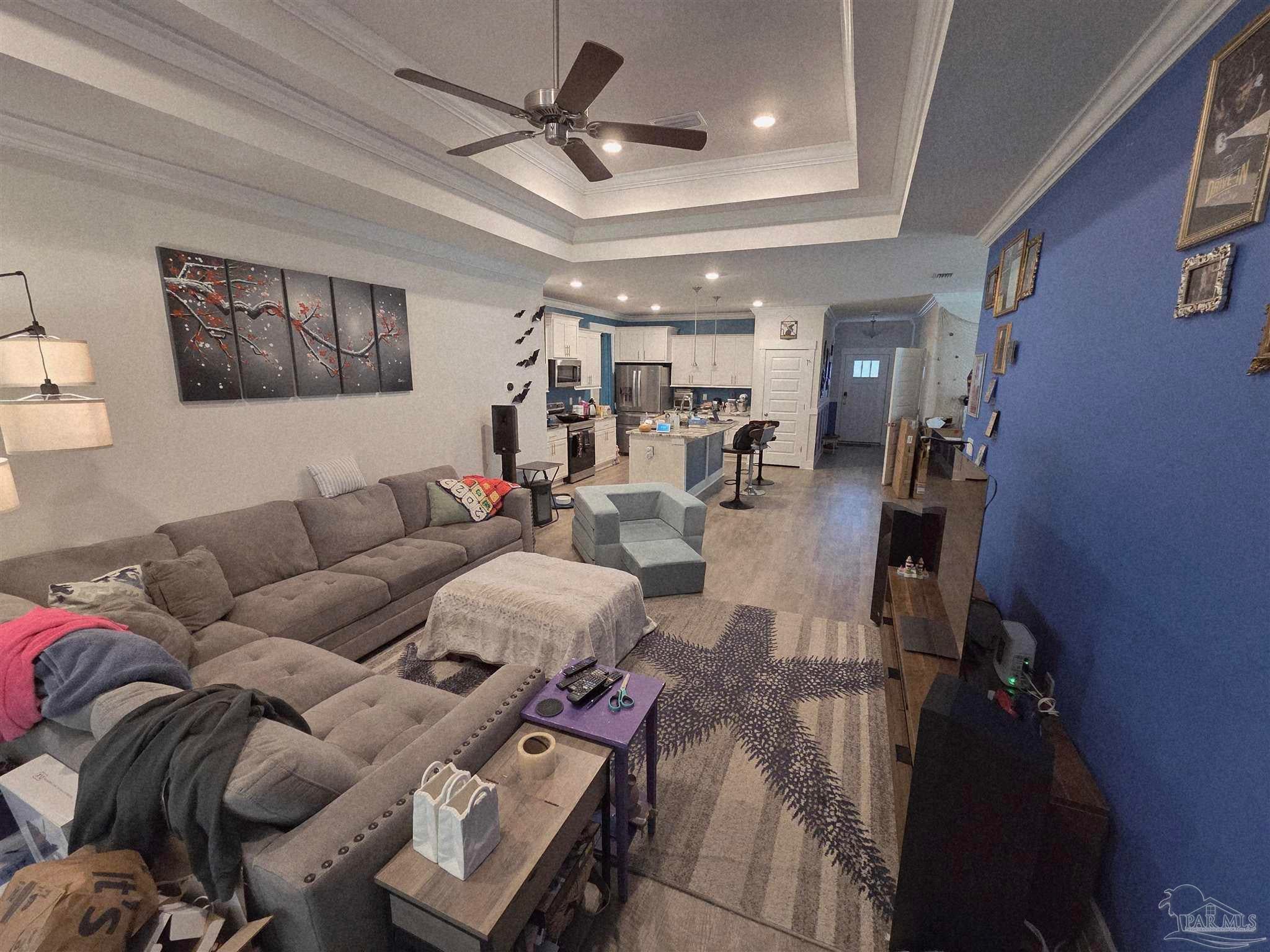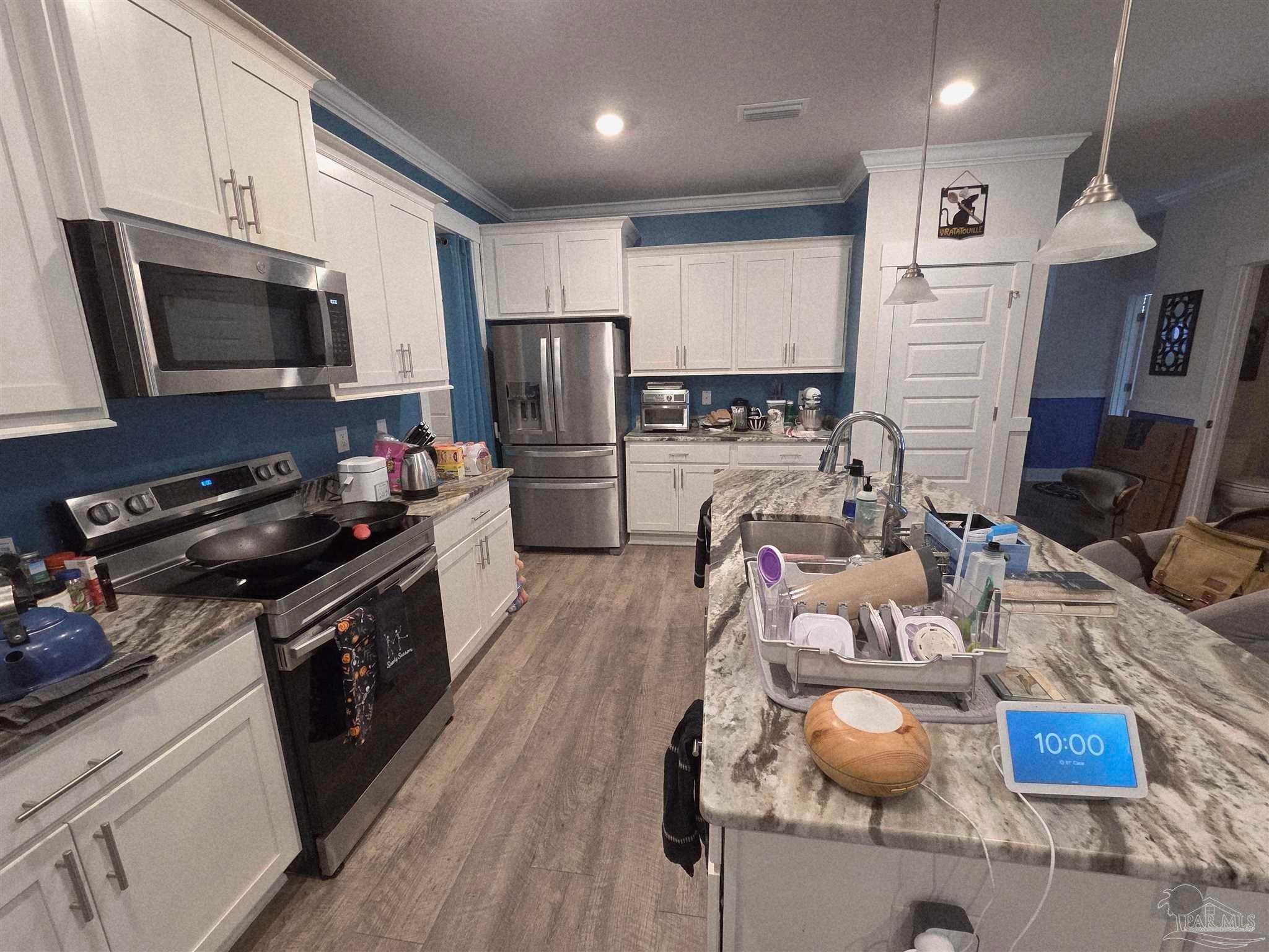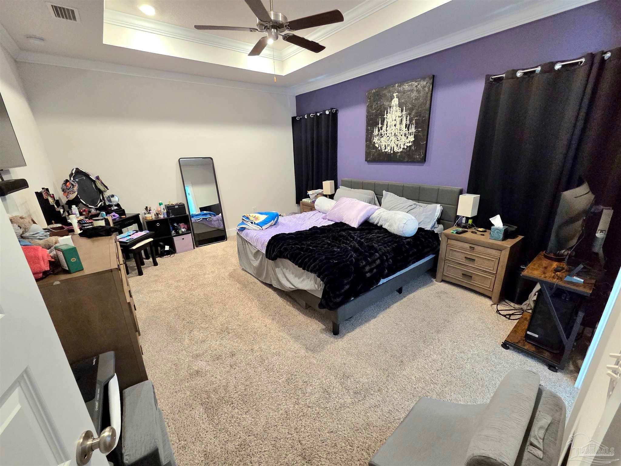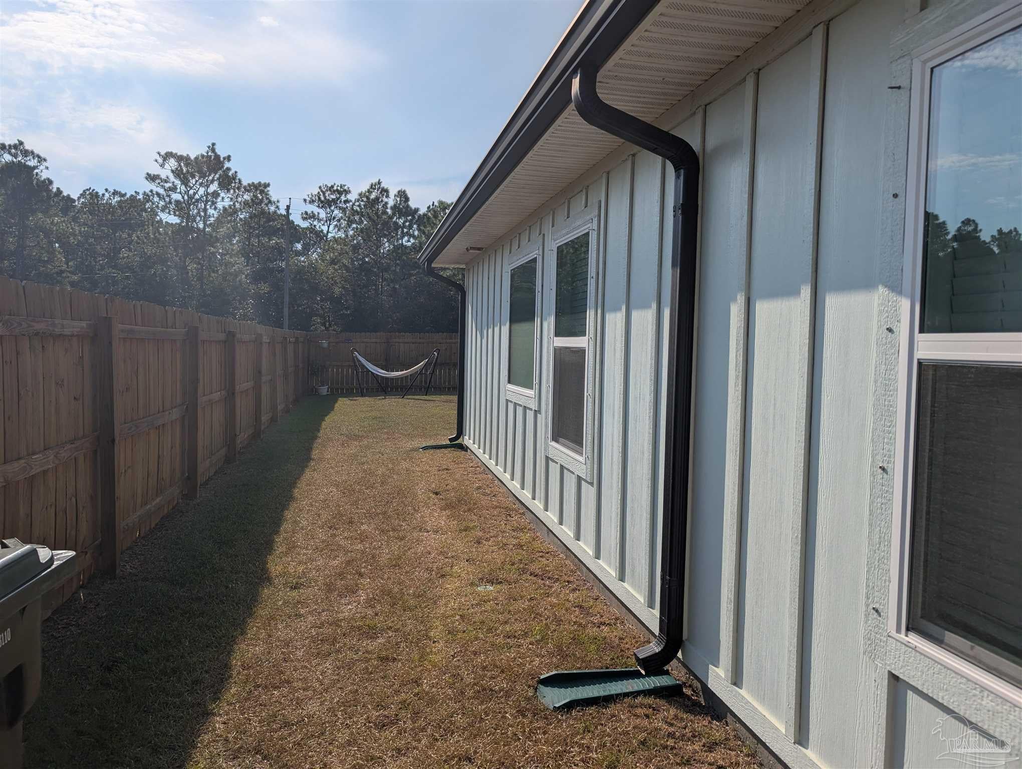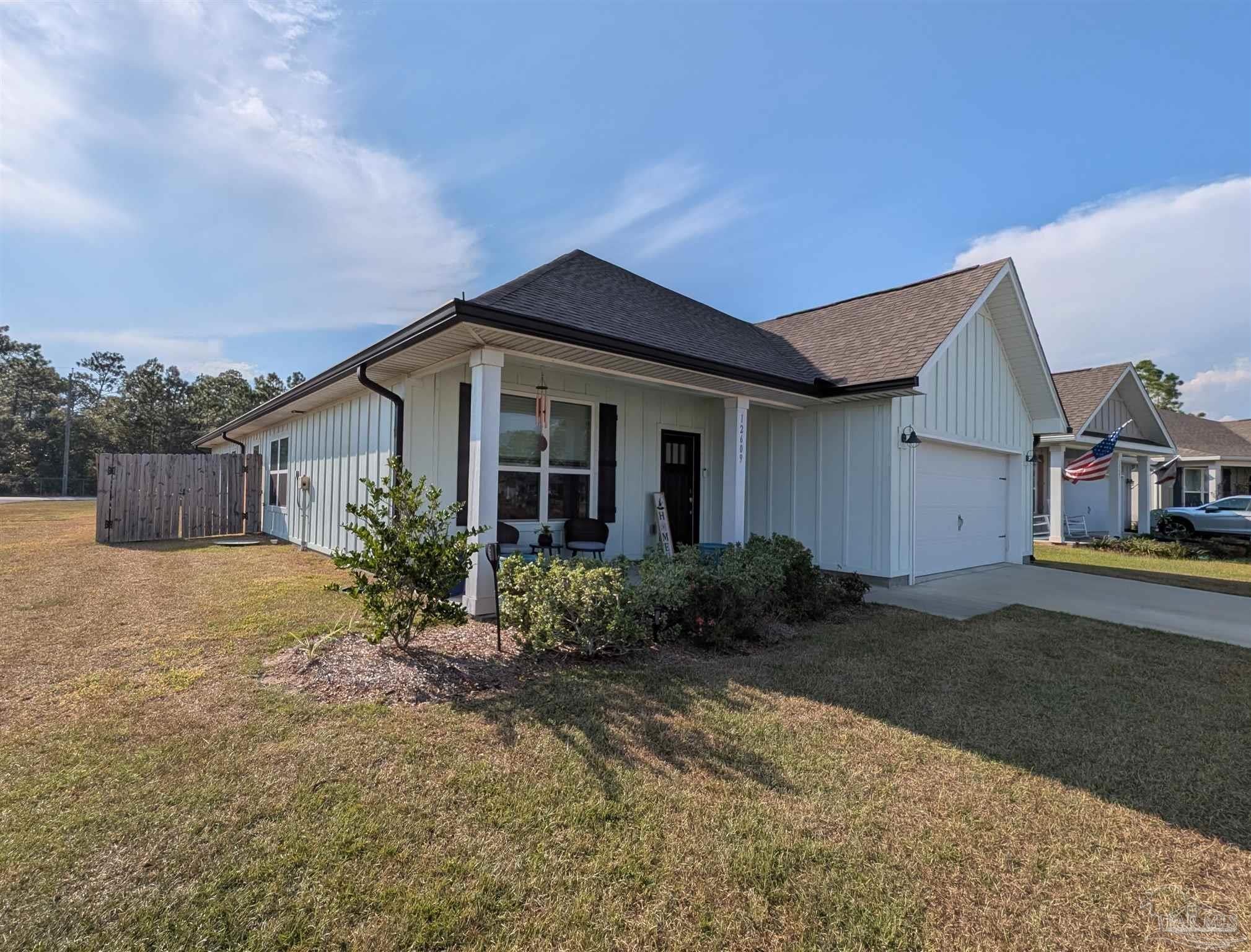 Like new, but better! This home is nestled between the breeze of the Perdido Bay and the MWR's Blue Angel Recreational Park. This 4 bedroom 2.5 bathroom or 3 bedroom 2.5 bath with a study flexible floor plan fills every nook within the 2033 sq ft. The plan is open, but spaces are defined. The granite's gloss is perfectly accented with the nine and ten ft ceilings cascading above with crown molding and a featured trey. As much as you will love the indoor space, the porches (front and back) lead you into an outdoor space where you can relax, retreat, and recharge. This lot has the unmatched feature of no neighbors behind and no one can build on the space on the left. This leaves even more possibilities such as pool and/or hot tub or more room for children to run. Gutters and splash guards help to maintain the home, while the Google smart home features make the home safe, convenient, and energy efficient. Make an appointment to see it now.