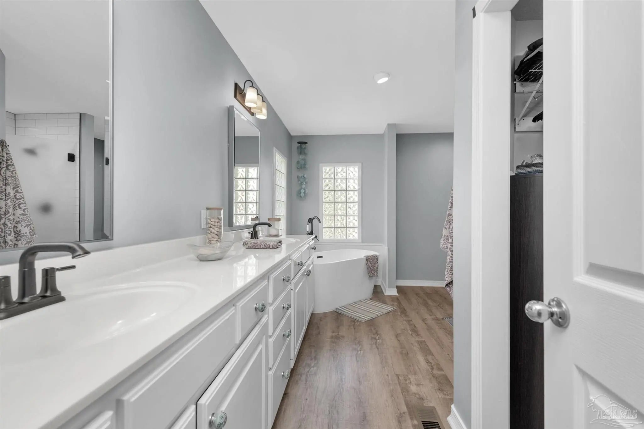 Tucked away on a quiet cul-de-sac in a sought-after waterfront community, this stunning custom home offers the perfect blend of privacy, charm, and convenience — all with NO HOA and access to Santa Rosa Sound! Move-in ready and thoughtfully designed, this home truly checks all the boxes. Step outside and you’ll see why this property was made for entertaining. The spacious 24’x16’ covered patio creates the ultimate outdoor living space, complete with an outdoor kitchen featuring a gas grill, a cozy gas firepit, outdoor shower, and a huge backyard with beautiful views. Peek through the trees and you’ll even catch a glimpse of the Sound! Whether you're hosting friends or enjoying a quiet evening under the stars, this backyard delivers. Inside, the first floor offers both function and flexibility with a formal living room, formal dining room, inviting family room, and a well-appointed kitchen featuring a gas range, stainless steel appliances, and a bright breakfast area. You’ll also find a convenient half bath plus a laundry area with an additional half bath. Upstairs, the layout continues to impress with two guest bedrooms, a dedicated office space, and a spacious primary suite overlooking the backyard. The updated primary bathroom feels like a private retreat, showcasing a gorgeous tiled shower, dual vanities, and a beautiful soaking tub perfect for unwinding at the end of the day. All of this is just minutes from Hurlburt Field, shopping, dining, schools, and everything the area has to offer. Pets upon approval with $350 refundable deposit. Washer and dryer included but not warranted. Military clause. Renters insurance required.