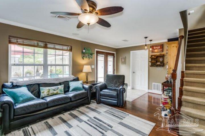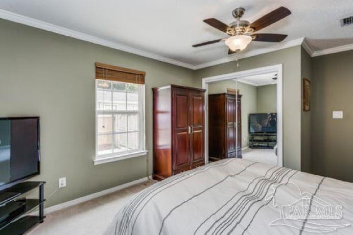 - Storage, Ceiling Fan(s), Crown Molding, High Ceilings