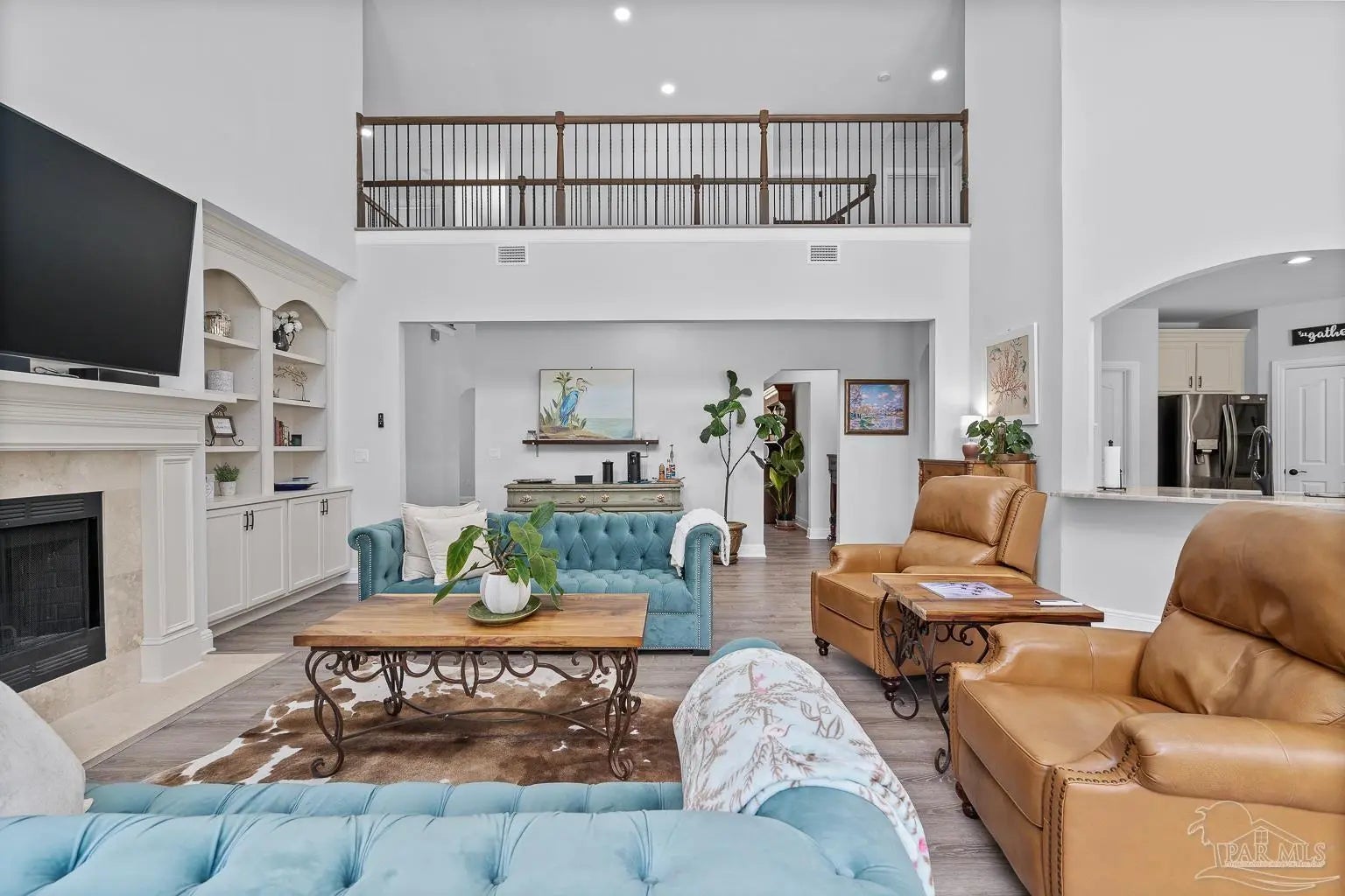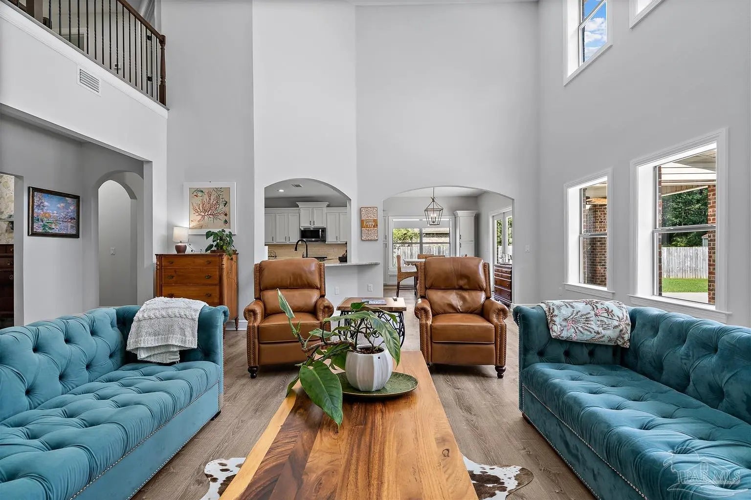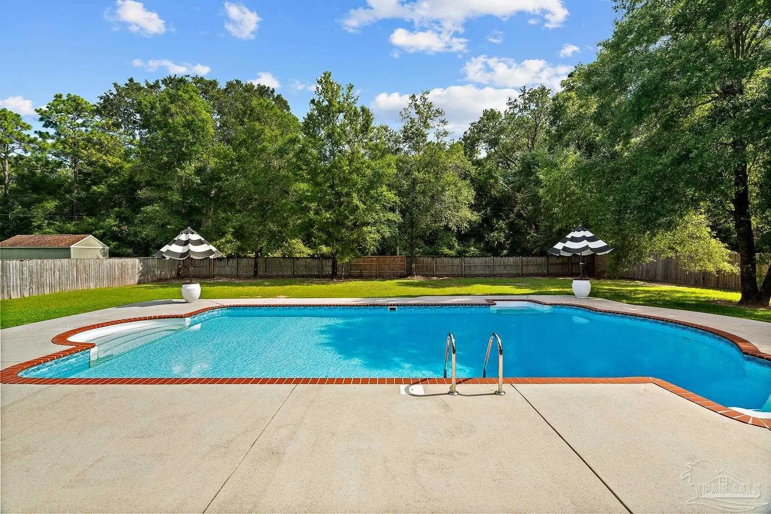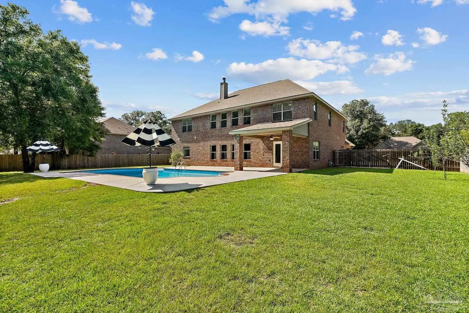 Welcome to Cottonwood—a gated community where elegance, space, and lifestyle come together. This meticulously maintained 6-bedroom, 3.5-bath home spans 4,296 sq. ft. on over half an acre, complete with a private in-ground pool. Inside, soaring ceilings and a catwalk overlook the main living area creating a dramatic space filled with natural light, enhanced by custom built-in cabinetry paired with architectural niches above. The kitchen is a showpiece, featuring stunning Taj Mahal quartzite countertops, custom cabinetry, and a walk-in pantry designed to match the kitchen—providing both beauty and abundant storage. A breakfast nook extends off the kitchen, while a formal dining room and an office on the main level add both function and flexibility. The primary suite is conveniently located on the first floor, offering two walk-in closets and a spa-inspired ensuite bath. Thoughtful touches continue with a butler’s station tucked under the stairs, designed for seamless entertaining and everyday convenience. Upstairs, 5 Bedrooms configured in split-bedroom layout provide privacy for all, with two of the bedrooms offering walk-in closets and every bath finished with beautiful Taj Mahal quartzite countertops and custom cabinetry. A generous bonus/game room completes the second level, delivering endless options for recreation, media, or multi-use space. Outdoors, the lifestyle centerpiece is the expansive, beautiful resort style in-ground pool, framed mature landscaping that backs up to privacy. A side-entry two-car garage and an oversized driveway further elevate the property’s curb appeal. Set within this exclusive community, this residence blends custom detail with everyday livability—crafted for those who want space, style, and a home that truly stands apart.