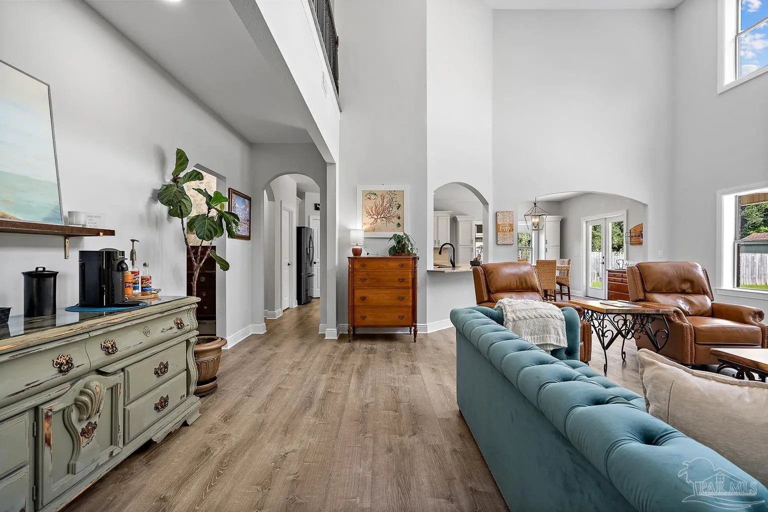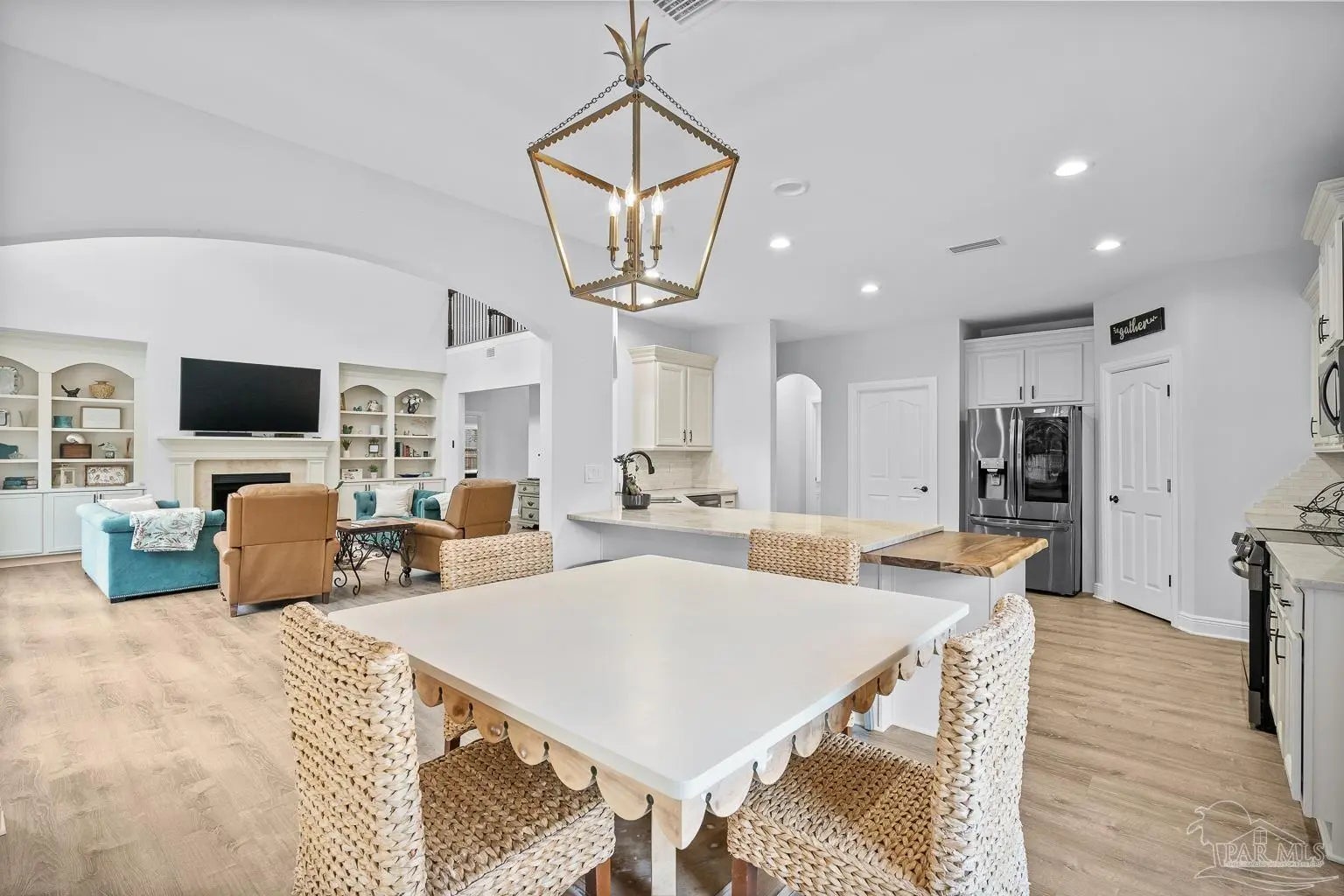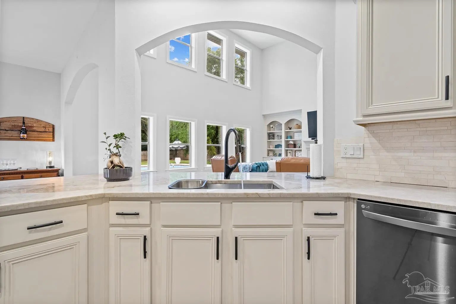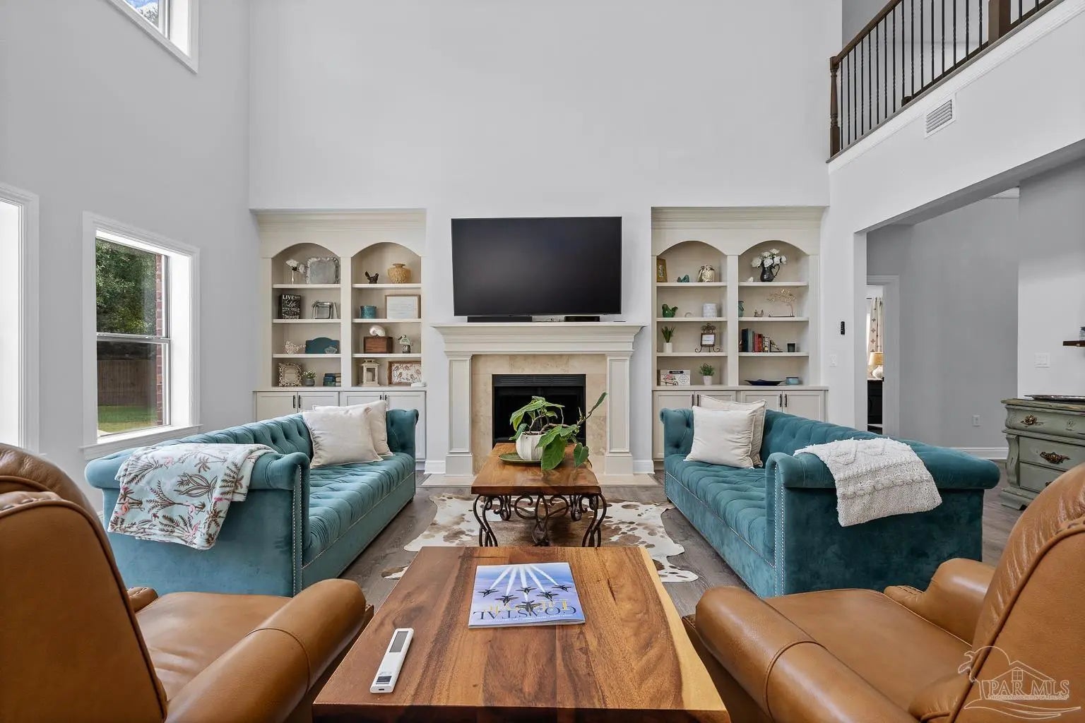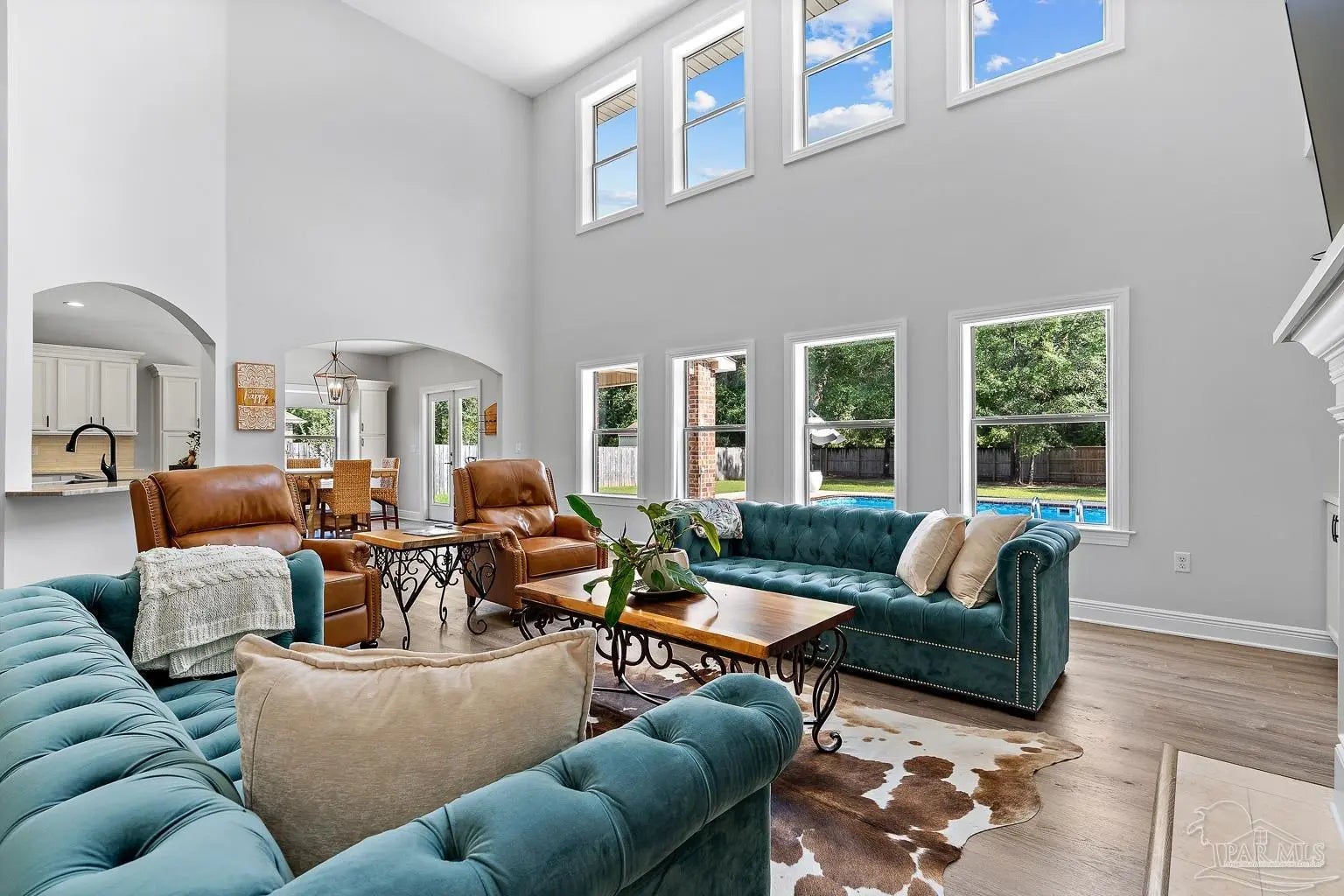 Welcome to Cottonwood—a gated community where elegance, space, and lifestyle come together. This meticulously maintained 6-bedroom, 3.5-bath home spans 4,296 sq. ft. on over half an acre, complete with a private in-ground pool. Inside, soaring ceilings and a catwalk overlook the main living area creating a dramatic space filled with natural light, enhanced by custom built-in cabinetry paired with architectural niches above. The kitchen is a showpiece, featuring stunning Taj Mahal quartzite countertops, custom cabinetry, and a walk-in pantry designed to match the kitchen—providing both beauty and abundant storage. A breakfast nook extends off the kitchen, while a formal dining room and an office on the main level add both function and flexibility. The primary suite is conveniently located on the first floor, offering two walk-in closets and a spa-inspired ensuite bath. Thoughtful touches continue with a butler’s station tucked under the stairs, designed for seamless entertaining and everyday convenience. Upstairs, 5 Bedrooms configured in split-bedroom layout provide privacy for all, with two of the bedrooms offering walk-in closets and every bath finished with beautiful Taj Mahal quartzite countertops and custom cabinetry. A generous bonus/game room completes the second level, delivering endless options for recreation, media, or multi-use space. Outdoors, the lifestyle centerpiece is the expansive, beautiful resort style in-ground pool, framed mature landscaping that backs up to privacy. A side-entry two-car garage and an oversized driveway further elevate the property’s curb appeal. Set within this exclusive community, this residence blends custom detail with everyday livability—crafted for those who want space, style, and a home that truly stands apart.