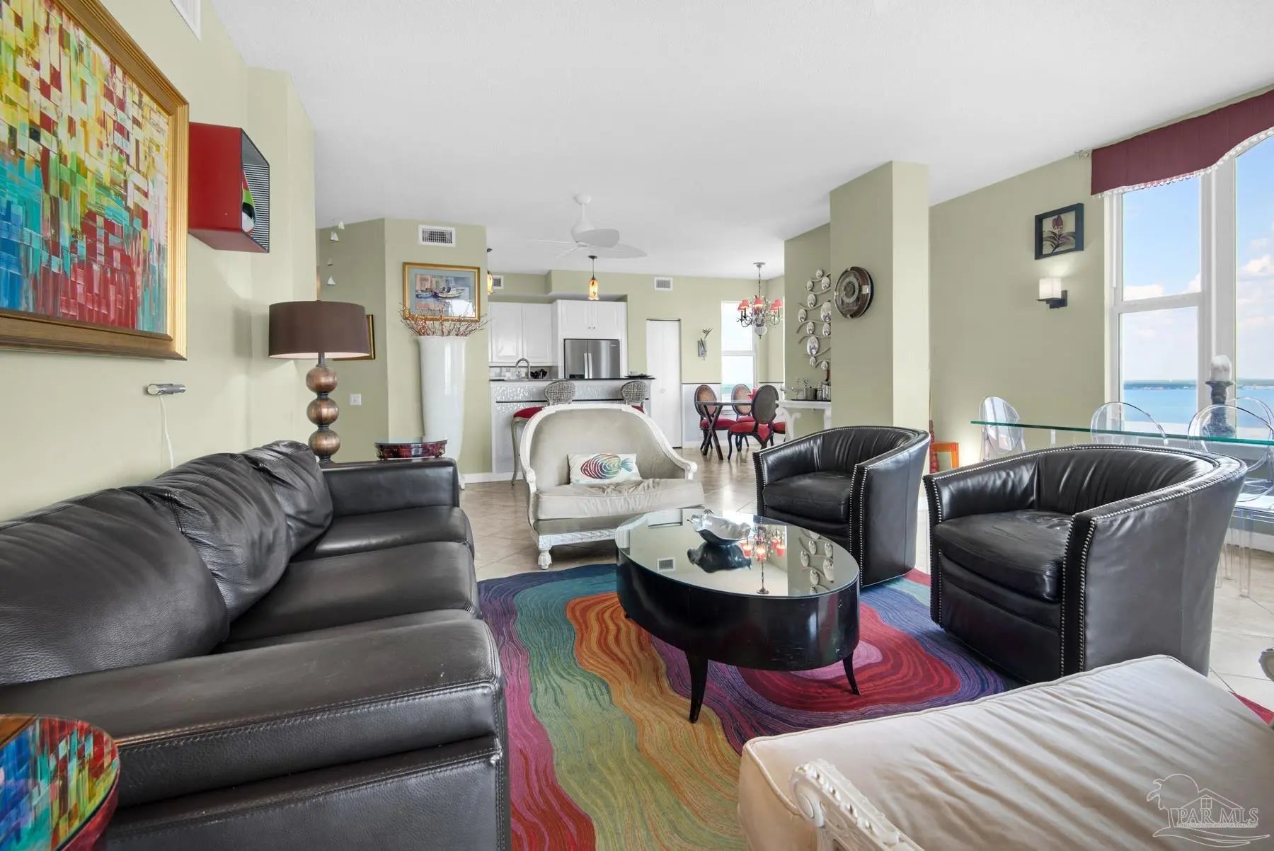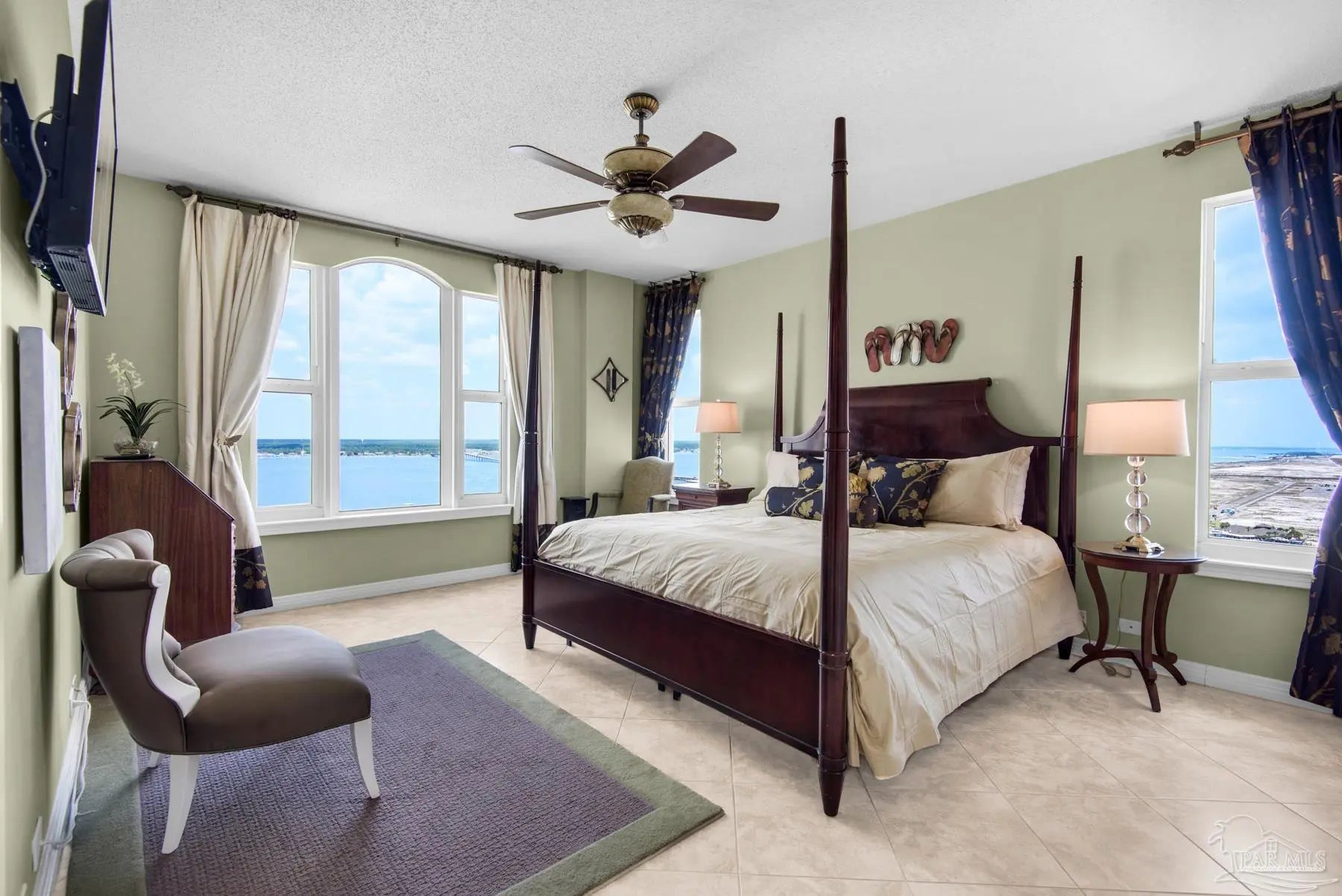 Amazing 19th floor Penthouse with exquisite ''Christopher Guy'' décor and Hollywood flair, makes this unit one of the most popular rentals on Navarre Beach. Upgrades include three bathroom renovations in 2025 with Spanish tile and quartz countertops, new refrigerator, dishwasher and water heater. There is no comparison to the trend setting architecture, the spaciousness, the privacy, and the multiple exposures to the Gulf, with private entry ways and circular terraces. Amenities include covered parking, Olympic size swimming pool, tennis and pickle ball courts, fitness room and social center with a full kitchen for parties and entertaining. This unit is being sold fully furnished!