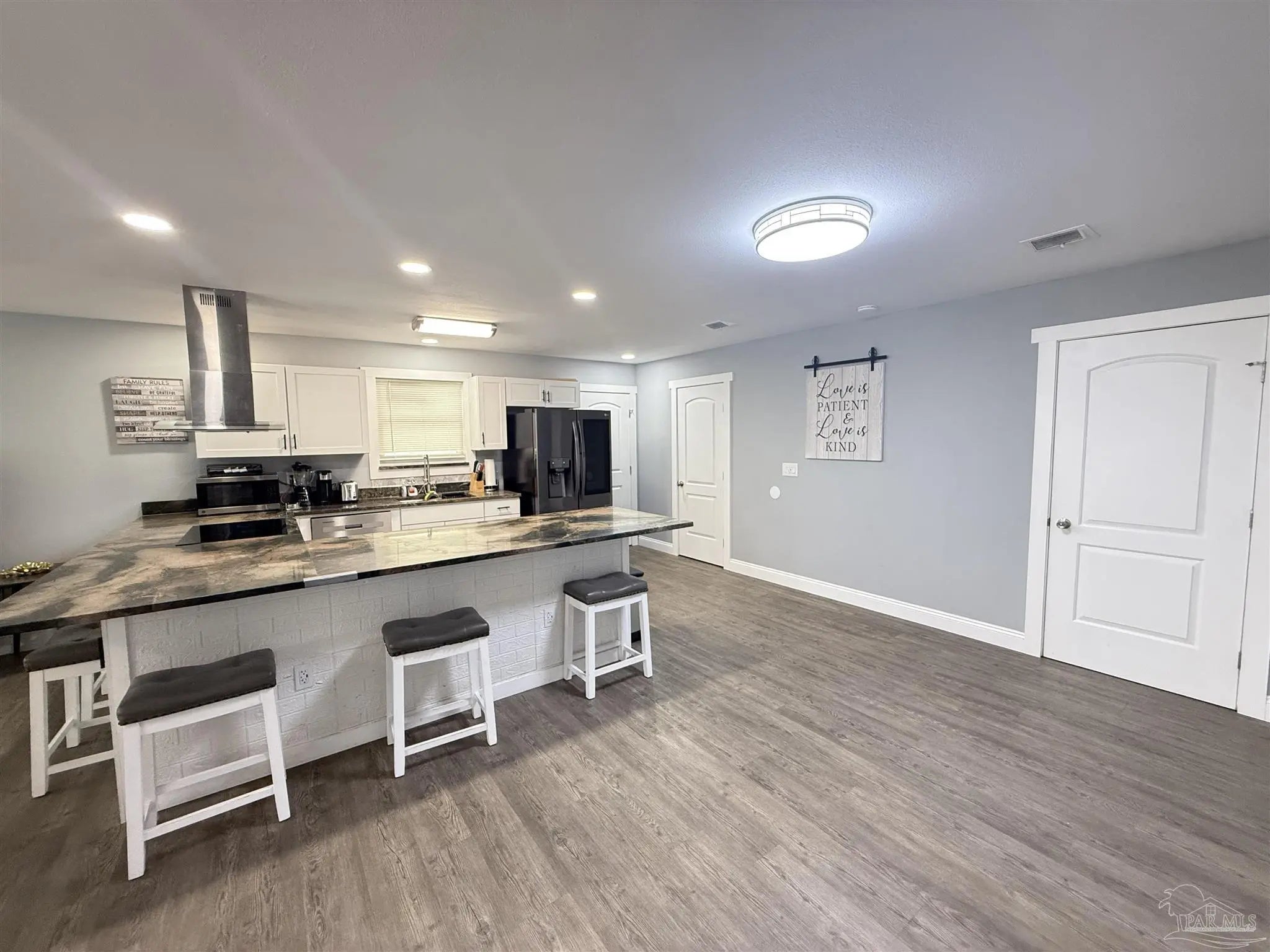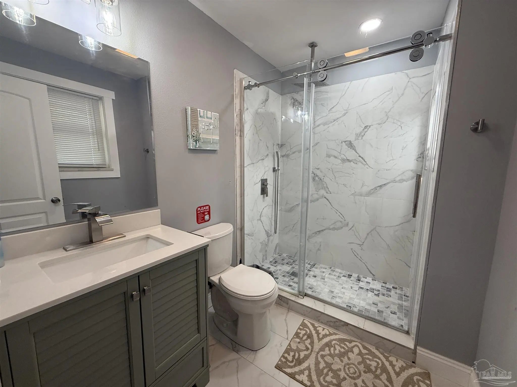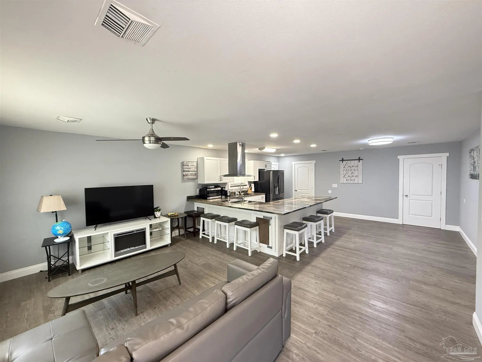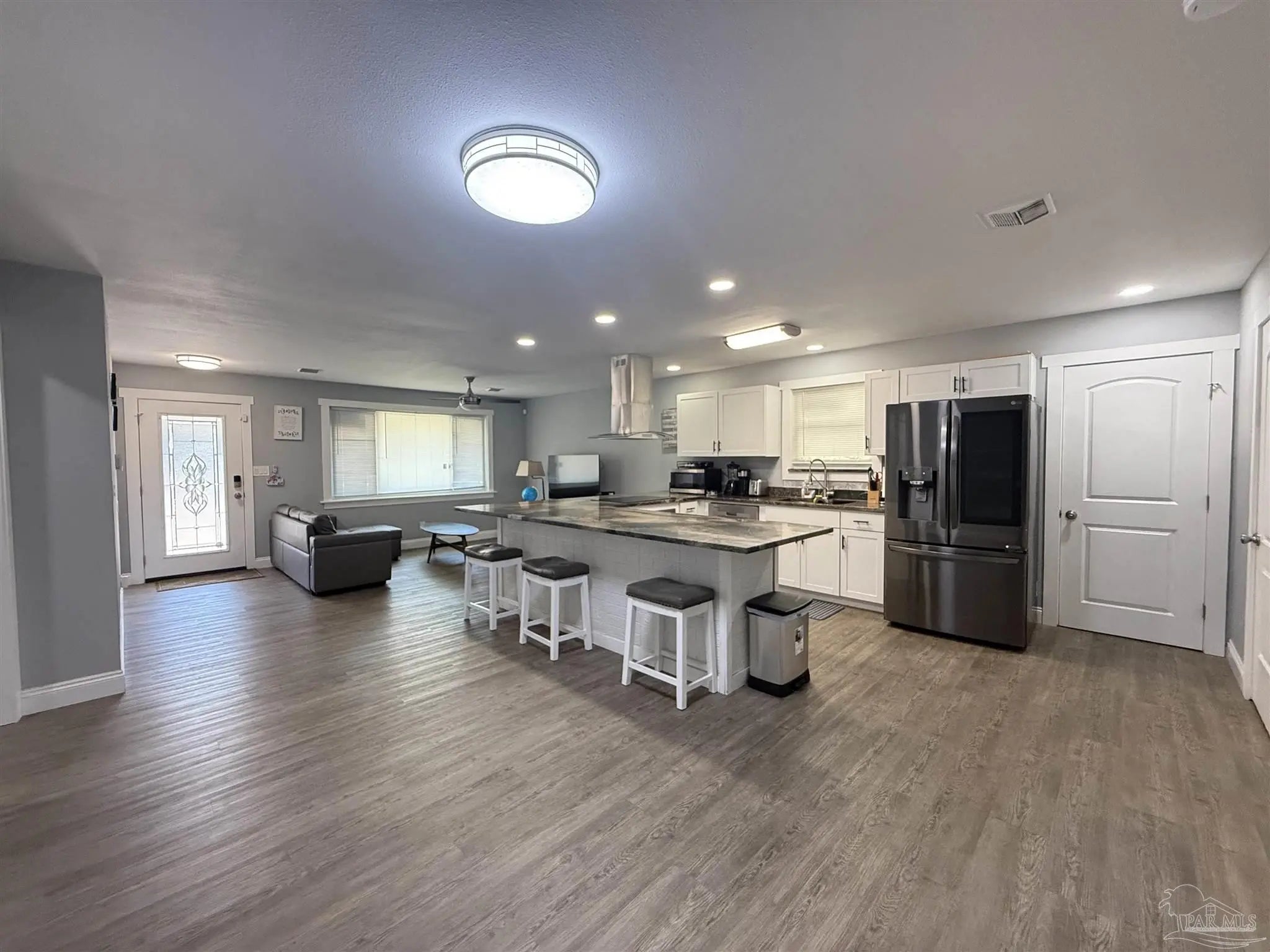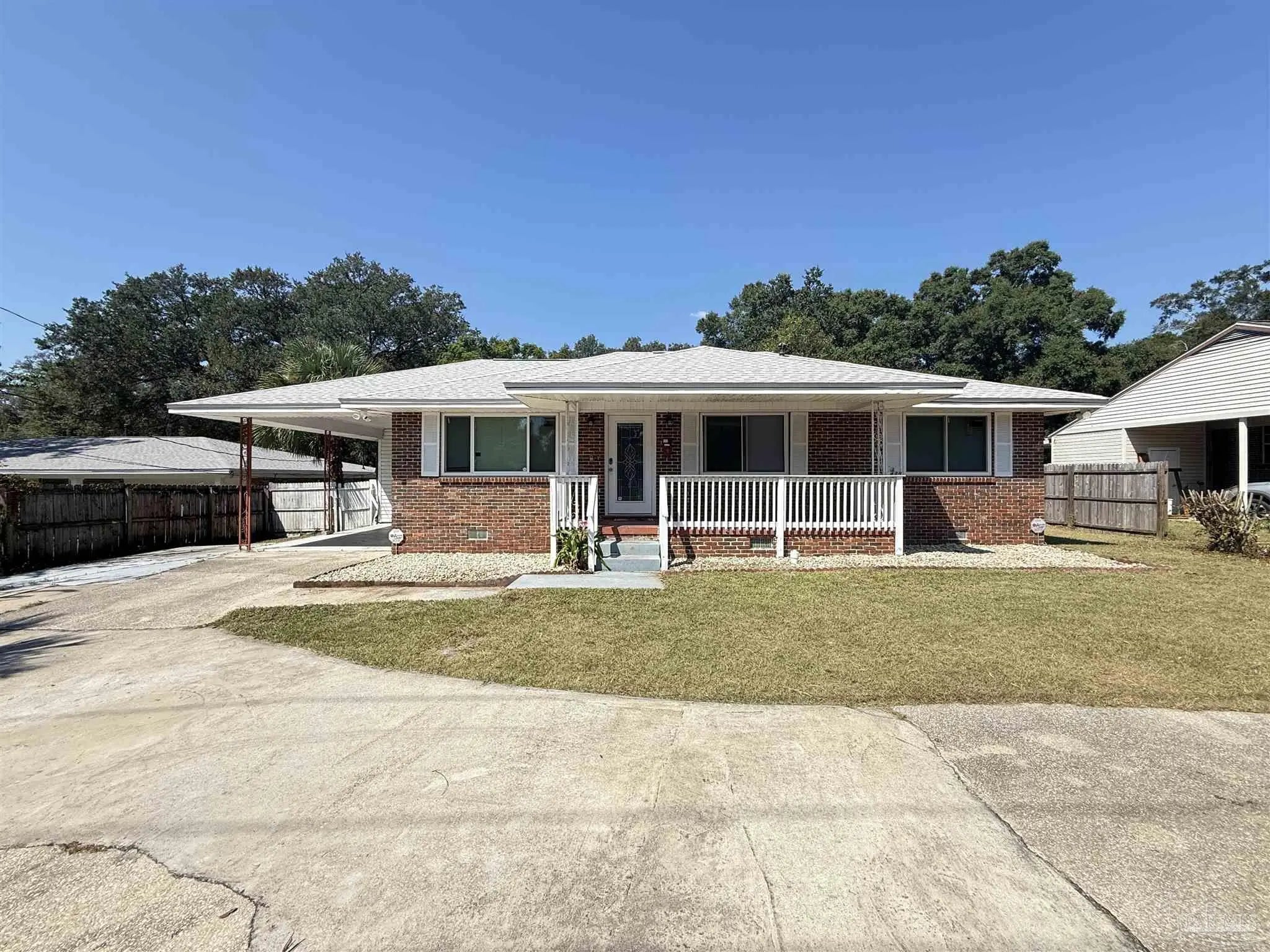 Experience modern comfort in this beautifully transformed 4-bedroom, 3-bathroom home that proves good things really do come to those who renovate. Spanning 1,559 square feet, this gem showcases an impressive open floor plan that welcomes you with style and sophistication. The heart of the home features a stunning L-shaped custom quartz countertop that curves gracefully along the perimeter, offering generous bar seating perfect for morning coffee or evening conversations. The kitchen dazzles with brand-new stainless steel appliances and fresh cabinetry that would make any chef smile with delight. Two bedrooms enjoy the luxury of their own private, fully updated bathrooms, while a third full guest bathroom ensures everyone has their space. Throughout the living areas and kitchen, new luxury vinyl plank flooring creates seamless flow, while elegant Calcutta white tile graces the restrooms with timeless appeal. Step outside to discover your personal oasis featuring a gorgeous composite wood-look deck that bridges indoor and outdoor living. The spacious backyard offers endless possibilities for storage, gardening, or simply unwinding after a long day. The front exterior charms with a welcoming covered patio and convenient carport, plus a circular driveway that makes coming and going effortlessly smooth. This home doesn't just look great – it's built to last. Recent upgrades include a newer roof installed in 2022, impact windows for peace of mind, and a smart AO Smith water heater. The new central heating and cooling system, plus an additional mini-split unit, ensure year-round comfort. Location wise, you'll love being minutes from Publix Super Market, Ascension Sacred Heart Pensacola, Cordova Mall, Baptist Hospital, Pensacola State College, and Pensacola International Airport. This home offers the perfect blend of modern updates, thoughtful design, and convenient accessibility to everything Pensacola has to offer.