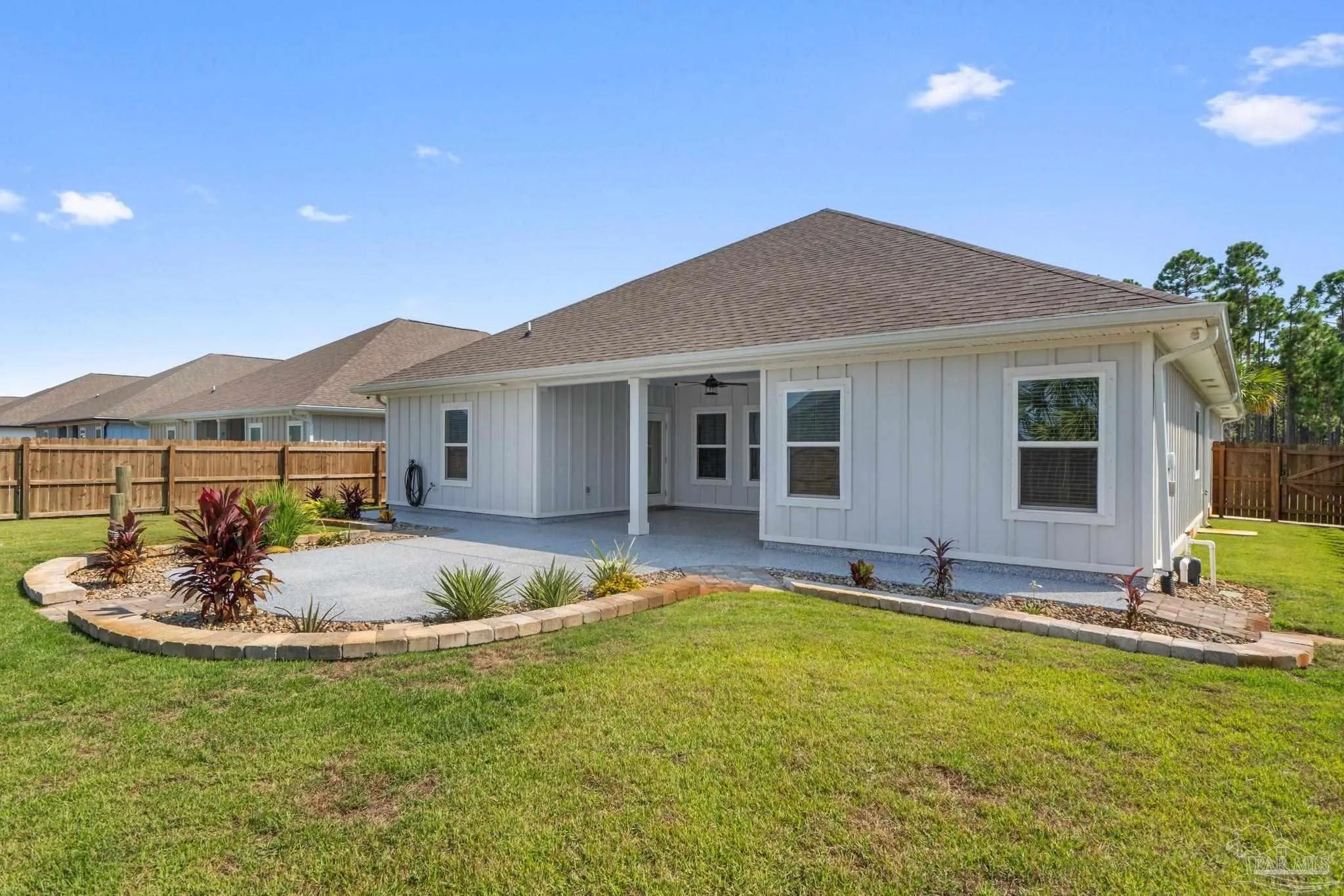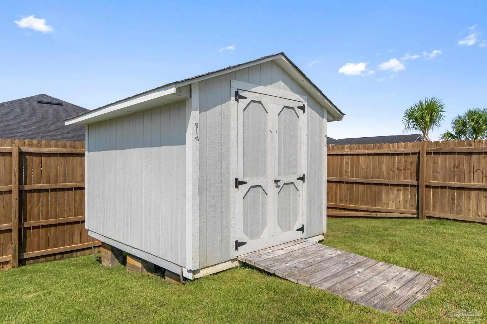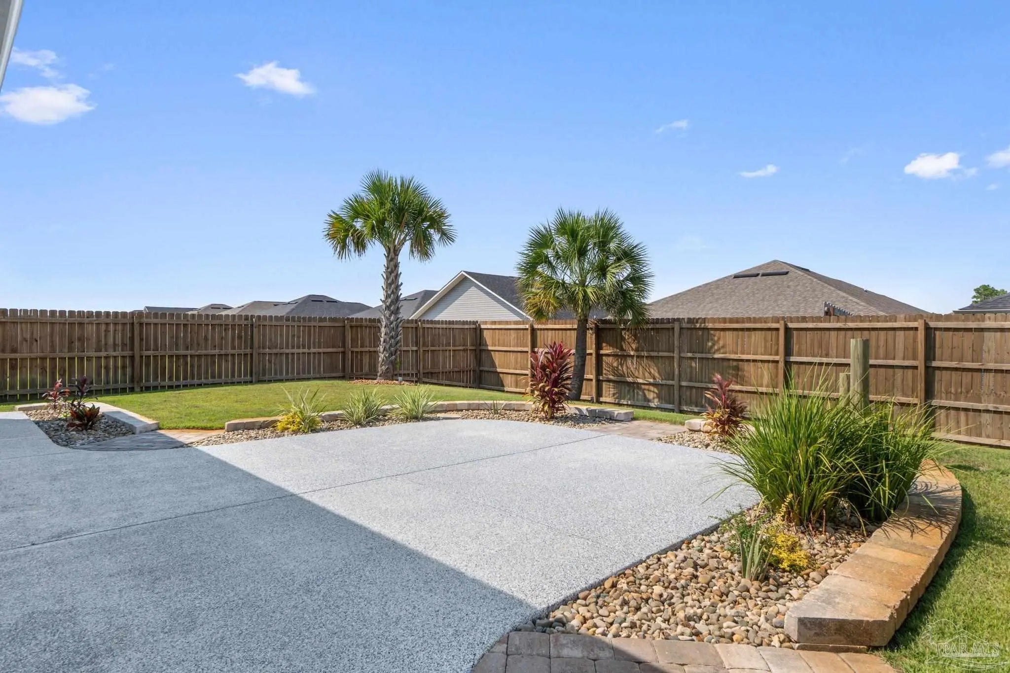 Beautifully maintained and ready to impress - WELCOME HOME!! This gorgeous 4-bedroom, 3-bath home blends fresh, modern style with thoughtful upgrades you won't find in brand new construction. From the moment you arrive, you'll notice the lush, professional landscaping - complete with well and irrigation system. And with a peaceful, natural area directly across the street, you'll enjoy a private, serene view with no homes in front. Step inside to a bright, open layout finished with LVP flooring throughout - no carpet anywhere for a clean, cohesive look. The kitchen showcases a Samsung refrigerator with interactive touch screen, and the Samsung SmartThings washer and dryer, also staying with the home, add the same level of smart convenience to your laundry routine. Step out back to enjoy the extended patio, perfect for morning coffee or evening gatherings.The backyard shed adds extra room for lawn tools, beach gear, or seasonal décor, keeping everything neatly organized. The garage is a true standout, fully finished with epoxy flooring, aluminum attic stairs, Gladiator shelving and cabinets, plus a 15-drawer Craftsman tool chest, all of which convey with the sale. Residents also enjoy the neighborhood community pool, a great place to cool off on a warm Florida day. You will love the easy access to our beautiful Gulf Coast beaches and nearby military bases as well! This move-in-ready home delivers the upgrades you want without the wait-come see for yourself and make 6364 Forest Bay Avenue your new address today!