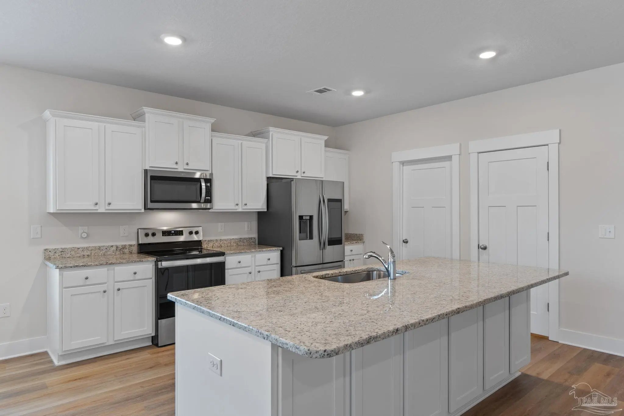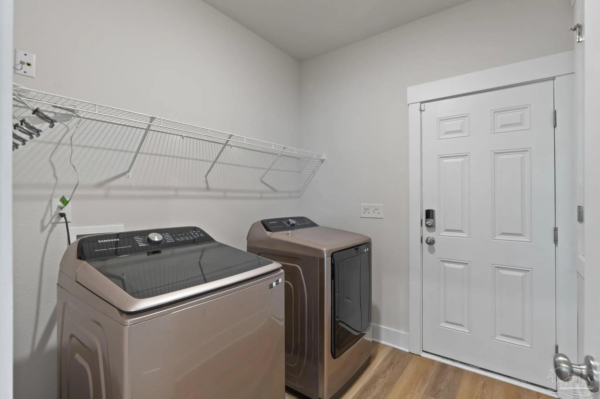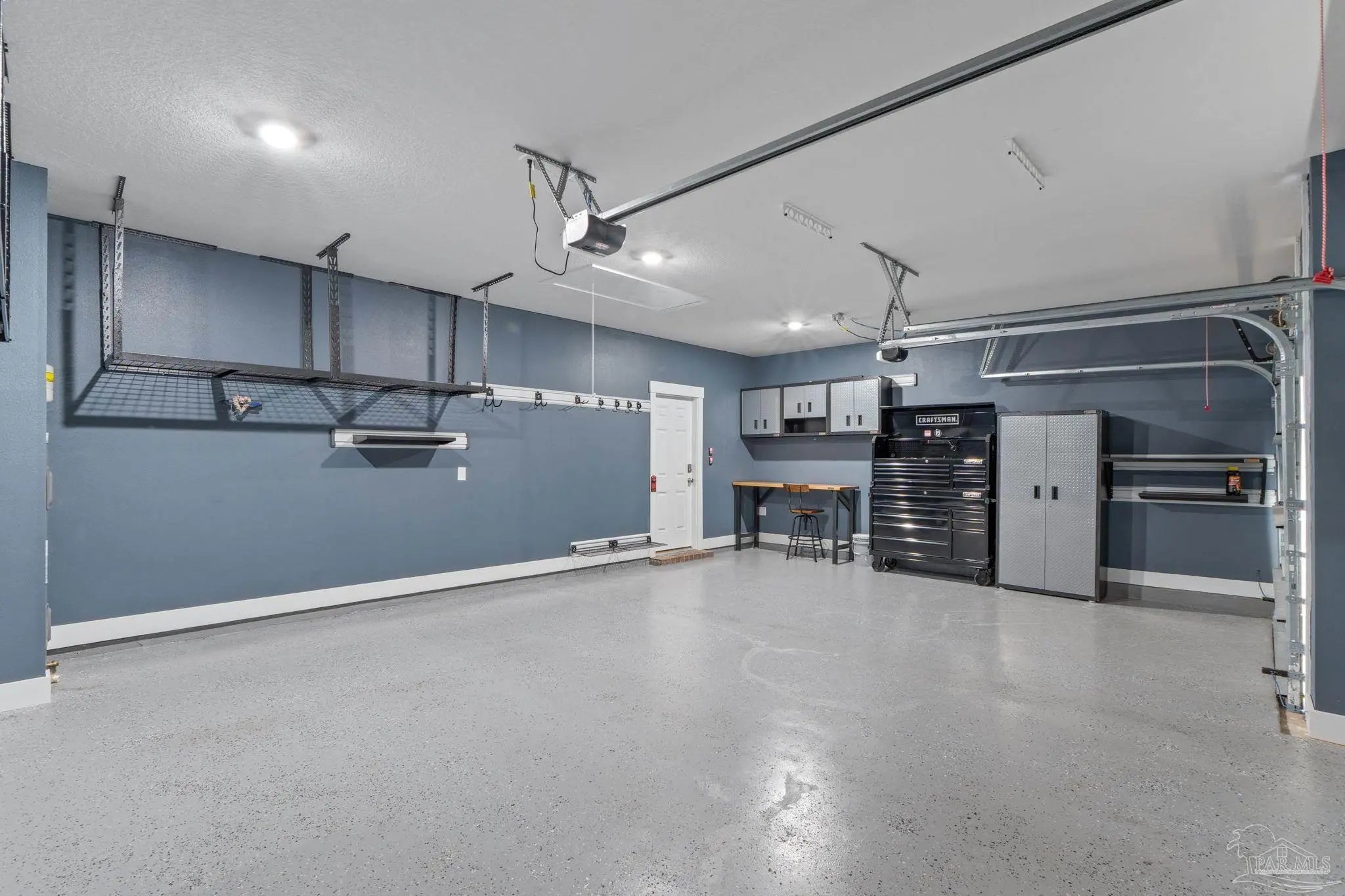 Beautifully maintained and ready to impress - WELCOME HOME!! This gorgeous 4-bedroom, 3-bath home blends fresh, modern style with thoughtful upgrades you won't find in brand new construction. From the moment you arrive, you'll notice the lush, professional landscaping - complete with well and irrigation system. And with a peaceful, natural area directly across the street, you'll enjoy a private, serene view with no homes in front. Step inside to a bright, open layout finished with LVP flooring throughout - no carpet anywhere for a clean, cohesive look. The kitchen showcases a Samsung refrigerator with interactive touch screen, and the Samsung SmartThings washer and dryer, also staying with the home, add the same level of smart convenience to your laundry routine. Step out back to enjoy the extended patio, perfect for morning coffee or evening gatherings.The backyard shed adds extra room for lawn tools, beach gear, or seasonal décor, keeping everything neatly organized. The garage is a true standout, fully finished with epoxy flooring, aluminum attic stairs, Gladiator shelving and cabinets, plus a 15-drawer Craftsman tool chest, all of which convey with the sale. Residents also enjoy the neighborhood community pool, a great place to cool off on a warm Florida day. You will love the easy access to our beautiful Gulf Coast beaches and nearby military bases as well! This move-in-ready home delivers the upgrades you want without the wait-come see for yourself and make 6364 Forest Bay Avenue your new address today!