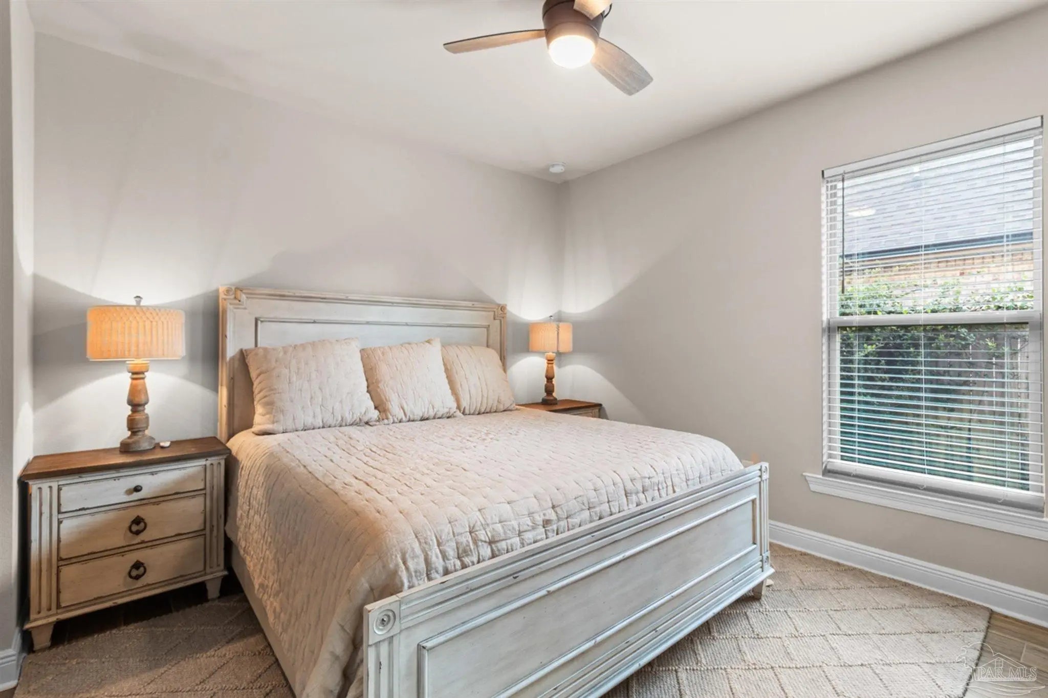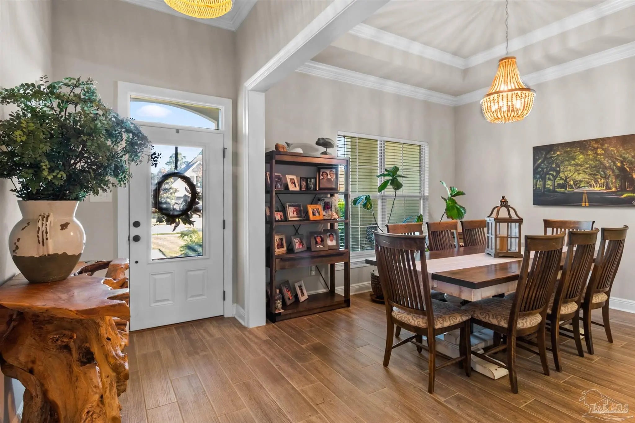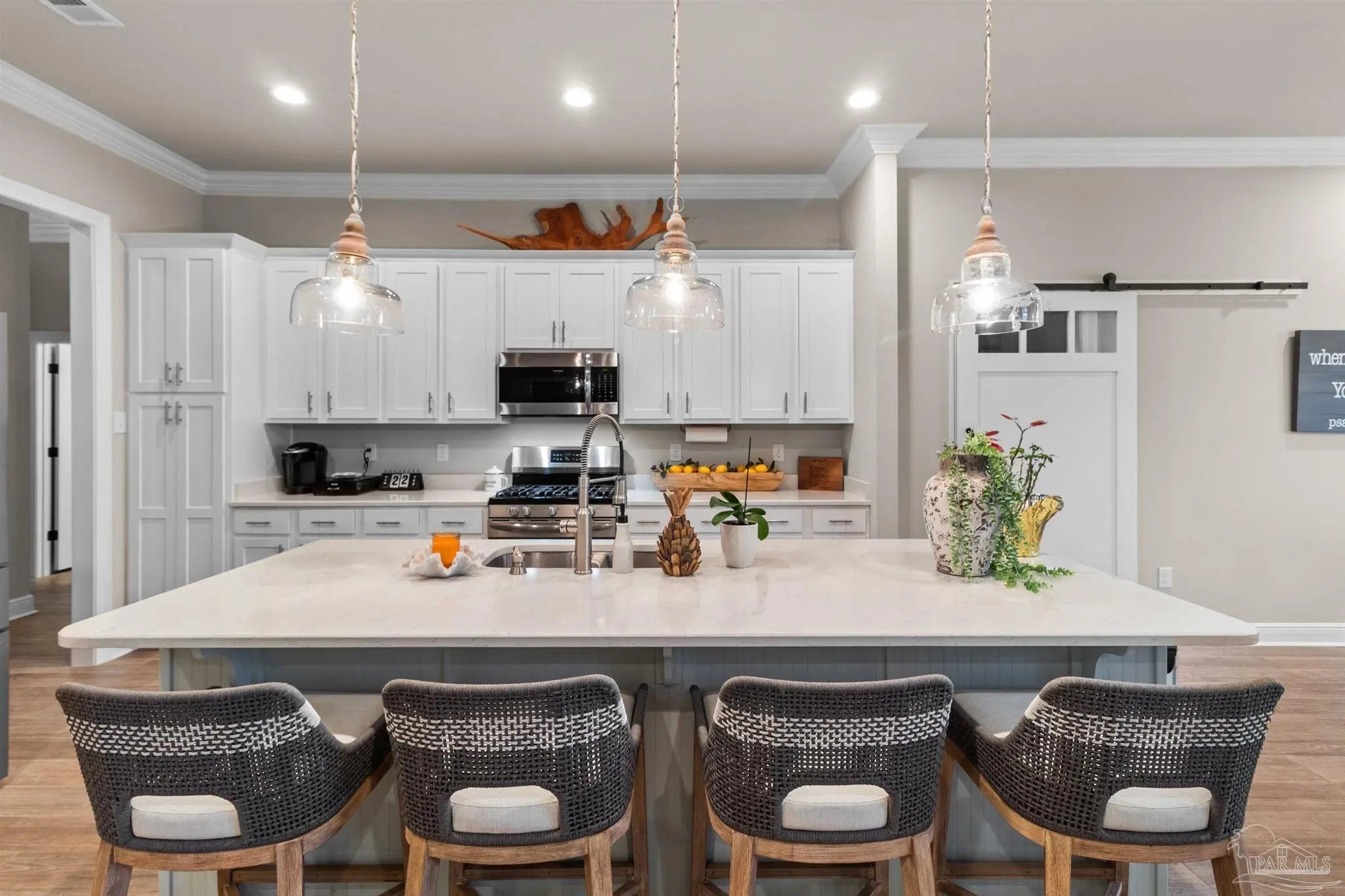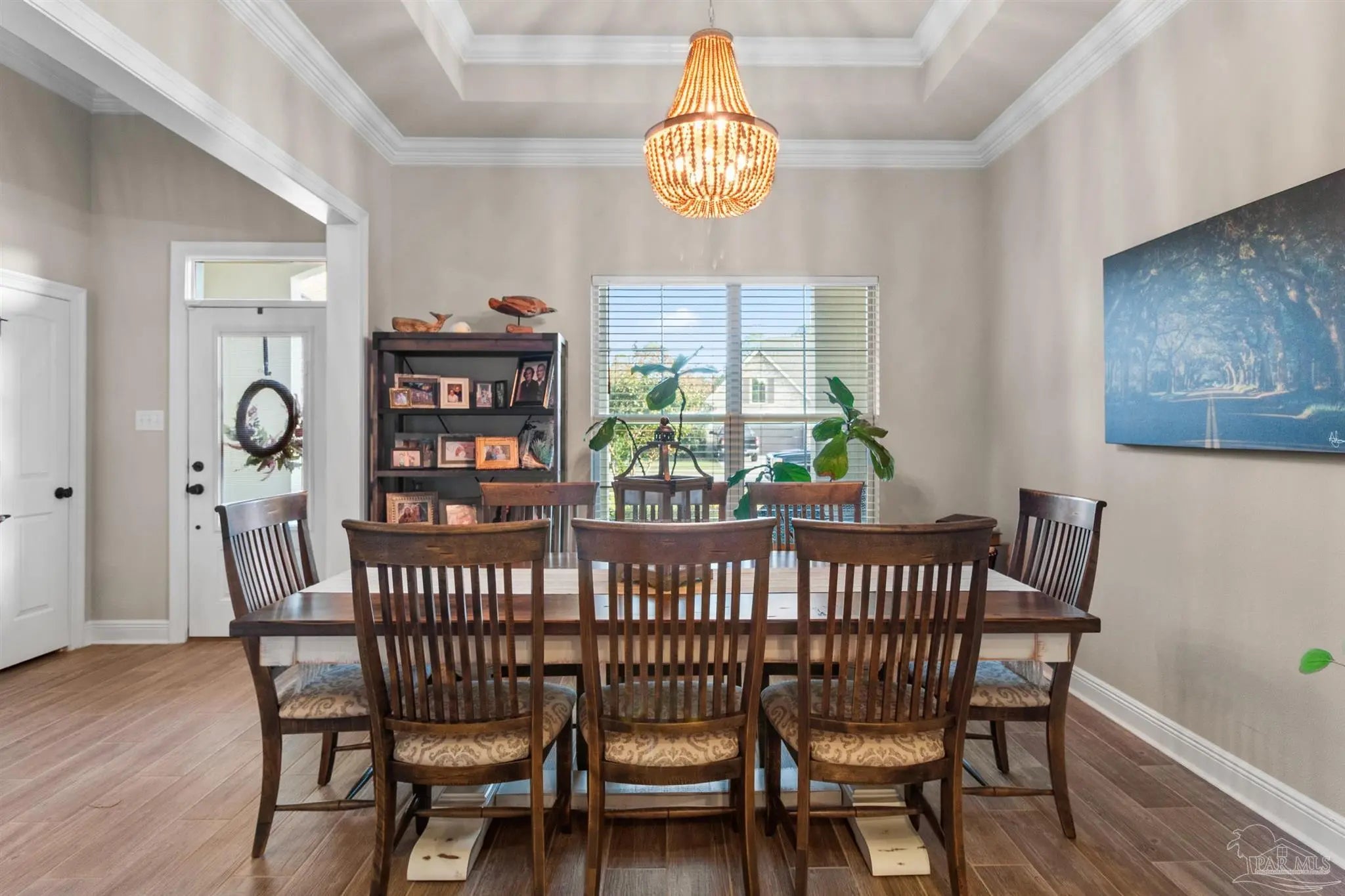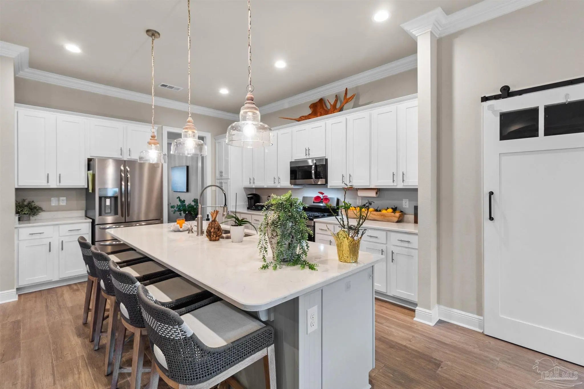 Welcome to your dream home, where every detail has been meticulously crafted for the perfect lifestyle. Nestled in the desirable Waters on Soundside Drive community, this stunning 4-bed, 3-bath residence offers an unparalleled living experience. Enjoy the convenience of sidewalks and underground utilities, all within easy reach of the Sound's serene public boat ramp and nature preserve. This home is designed for effortless luxury, featuring a whole-house generator and a spectacular saltwater/ozone gunite pool with a tranquil waterfall spa. Step inside to discover a flawless interior with beautiful wood-look tile and elegant quartz countertops throughout. The kitchen is a chef's delight, boasting an oversized island and a huge walk-in pantry, while high ceilings with tray accents add an extra touch of sophistication. Modern comforts abound with a smart thermostat, a whole-house water filtration system, and a comprehensive security system. Outside, the lush, tropical landscaping and a screened lanai create your own private oasis. Perfectly situated between the stunning Navarre and Pensacola beaches and just minutes from fantastic shopping and dining, this home truly has everything you could ever wish for.