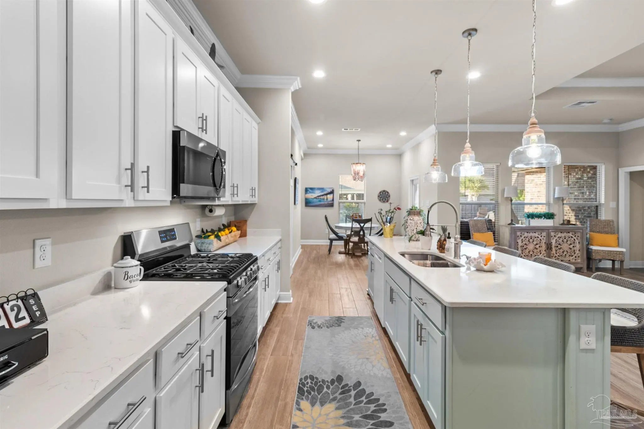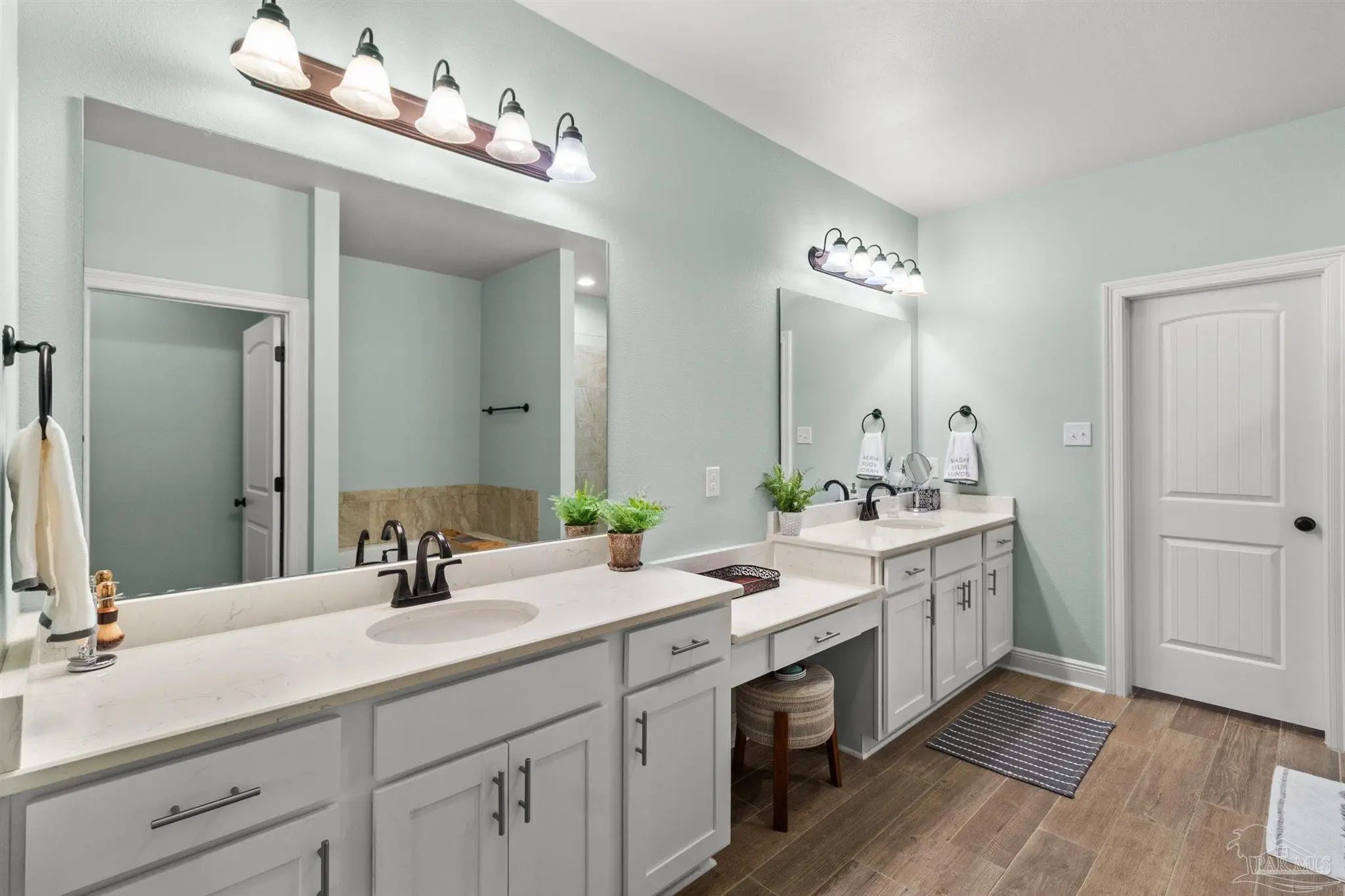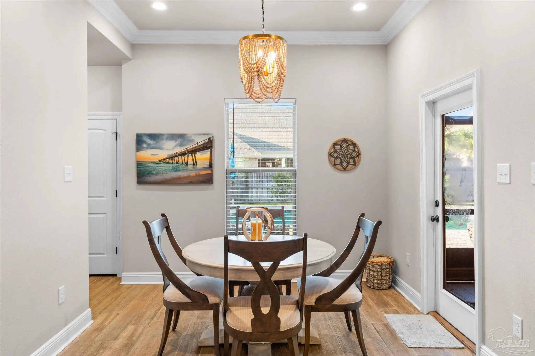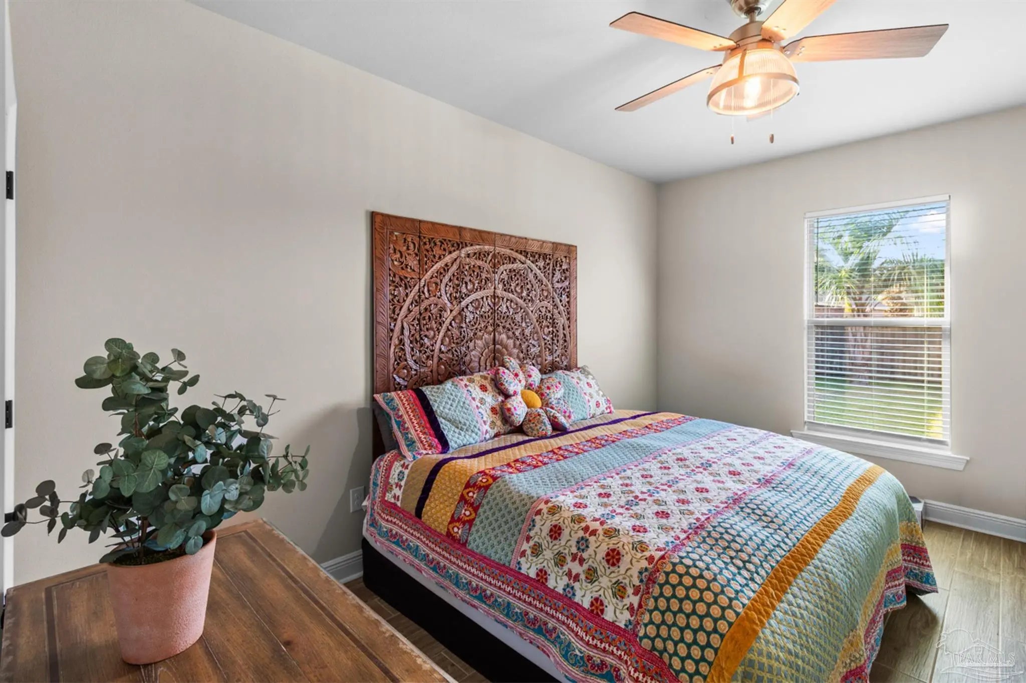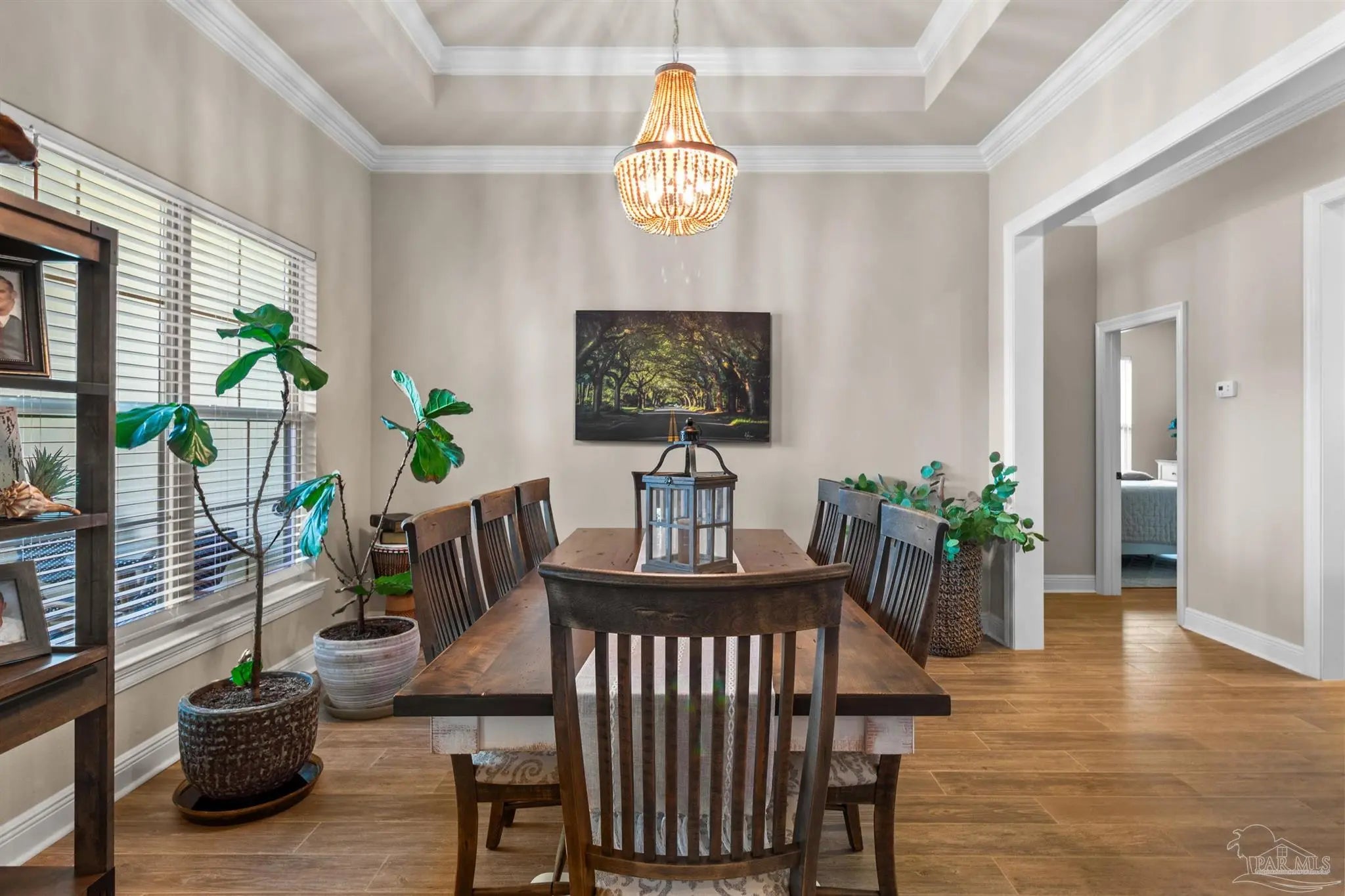 Welcome to your dream home, where every detail has been meticulously crafted for the perfect lifestyle. Nestled in the desirable Waters on Soundside Drive community, this stunning 4-bed, 3-bath residence offers an unparalleled living experience. Enjoy the convenience of sidewalks and underground utilities, all within easy reach of the Sound's serene public boat ramp and nature preserve. This home is designed for effortless luxury, featuring a whole-house generator and a spectacular saltwater/ozone gunite pool with a tranquil waterfall spa. Step inside to discover a flawless interior with beautiful wood-look tile and elegant quartz countertops throughout. The kitchen is a chef's delight, boasting an oversized island and a huge walk-in pantry, while high ceilings with tray accents add an extra touch of sophistication. Modern comforts abound with a smart thermostat, a whole-house water filtration system, and a comprehensive security system. Outside, the lush, tropical landscaping and a screened lanai create your own private oasis. Perfectly situated between the stunning Navarre and Pensacola beaches and just minutes from fantastic shopping and dining, this home truly has everything you could ever wish for.