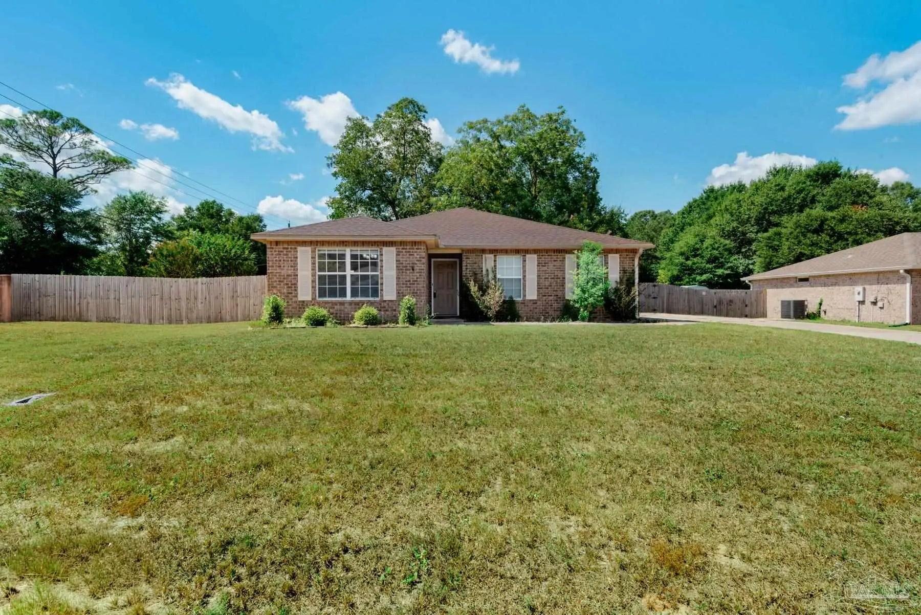 This 4-bedroom, 2-bath brick home is move-in ready with practical updates and a layout that works beautifully for today’s lifestyles. The open floorplan connects the kitchen, dining, and living areas into a central hub for daily life and entertaining, while still offering a sense of privacy for the home’s occupants. Just off the great room, a bonus space feels right for a playroom, home office, or cozy reading nook, with direct access to the covered patio. Bright bedrooms and a thoughtful layout allow for easy living, whether you’re raising a family or need defined spaces for hobbies or work. Recent upgrades bring peace of mind, including a brand-new roof and water heater in 2025, plus newer kitchen appliances just a couple of years old. The large fenced backyard features mature trees that add shade and character, offering plenty of room for pets, play, or the outdoor oasis you envision. Located in a stable neighborhood with highly regarded schools, this home offers a welcoming blend of comfort, convenience, and community in the heart of Cantonment.