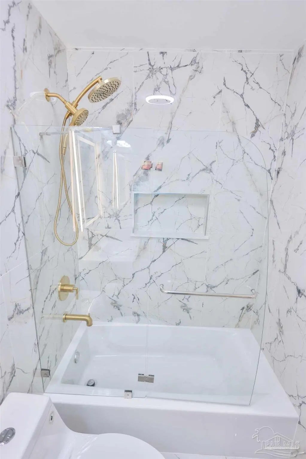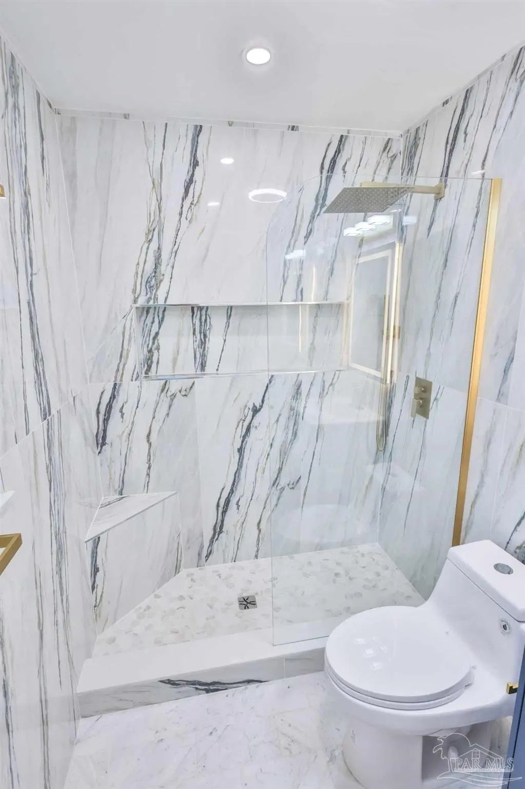 Welcome to your fully renovated dream home in Scenic Heights! No HOA! This stunning 3-bedroom, 2-bath home features an open floor plan, brand-new flooring, designer light fixtures, and chandelier ceiling fans with remote & WiFi control. The luxury kitchen boasts high-end cabinets, quartz countertops, a unique shell backsplash, modern range hood, new appliances, and elegant chandeliers—perfect for entertaining. Both bathrooms are spa-inspired, with floor-to-ceiling matching tile, Bluetooth exhaust fans with speakers, and customizable lighting you can control from your phone. A spacious bonus room with fireplace and private entrance offers endless possibilities: man cave, media/game room, studio apartment, or in-law suite. The large laundry room includes great storage and pantry space. Step outside to a large covered deck with built-in seating and ceiling fan—perfect for entertaining or simply relaxing. The generous backyard offers space to add a pool, plus a large metal shed for storage. Updates include a brand- New Roof to be install. Located in one of Pensacola’s best neighborhoods—close to schools, hospitals, shopping, and downtown—this home is completely move-in ready. Schedule your showing today!