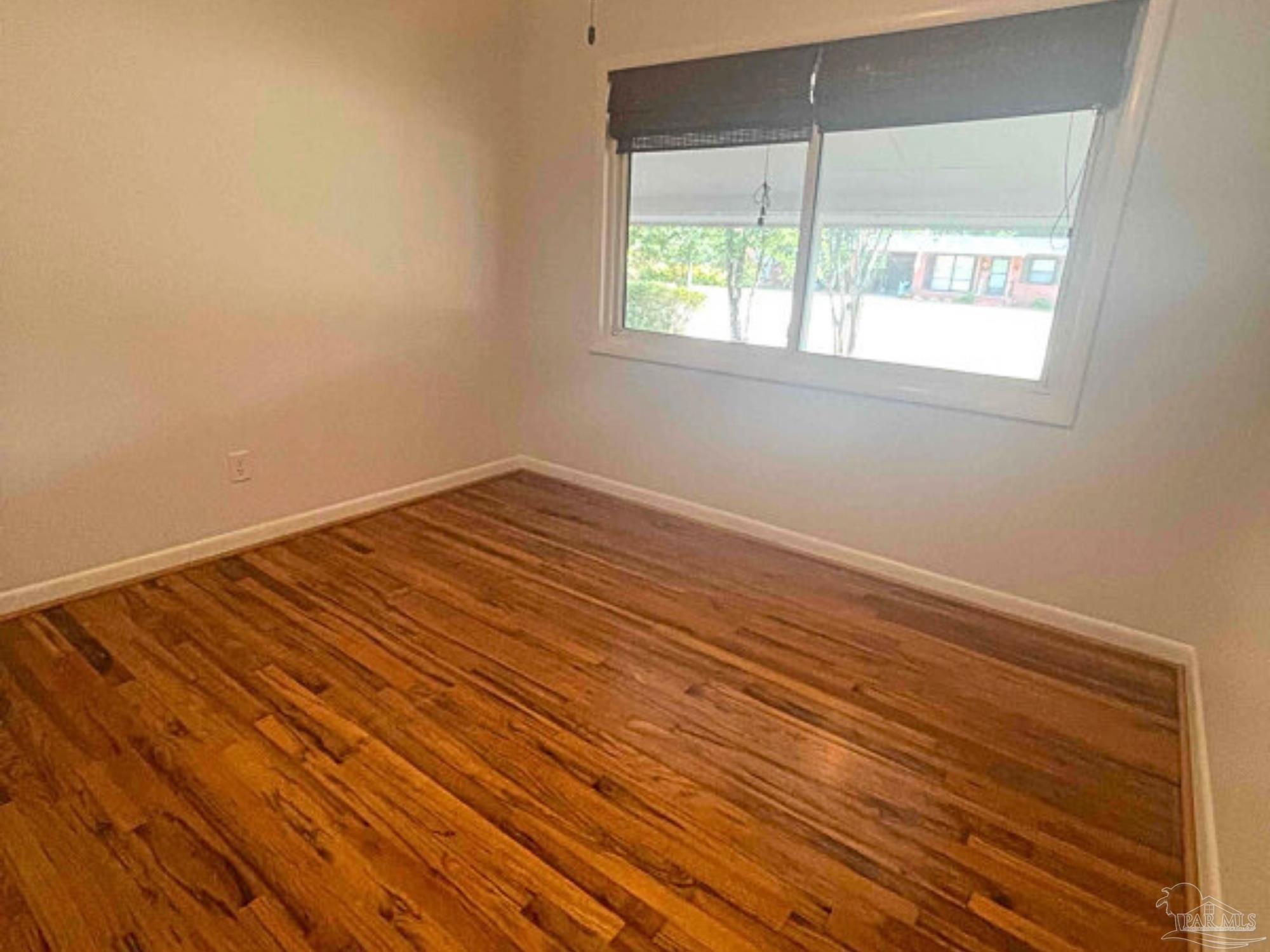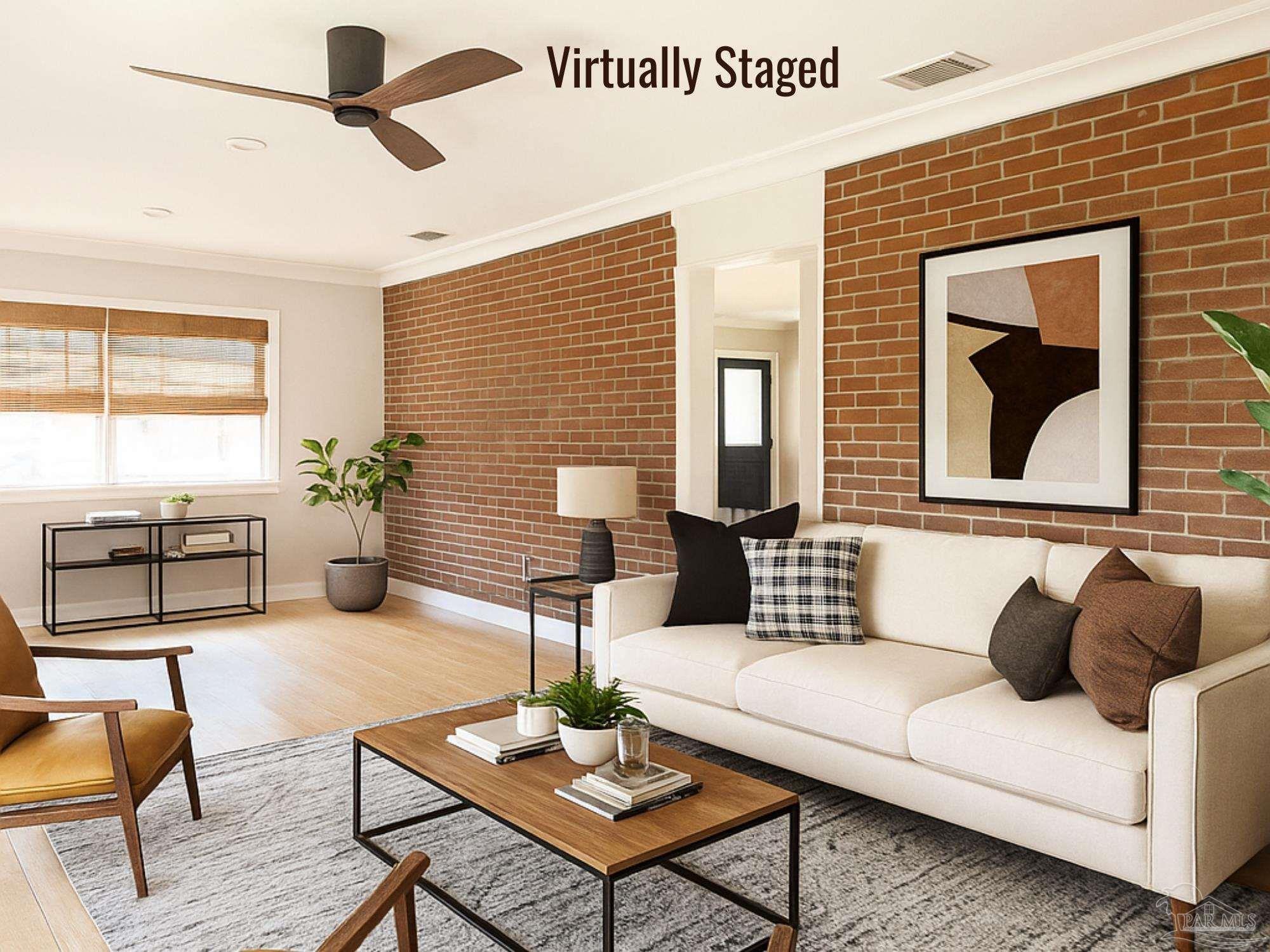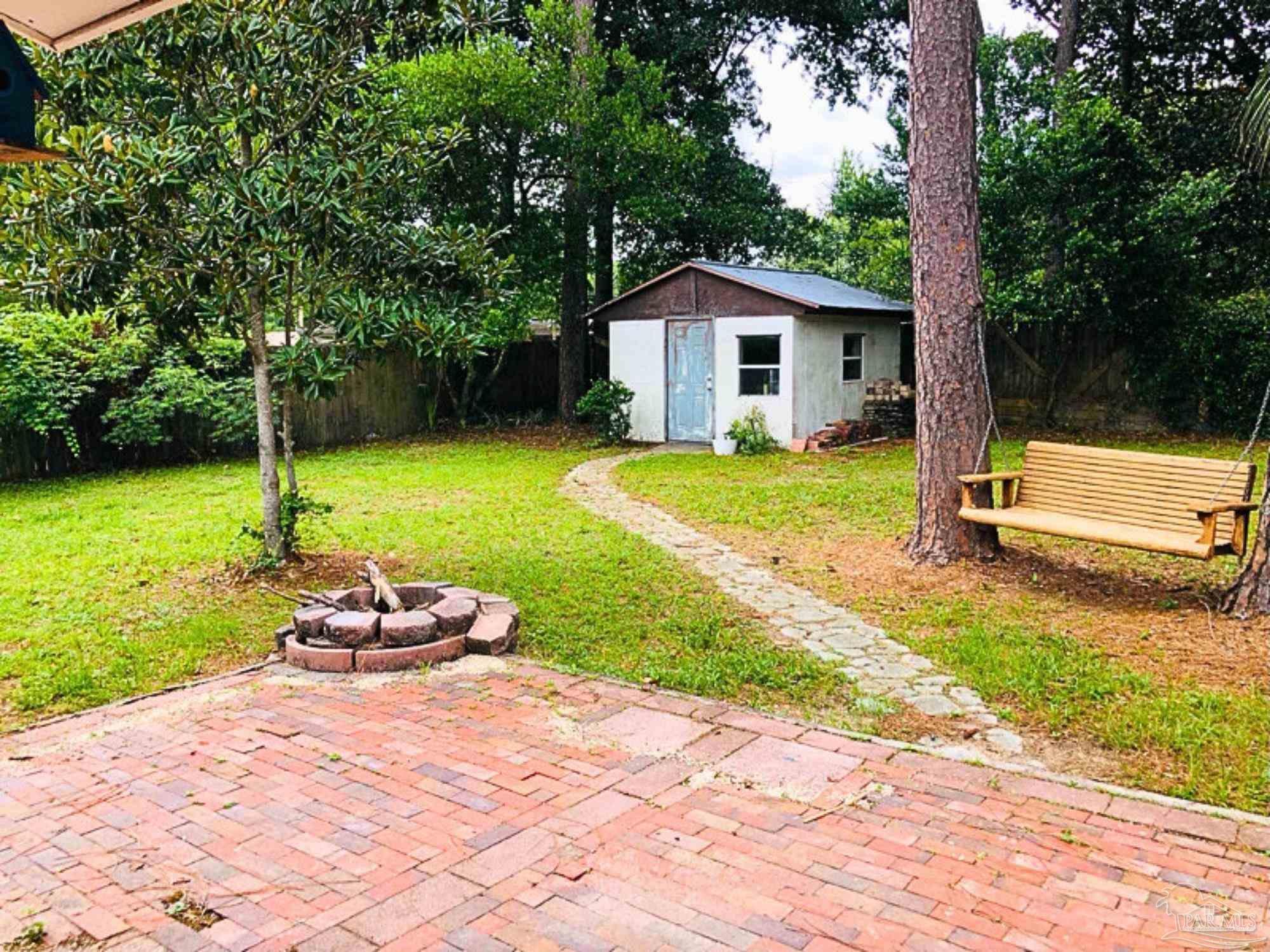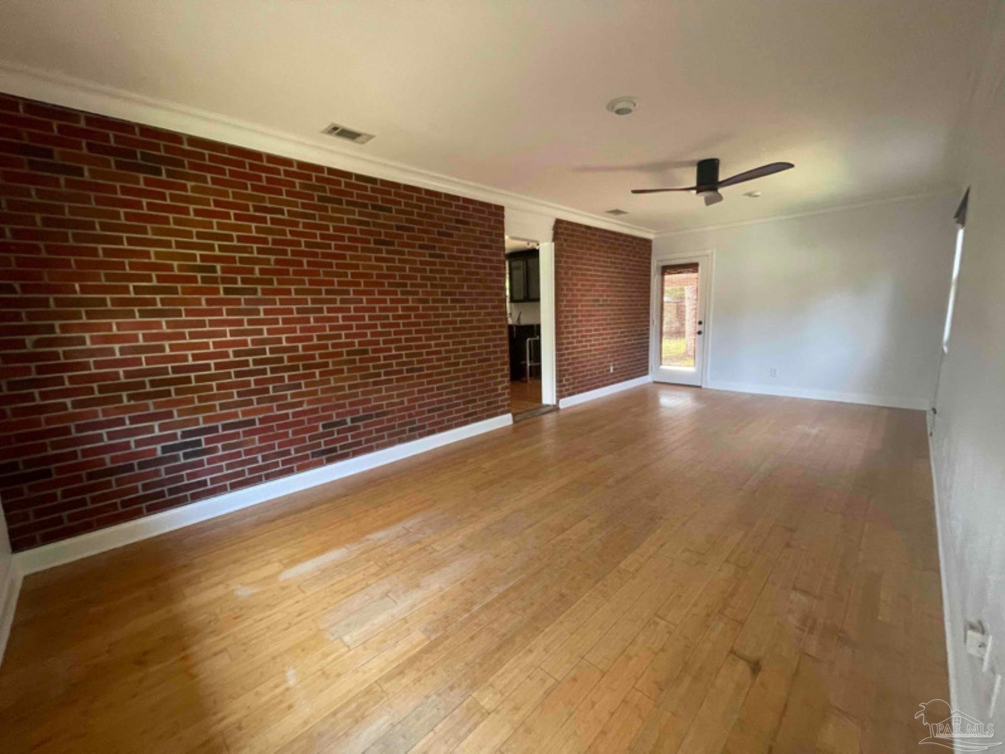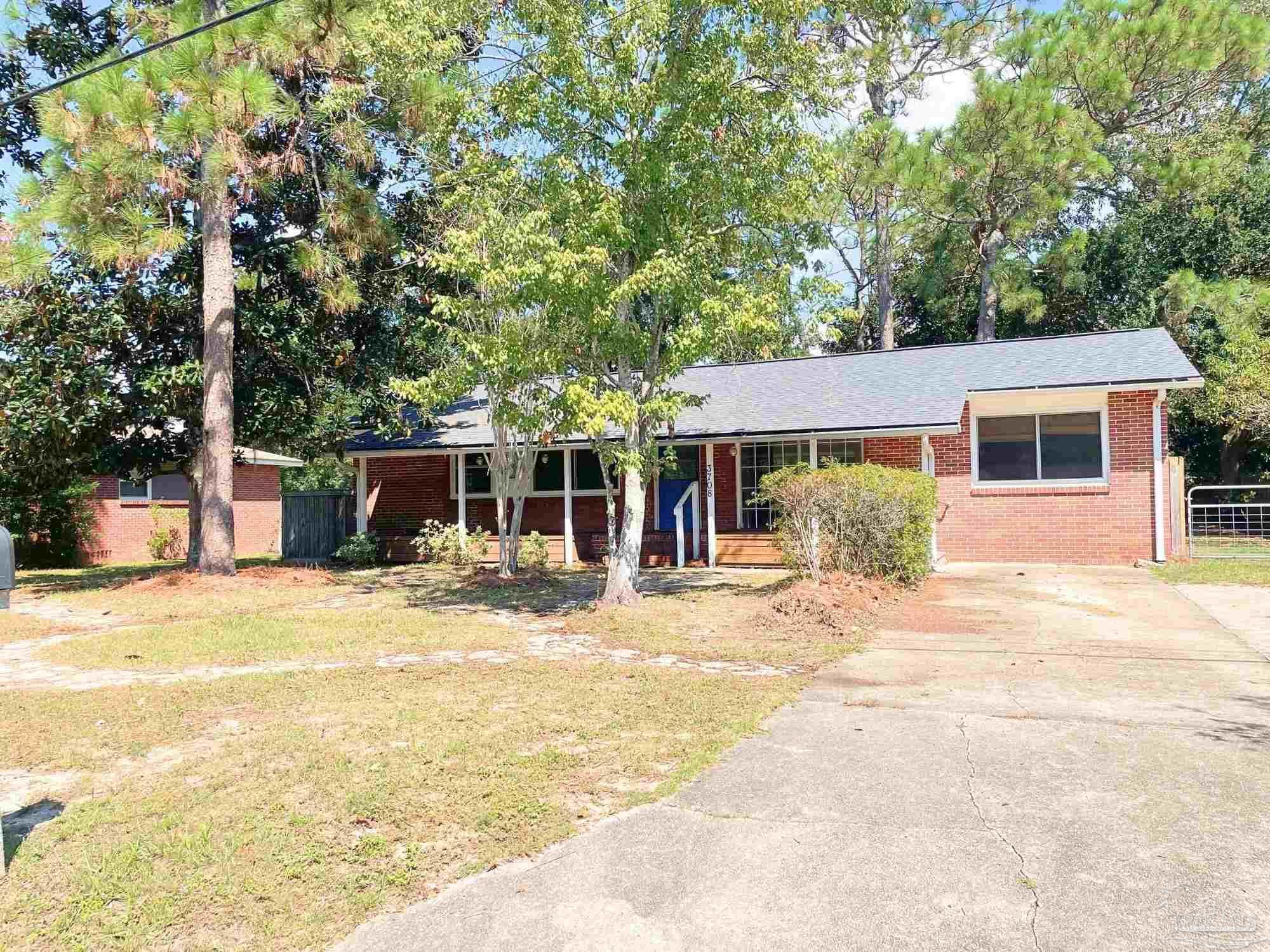 Welcome to this updated Scenic Heights ranch home, where mid-century character meets tasteful modern touches. From the moment you arrive, the home welcomes you with charm: a covered front porch accented by a floor-to-ceiling window that floods the interior with natural light. Inside, you’ll find the warmth of original oak hardwood floors, an exposed brick accent wall, and two separate living room spaces, ideal for both entertaining and everyday comfort. The kitchen is the true heart of the home, thoughtfully designed for those who love to cook, featuring abundant cabinet storage, heatproof granite countertops with a hightop bar, and an adjoining dining nook perfect for casual meals or morning coffee. A downdraft stove with a cast-iron flat top adds both function and style. Step outside into your private, fully fenced backyard retreat. Evenings can be spent gathered around the fire pit beneath two grand pines, swaying on the porch swing, or enjoying the grapevines and established orange tree that dot the landscape. Landscape maintenance is not included but can be added for an additional monthly fee. This home is located in the desirable Scenic Heights neighborhood, offering easy access to parks, a recreation complex, top-rated schools, shopping, restaurants, hospitals, and Pensacola International Airport. And with both historic downtown Pensacola and the sugar-white sands of Pensacola Beach just 15 minutes away, you’ll enjoy the best of coastal living.