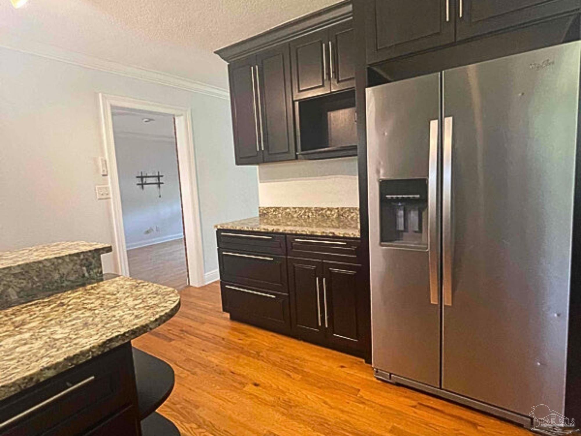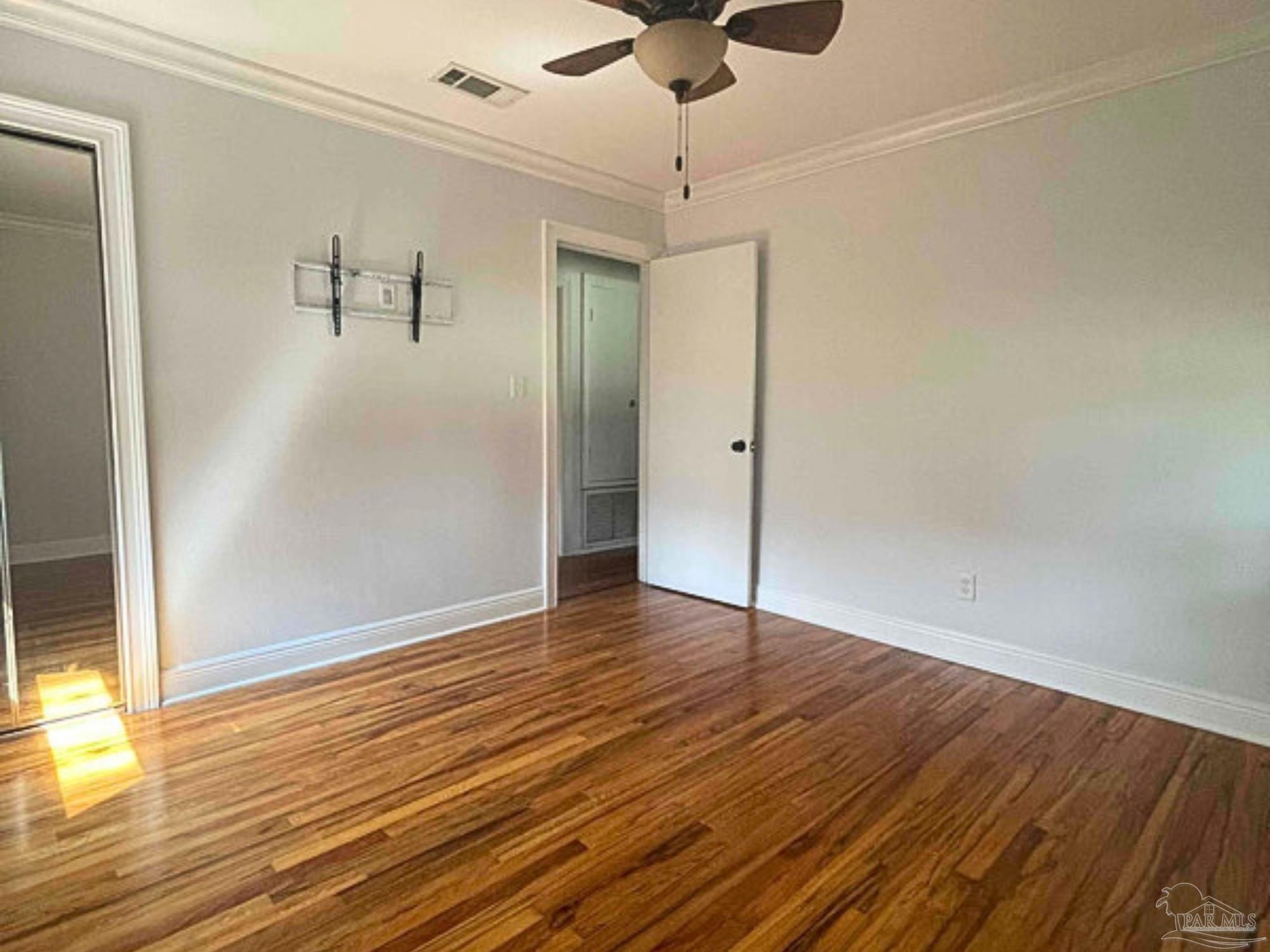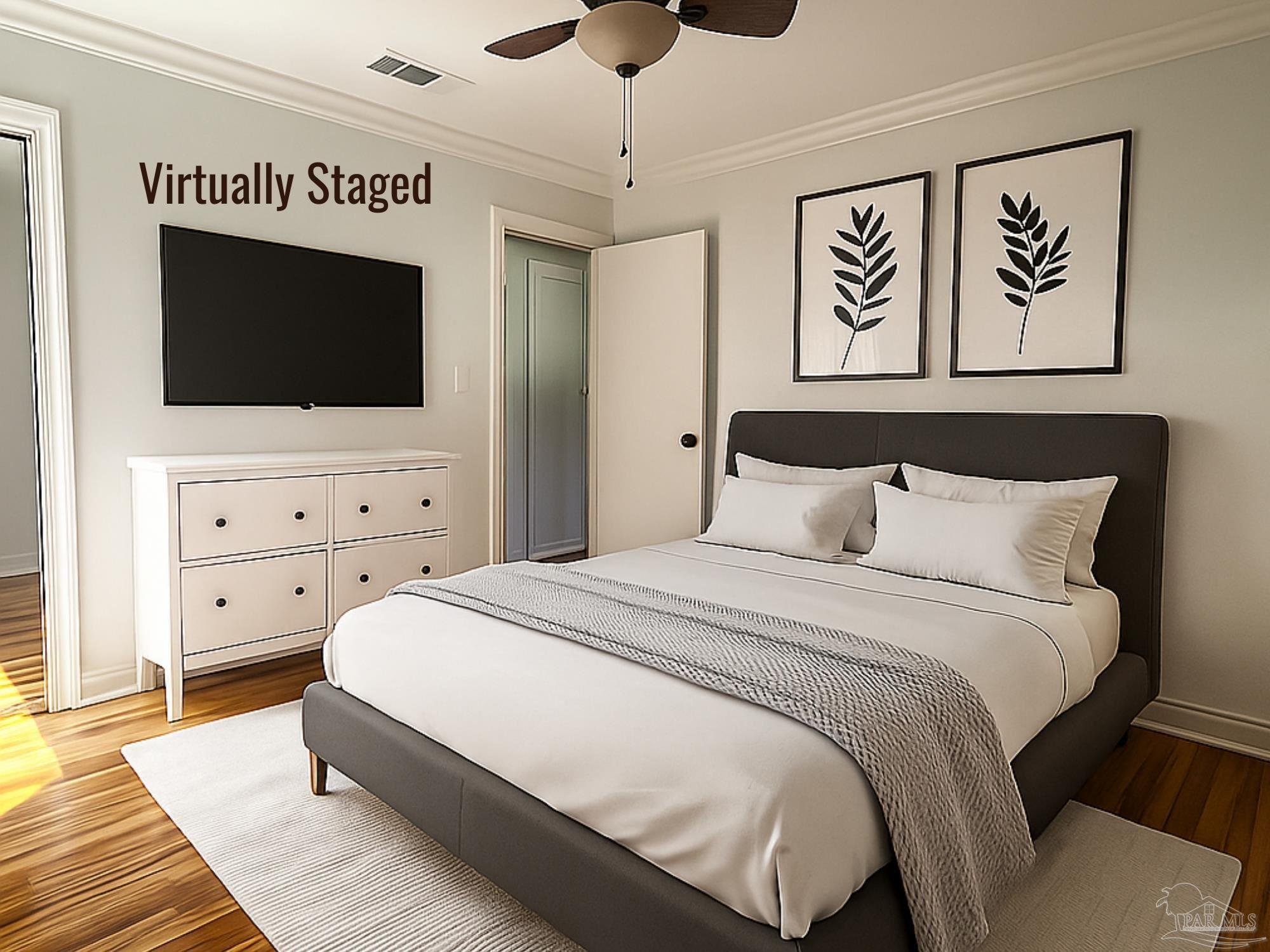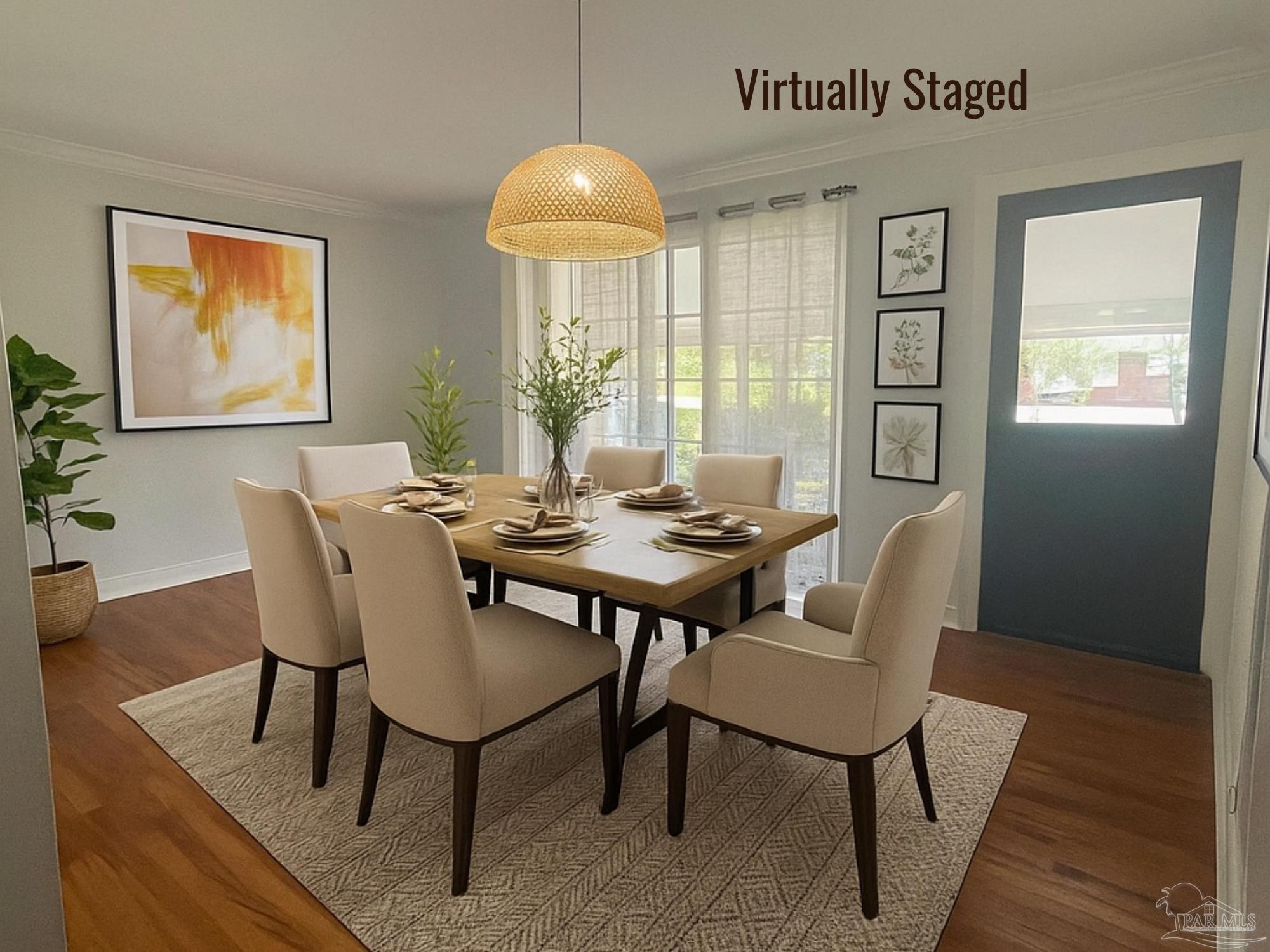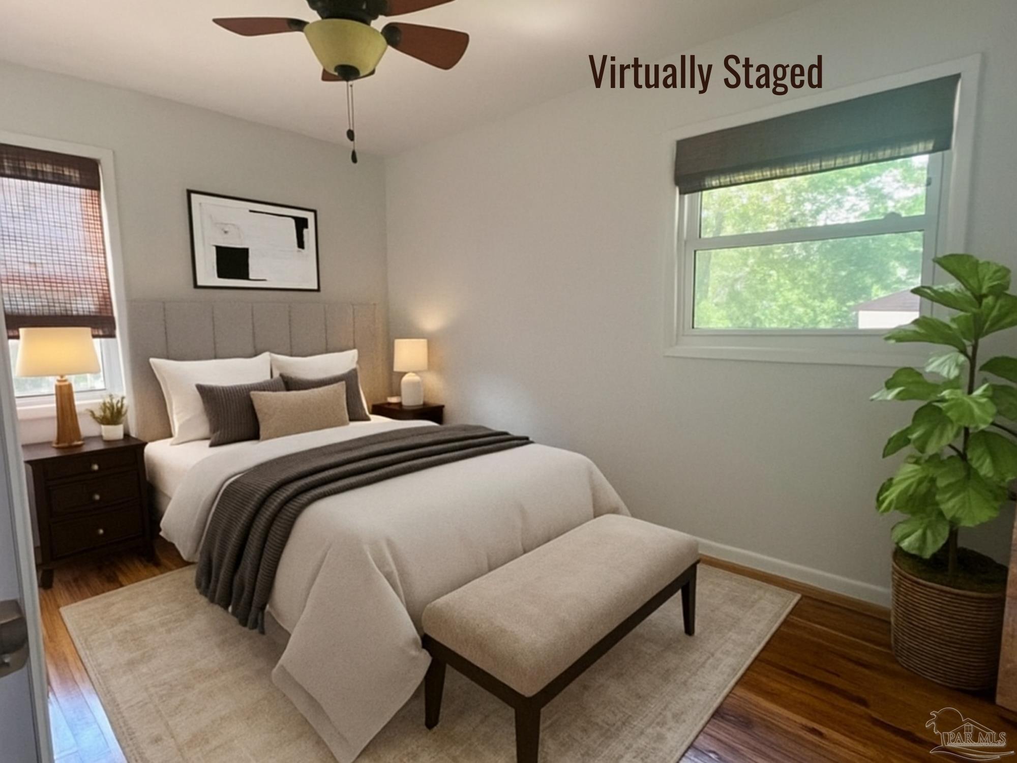 Welcome to this updated Scenic Heights ranch home, where mid-century character meets tasteful modern touches. From the moment you arrive, the home welcomes you with charm: a covered front porch accented by a floor-to-ceiling window that floods the interior with natural light. Inside, you’ll find the warmth of original oak hardwood floors, an exposed brick accent wall, and two separate living room spaces, ideal for both entertaining and everyday comfort. The kitchen is the true heart of the home, thoughtfully designed for those who love to cook, featuring abundant cabinet storage, heatproof granite countertops with a hightop bar, and an adjoining dining nook perfect for casual meals or morning coffee. A downdraft stove with a cast-iron flat top adds both function and style. Step outside into your private, fully fenced backyard retreat. Evenings can be spent gathered around the fire pit beneath two grand pines, swaying on the porch swing, or enjoying the grapevines and established orange tree that dot the landscape. Landscape maintenance is not included but can be added for an additional monthly fee. This home is located in the desirable Scenic Heights neighborhood, offering easy access to parks, a recreation complex, top-rated schools, shopping, restaurants, hospitals, and Pensacola International Airport. And with both historic downtown Pensacola and the sugar-white sands of Pensacola Beach just 15 minutes away, you’ll enjoy the best of coastal living.