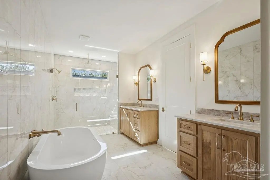 MODERN SOUTHERN ELEGANCE meets timeless craftsmanship in this custom-built retreat set on a generous, private wooded homesite. From the moment you step inside, you’ll sense the difference. The open-concept living area showcases a coffered ceiling and a striking brick fireplace with a custom wood mantel. Wide-plank floors and a soft, nude-toned palette create a serene backdrop that complements any décor. French doors lead to a covered porch with a wood-burning fireplace—perfect for year-round entertaining. *The heart of the home is a chef’s kitchen designed for both beauty and function. Creamy cabinetry with soft-close drawers offers smart storage—including a pantry with pull-out drawers for easy access. Quartz countertops, a gas range crowned by a pot filler, and a built-in wine cooler elevate everyday cooking. A separate prep area features its own sink, keeping the main island clutter-free. Just off the kitchen, a thoughtfully designed laundry room adds floating shelves for display and additional storage. *The owner’s suite offers peaceful views and a luxurious retreat: a generous walk-in closet and a large, light-and-breezy bathroom featuring a freestanding soaking tub and a zero-entry spa shower with a rain shower head and shower bench. Secondary bedrooms are generously sized and thoughtfully separated. Thoughtful design extends outside: a convenient entry from the covered porch leads across the hall to a powder room—perfect for future pool guests. *Nestled within the NatureWalk at Pond Creek community, this home is surrounded by lush pines, scattered oaks, and natural creeks. Large wooded lots and beautifully landscaped grounds create a country-like atmosphere while keeping you close to Pace, Milton, and Pensacola. Residents enjoy privacy, tranquil surroundings, and a strong sense of community that makes NatureWalk one of the most desirable neighborhoods in the area.