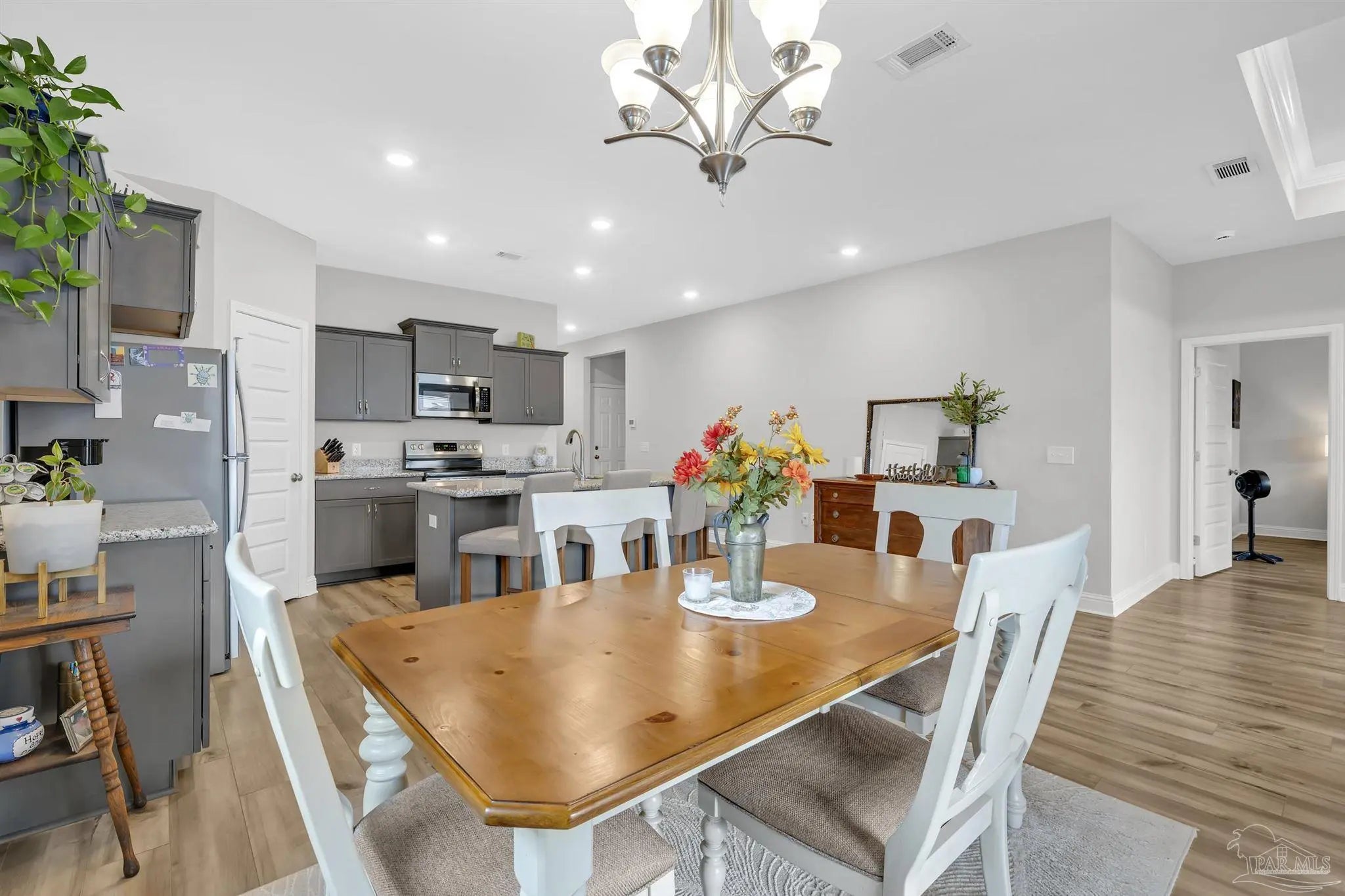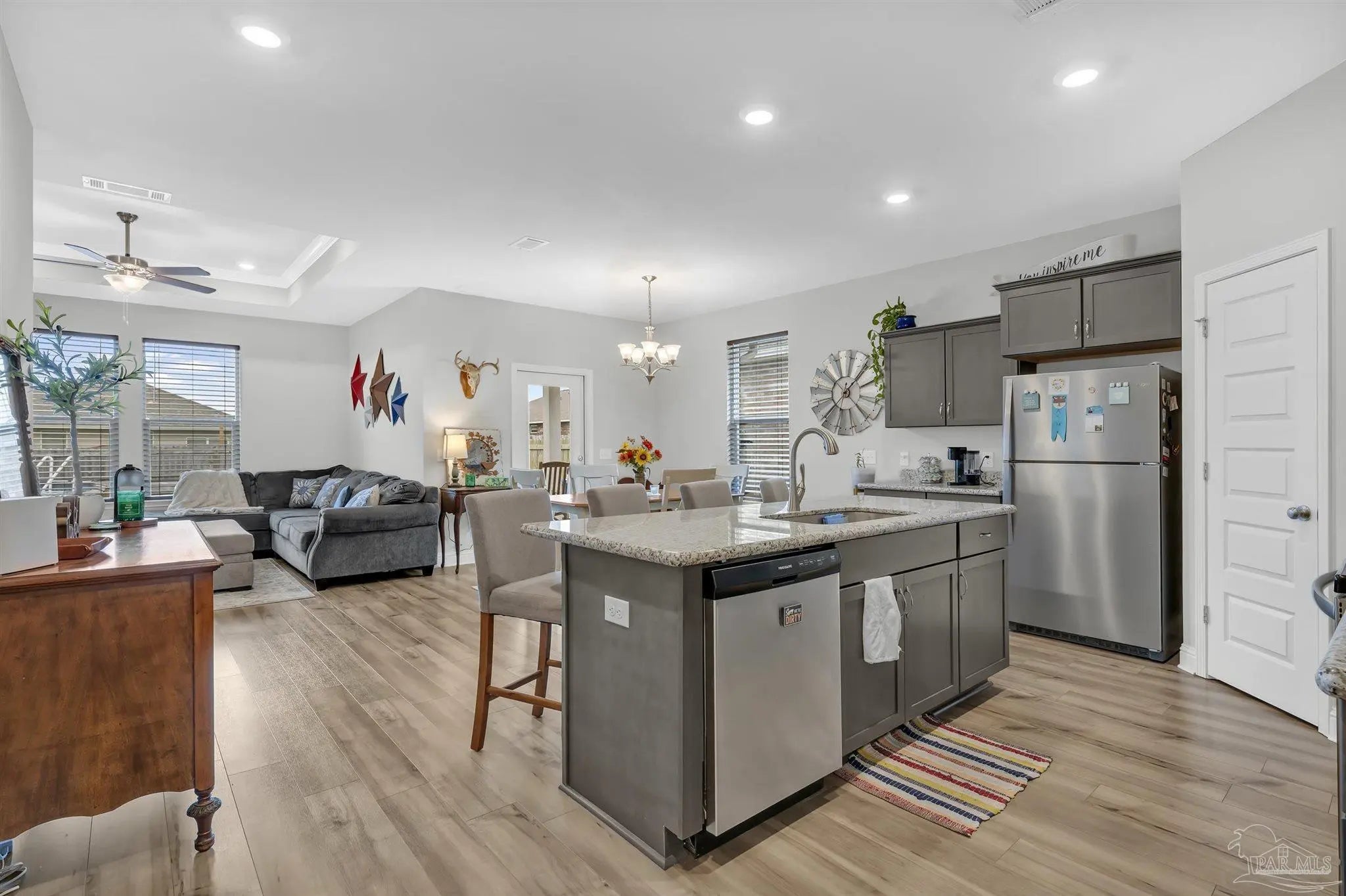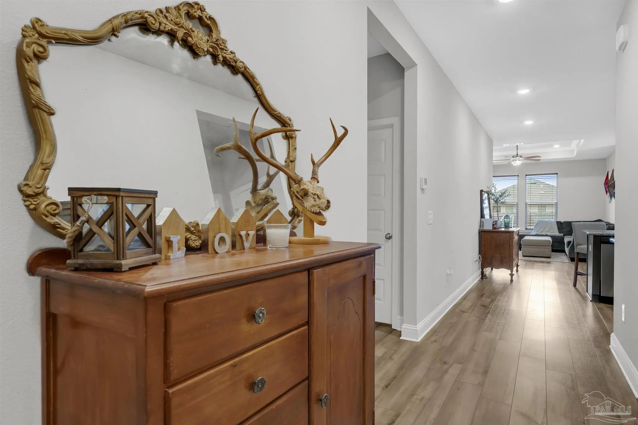 Welcome to this well-maintained 3 bedroom, 2 bath home with a 2-car garage and private pool. This property blends comfort and functionality with thoughtful design throughout. The exterior features four sides of brick, a welcoming front porch, and a backyard oasis with a pool that’s perfect for relaxing or entertaining. Inside, you’ll find 9-foot ceilings, with tray ceilings and crown molding enhancing both the family room and the primary suite. The open-concept layout creates a bright, spacious feel. The kitchen is equipped with stainless steel appliances, including a range, built-in microwave, and dishwasher. Flooring includes luxury vinyl plank throughout the main living areas and primary suite, with carpet only in the two guest bedrooms. Conveniently located near military bases, beaches, downtown Pensacola, and hospitals, this home offers easy access to everything the Gulf Coast has to offer. Don’t miss your chance to make this move-in ready home with a pool yours—schedule your private tour today!
