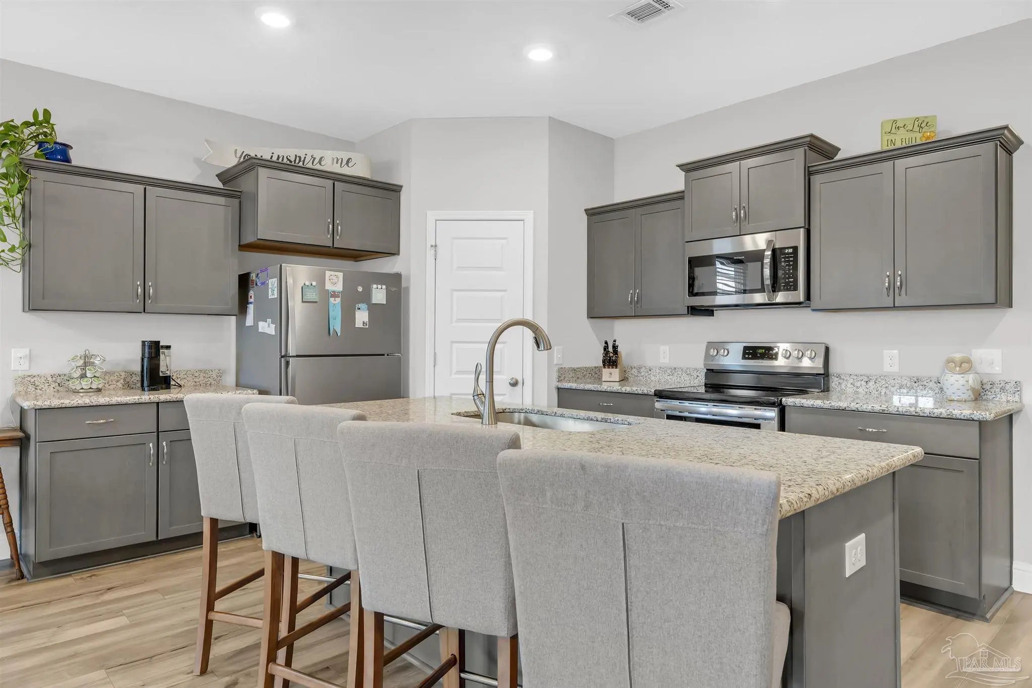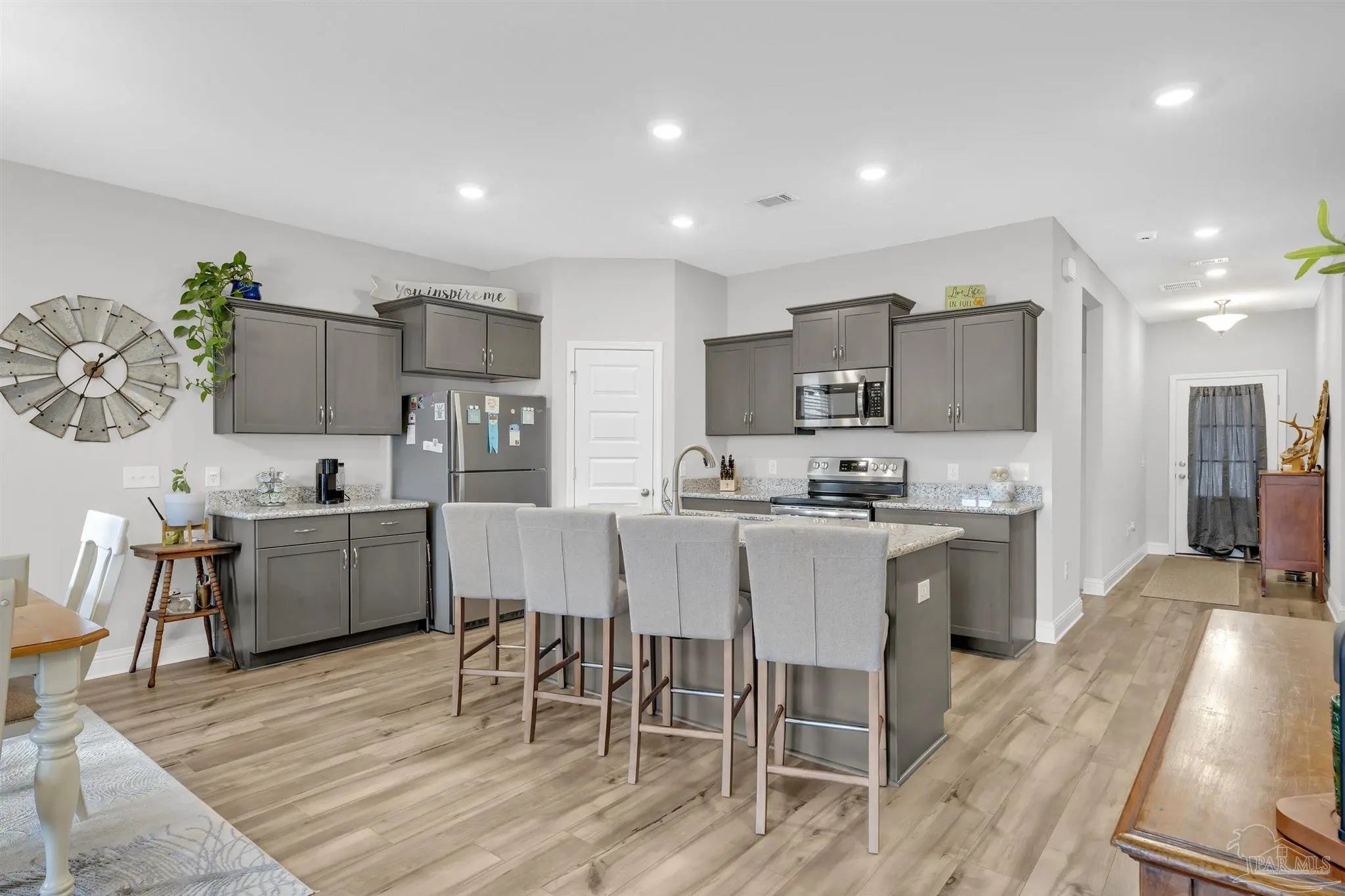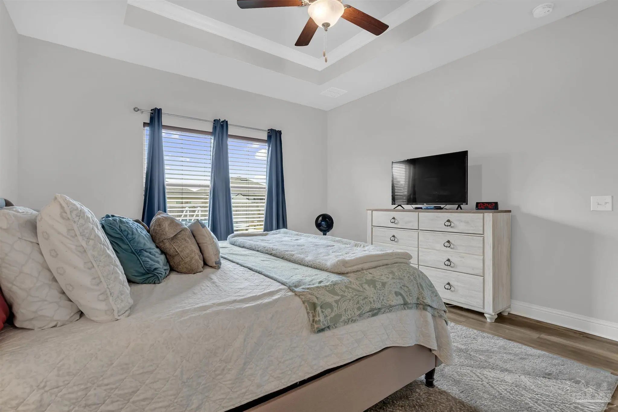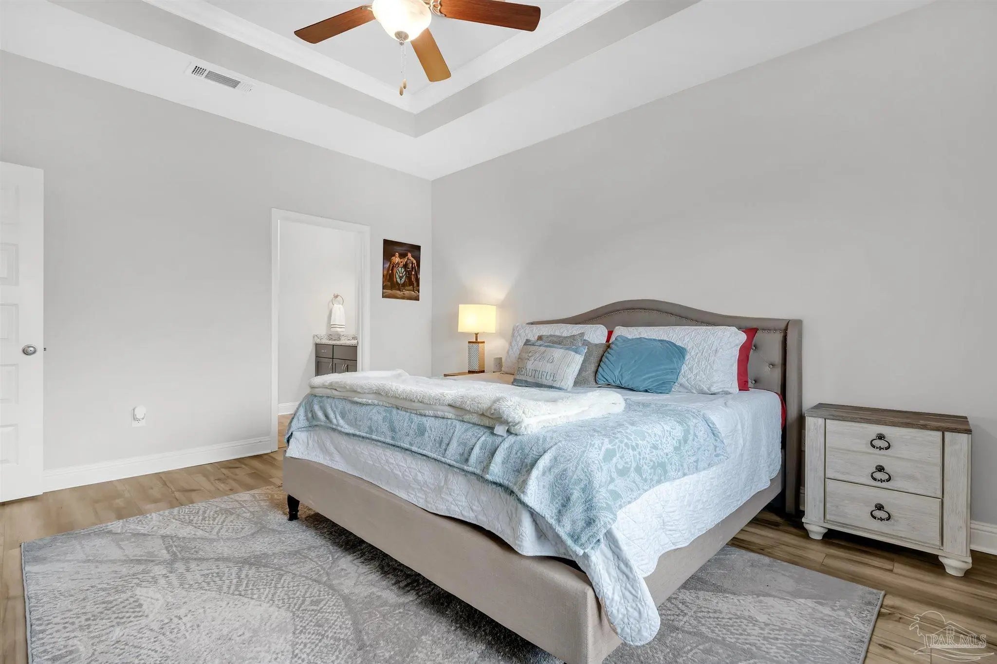 Welcome to this well-maintained 3 bedroom, 2 bath home with a 2-car garage and private pool. This property blends comfort and functionality with thoughtful design throughout. The exterior features four sides of brick, a welcoming front porch, and a backyard oasis with a pool that’s perfect for relaxing or entertaining. Inside, you’ll find 9-foot ceilings, with tray ceilings and crown molding enhancing both the family room and the primary suite. The open-concept layout creates a bright, spacious feel. The kitchen is equipped with stainless steel appliances, including a range, built-in microwave, and dishwasher. Flooring includes luxury vinyl plank throughout the main living areas and primary suite, with carpet only in the two guest bedrooms. Conveniently located near military bases, beaches, downtown Pensacola, and hospitals, this home offers easy access to everything the Gulf Coast has to offer. Don’t miss your chance to make this move-in ready home with a pool yours—schedule your private tour today!