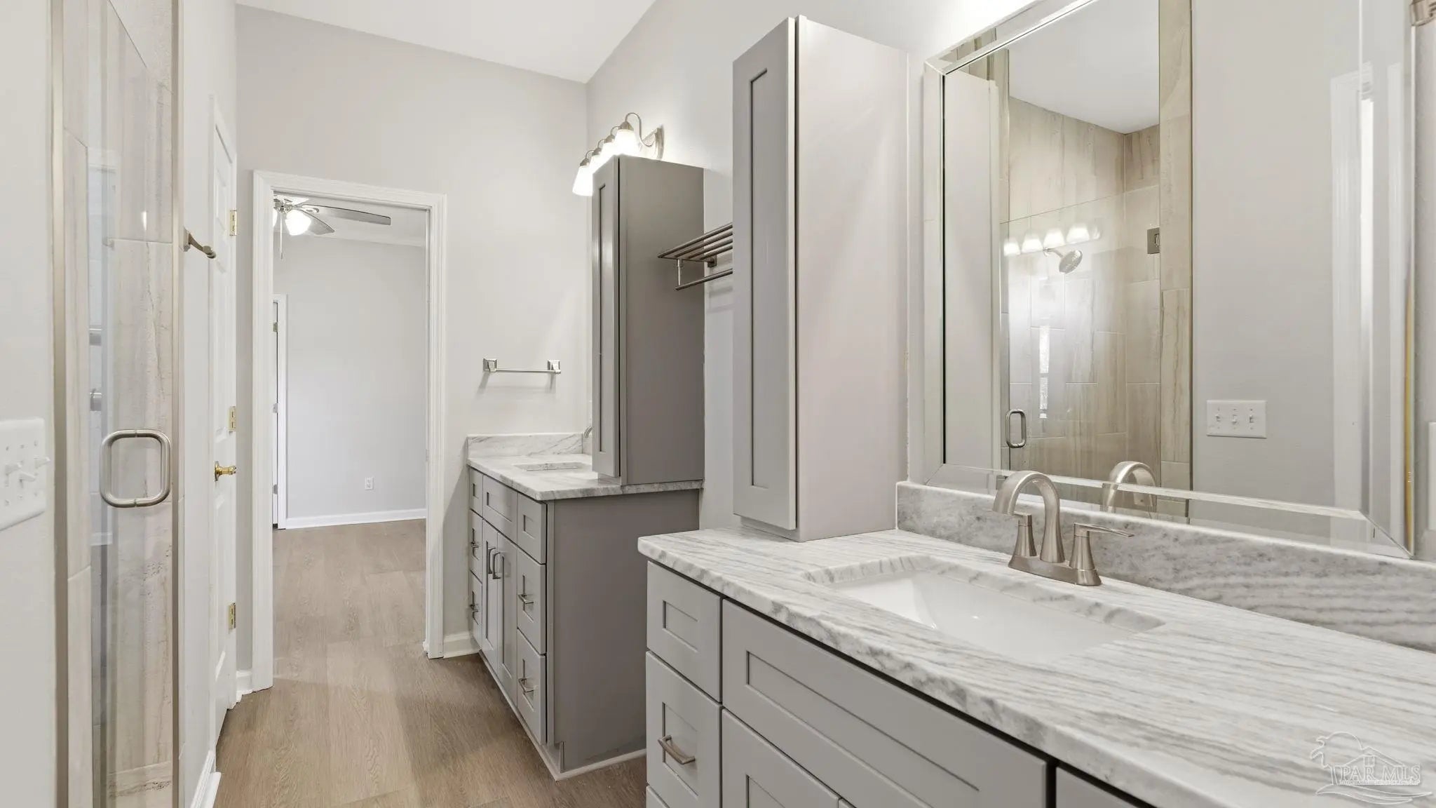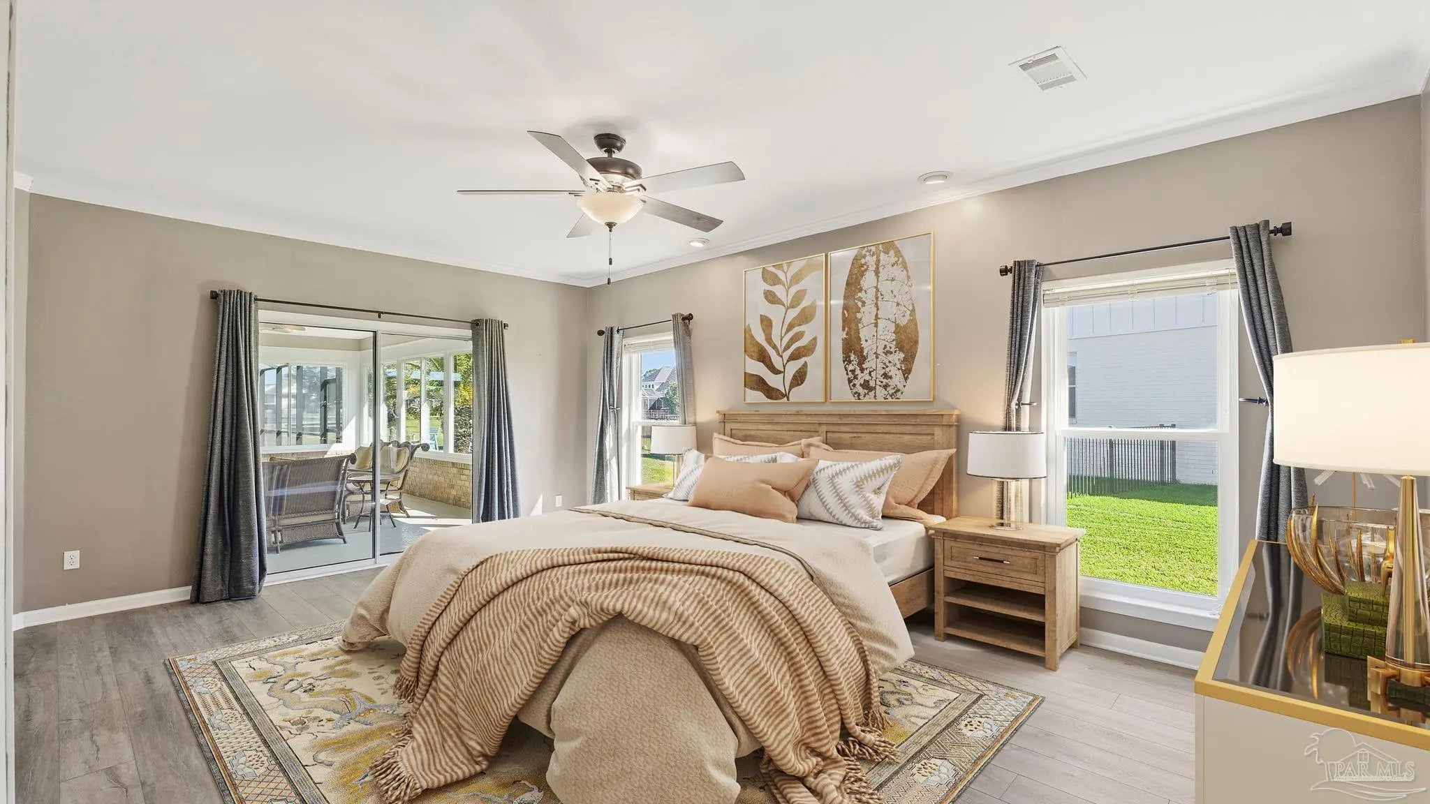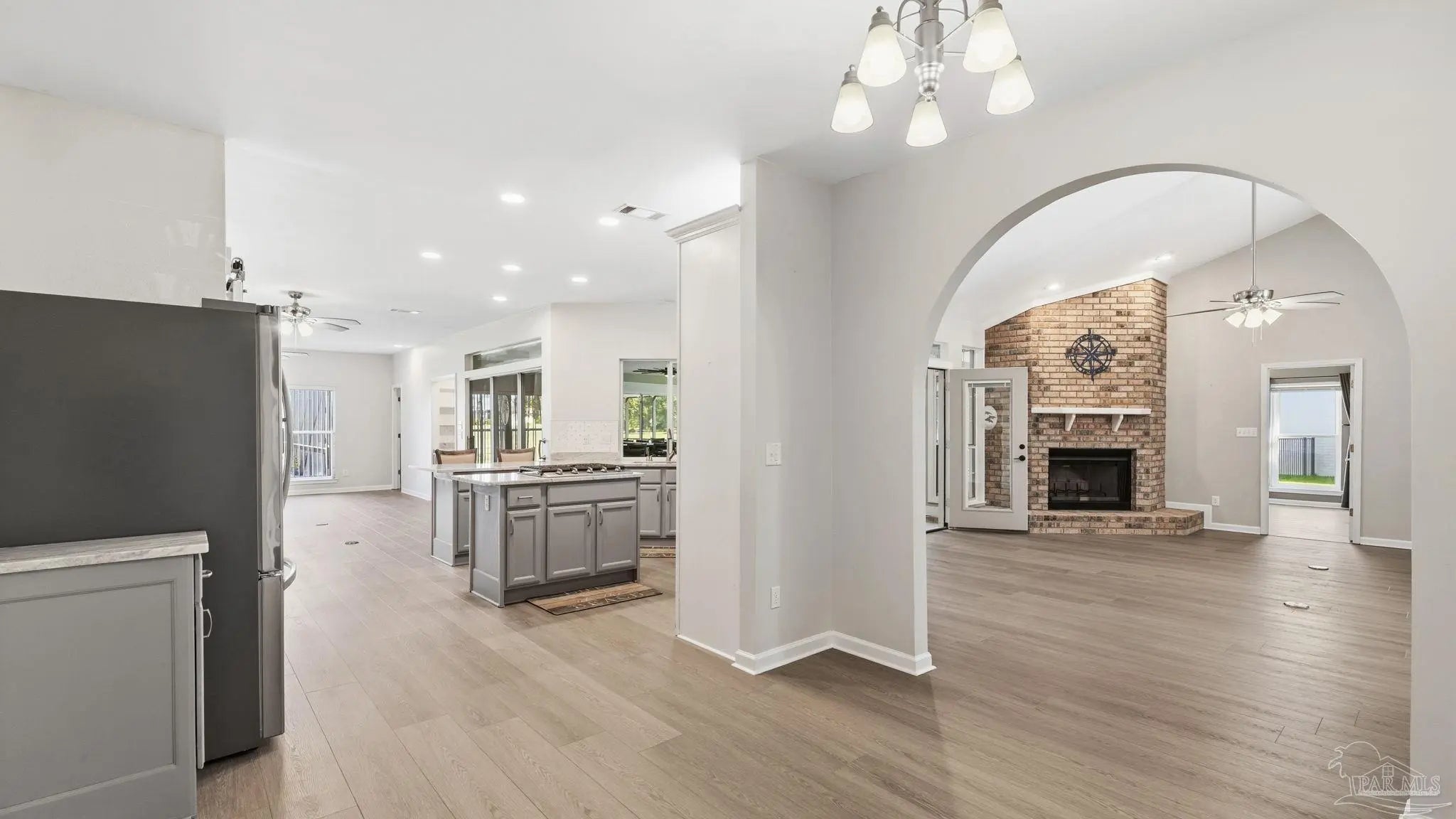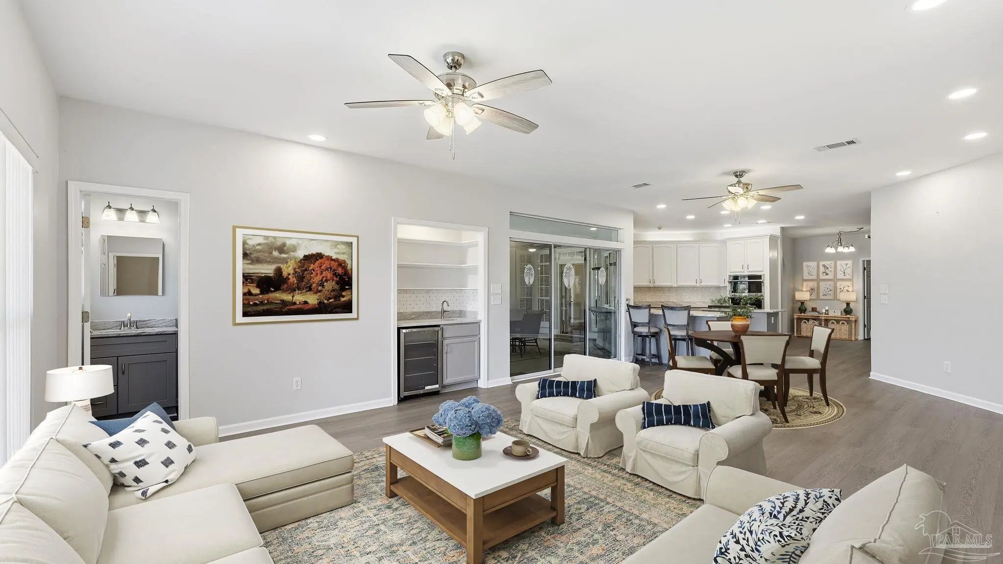 This beautifully updated 4 bedroom, 3 bathroom residence in Tiger Point Village offers breathtaking views of Tiger Point East signature hole #5 with its island green, along with glimpses of Santa Rosa Sound from the pool area, front of the house and the newly enclosed Florida room. Designed with both comfort and entertainment in mind, this single story split-level floor plan boasts multiple living areas, creating the perfect space for relaxation and hosting guests. The updated kitchen features stainless steel appliances, a walk-in pantry and ability to serve straight into the Florida room. The master suite features a walk-in shower, separate soaking tub and walk-in closets. Two other bedrooms share a jack and jill bathroom with walk-in shower. Major upgrades bring peace of mind, including a newer roof, HVAC system, and updated ductwork for improved efficiency and comfort. From the Florida room, step outside to your private oasis. A heated gunite pool, enclosed within a screened lanai, making it enjoyable year-round. Whether you're soaking up the serene golf course views, hosting gatherings, or simply unwinding, this home is truly an entertainer’s dream. Don’t miss this rare opportunity to own a move-in-ready gem in Gulf Breeze! Schedule your private showing today.