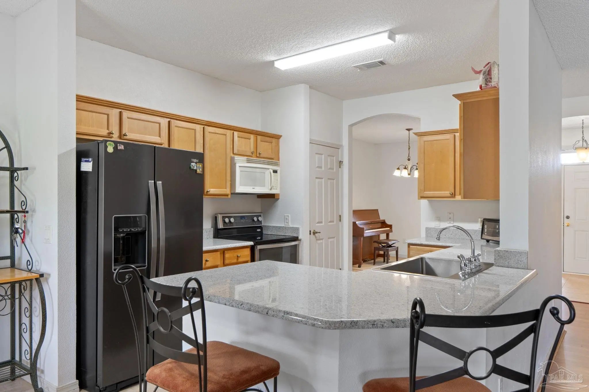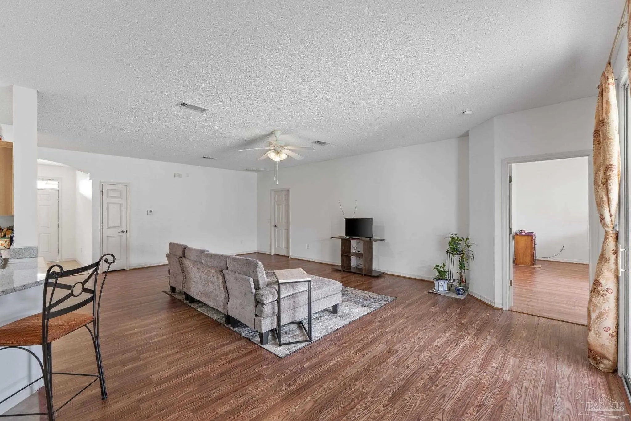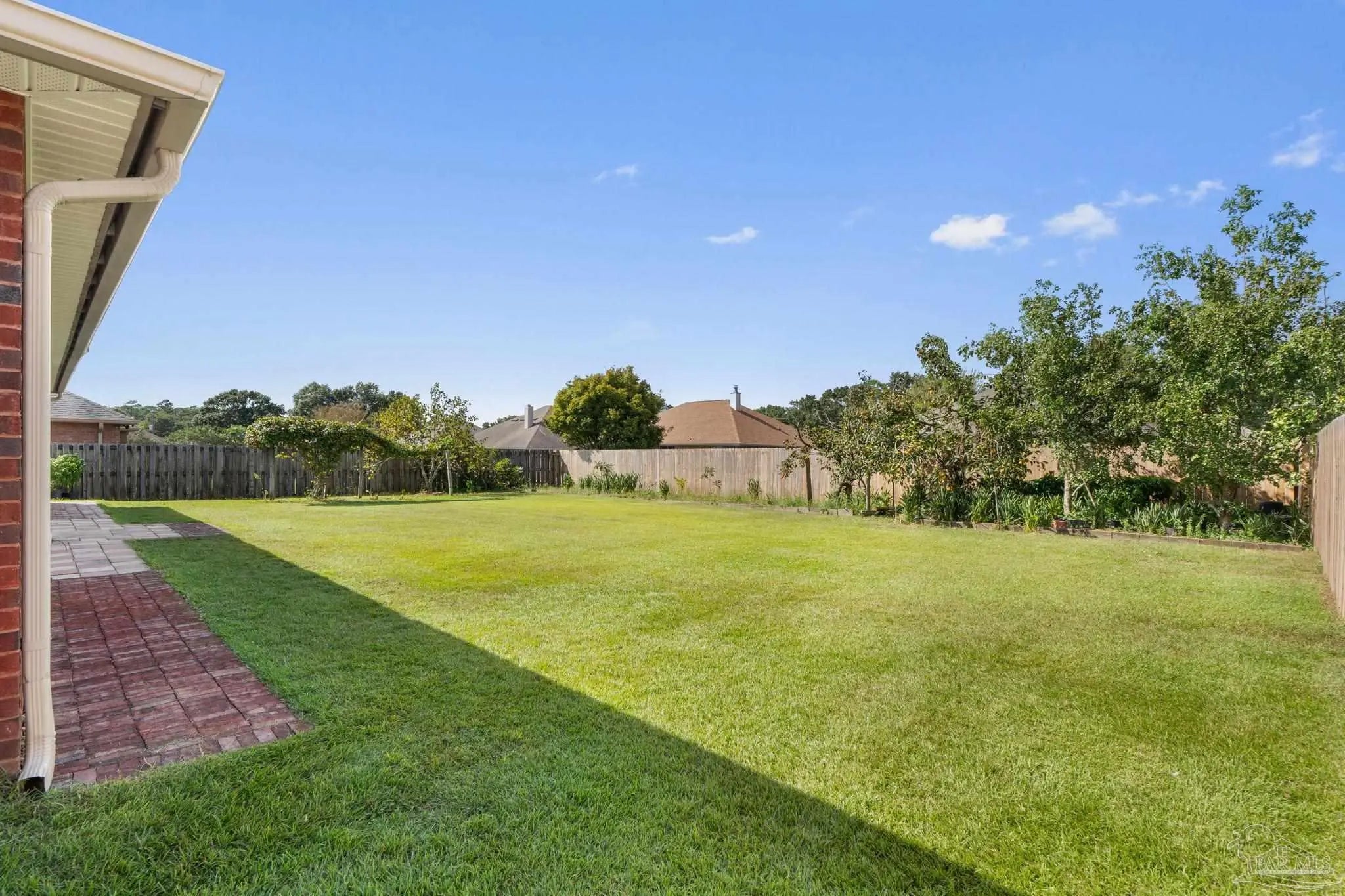 Welcome home to this four bedroom, three bathroom home that features as THREE car garage, split floor-plan, Jack and Jill suites, formal dining room, large utility room, living room, breakfast nook, breakfast bar, large pantry, kitchen and a covered back porch. The home has been very well maintained; the sellers replaced all the main floors in 2025, updated the Kitchen with granite countertops, a stainless steel dishwasher, a drop in large kitchen sink, and a water heater (2024). Step inside the foyer be welcomed by the arched openings, inviting you into the Formal Dining Room and the Living Room. The Utility Room is large and has a pedestrian door leading out to the garage. The three car garage also features a pedestrian door out to the side yard behind the privacy fence. The Living Room features new wood laminate flooring, overlooks the covered back patio and the Kitchen. The Kitchen features Granite countertops, a walk/roll in pantry, stainless steel appliances and tons of cabinets! There is plenty of dining spaces for all of your guests between the breakfast bar, breakfast nook and Formal Dining Room! The Primary Suite has a large bedroom with sliding doors leading out onto the covered patio. The bathroom is roomy with a double vanity, shower stall, garden tub, water closet and a linen closet. Across the living room area is three bedrooms and two bathrooms. The front two bedrooms share a bathroom and the third bedroom has access to the bathroom that is just off the breakfast nook. This bathroom also provides access to the back patio and makes a great guest bathroom. The back patio is screened in, and just outside the screen enclosure is a walking path to both sides of the yard. The sellers are avid Gardners and have planted several producing trees; kumquat, fig, persimmon, Japanese Plum and Juju Be. The home features two separate meters, perfect for maintaining your garden and not being charged extra! Schedule your showing today!