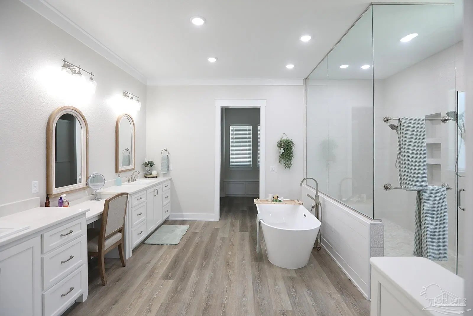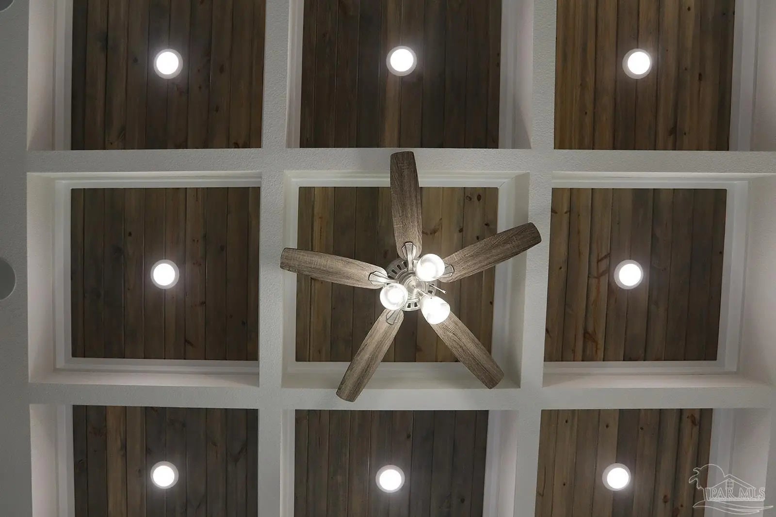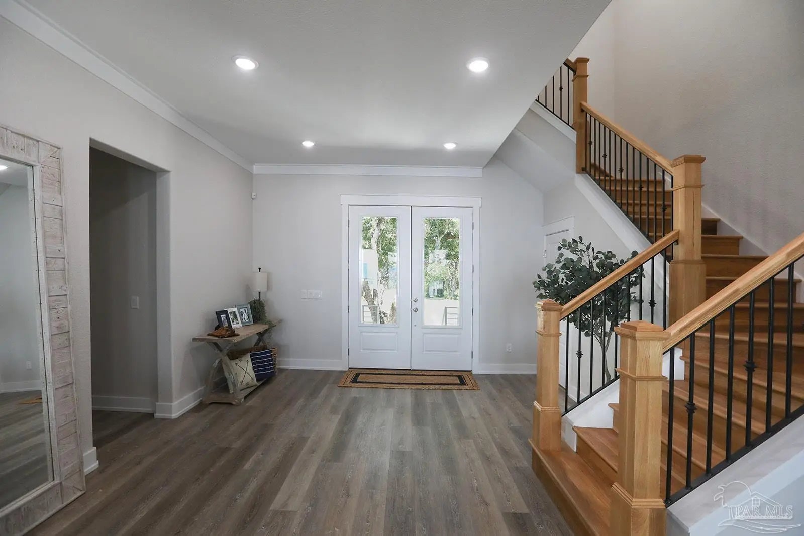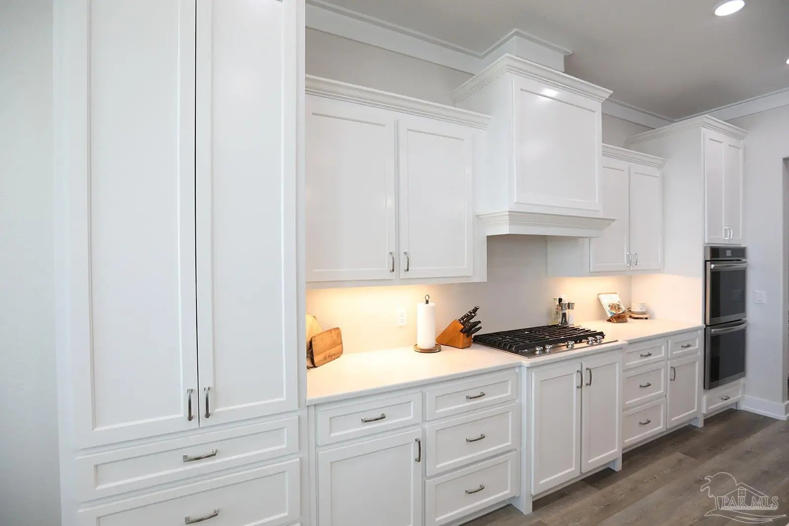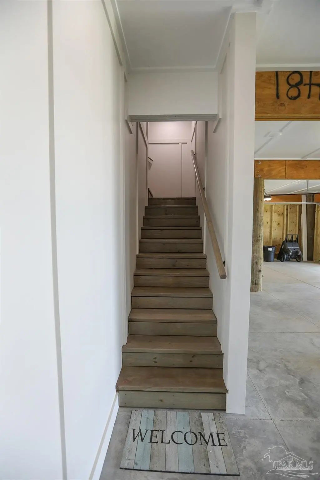 Fully Furnished Luxury Waterfront Living!! This custom built home sits on a half acre lot directly on Escambia Bay. Nestled among mature oaks in a quiet cup-da-sac, this home is waterfront living at its best. The 330' dock leads to a 30' boat house with lift. There is a 15'x30' platform great for entertaining. When you enter the front door the views through the rear French doors sets the stage. With coffer ceiling in the living room with stacked stone fireplace with built in book cases on each side. The living room is directly open to the kitchen and dining room. The kitchen features quartz countertops, gas cooktop, double oven, dishwasher and fridge. The dining room is directly off the kitchen with spectacular views of the bay. The butlers pantry you will find more cabinets along with a beverage fridge with a custom pantry with additional storage and microwave. The large main bedroom has high ceilings with black out curtains with windows overlooking the bay. The main bathroom has double vanity, make up area, freestanding tub and over sized tile shower with dual shower heads. The oversized closet has window seat and custom cabinetry. To the right of the front door you will find a half bath, a large storage closet that could be used as an office and oversized laundry room with custom cabinets, washer and dryer. Upstairs you will find two more bedrooms and a Jack and Jill bath. The loft area is great place for kids to hang out. Upstairs you will also find additional storage and the Media closet. The house has security cameras, alarm system, wifi extenders, 3 zone stereo system. The covered back patio has cypress ceiling with two huge ceiling fans, gas fireplace, with TV. The oversized garage under house has glass garage door across the back and a storage room with ice machine Floor plan in Docs
