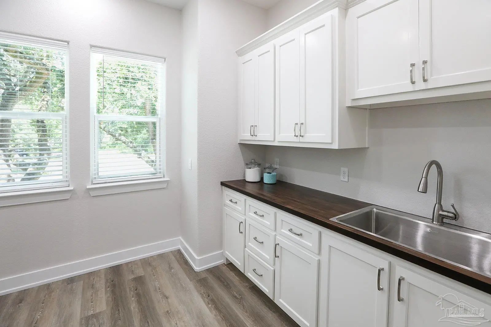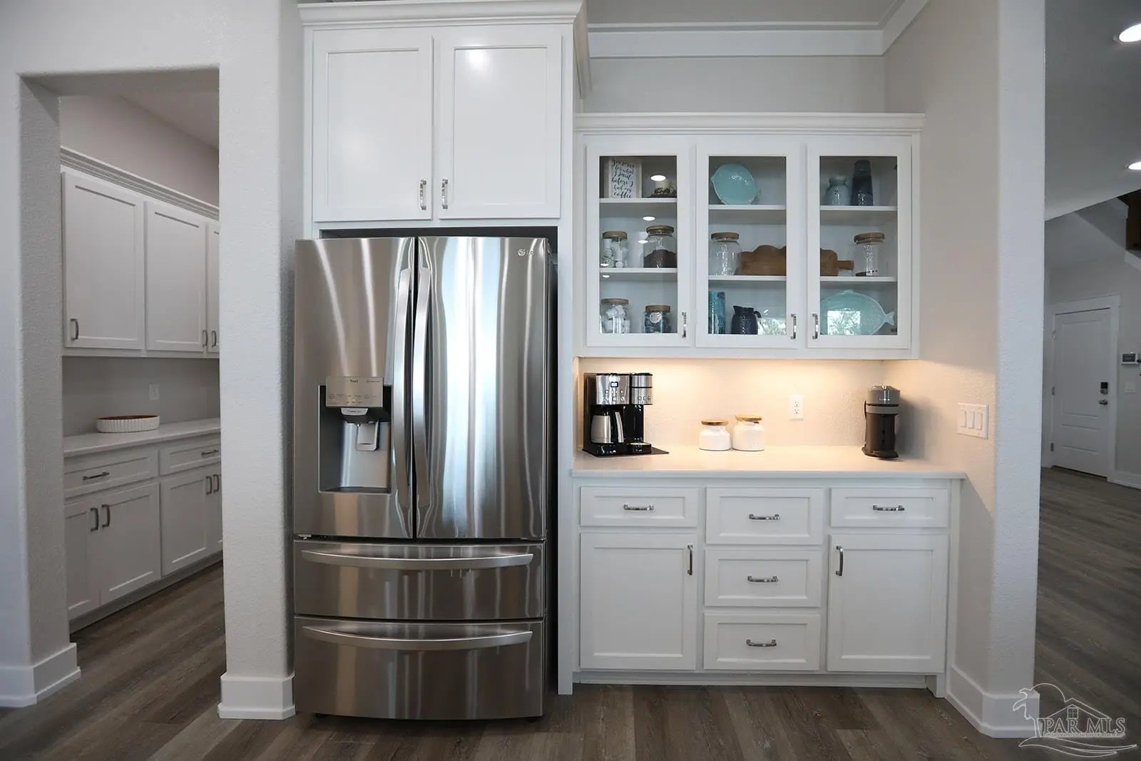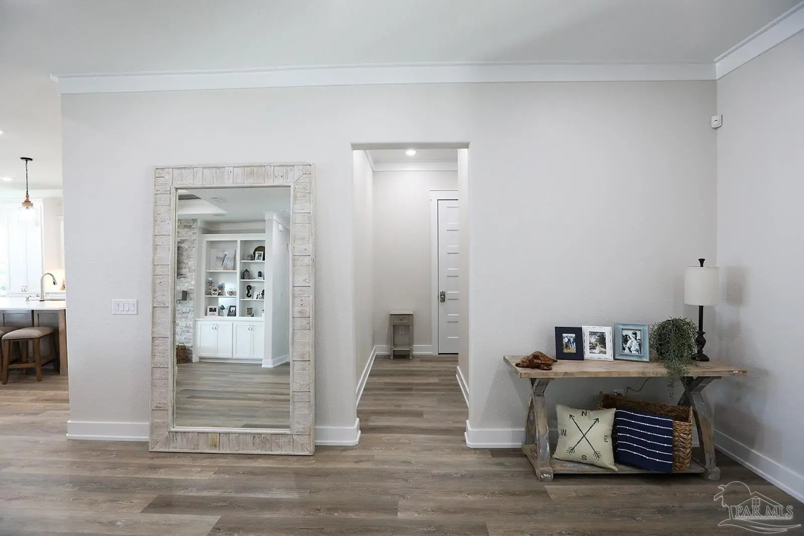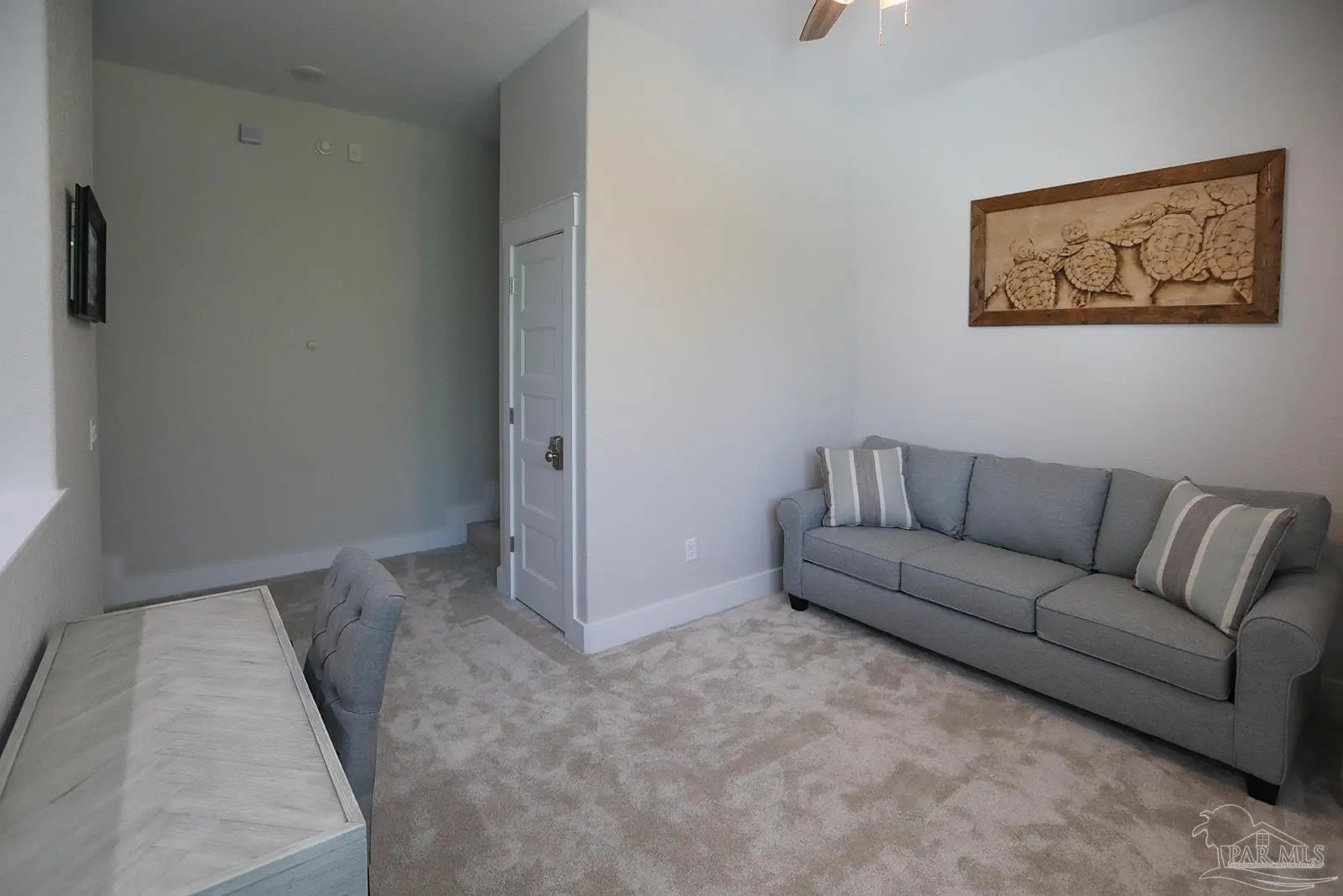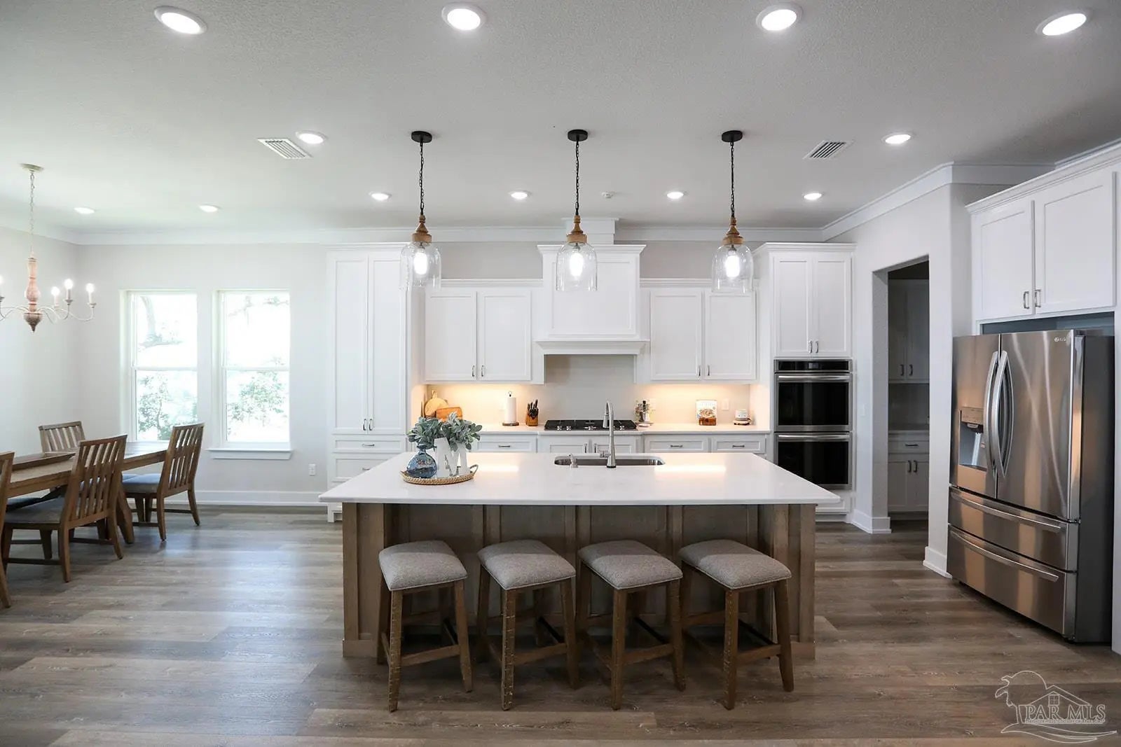 Fully Furnished Luxury Waterfront Living!! This custom built home sits on a half acre lot directly on Escambia Bay. Nestled among mature oaks in a quiet cup-da-sac, this home is waterfront living at its best. The 330' dock leads to a 30' boat house with lift. There is a 15'x30' platform great for entertaining. When you enter the front door the views through the rear French doors sets the stage. With coffer ceiling in the living room with stacked stone fireplace with built in book cases on each side. The living room is directly open to the kitchen and dining room. The kitchen features quartz countertops, gas cooktop, double oven, dishwasher and fridge. The dining room is directly off the kitchen with spectacular views of the bay. The butlers pantry you will find more cabinets along with a beverage fridge with a custom pantry with additional storage and microwave. The large main bedroom has high ceilings with black out curtains with windows overlooking the bay. The main bathroom has double vanity, make up area, freestanding tub and over sized tile shower with dual shower heads. The oversized closet has window seat and custom cabinetry. To the right of the front door you will find a half bath, a large storage closet that could be used as an office and oversized laundry room with custom cabinets, washer and dryer. Upstairs you will find two more bedrooms and a Jack and Jill bath. The loft area is great place for kids to hang out. Upstairs you will also find additional storage and the Media closet. The house has security cameras, alarm system, wifi extenders, 3 zone stereo system. The covered back patio has cypress ceiling with two huge ceiling fans, gas fireplace, with TV. The oversized garage under house has glass garage door across the back and a storage room with ice machine Floor plan in Docs