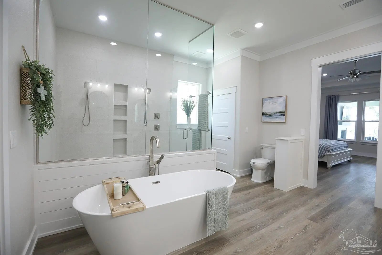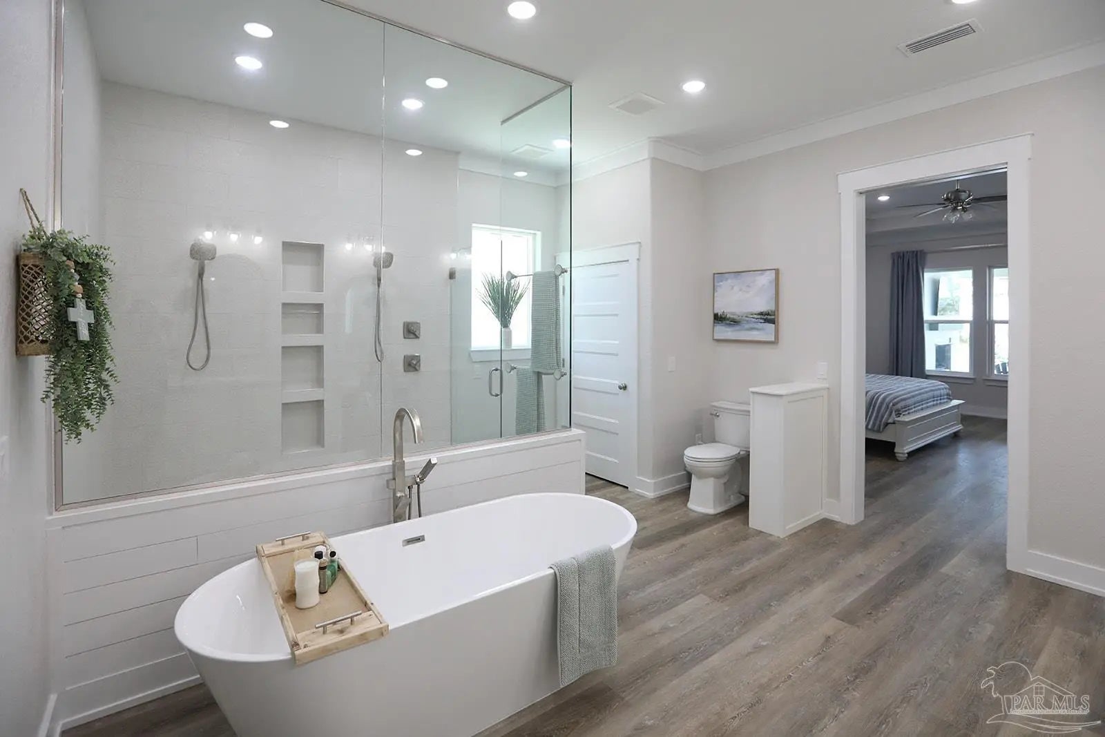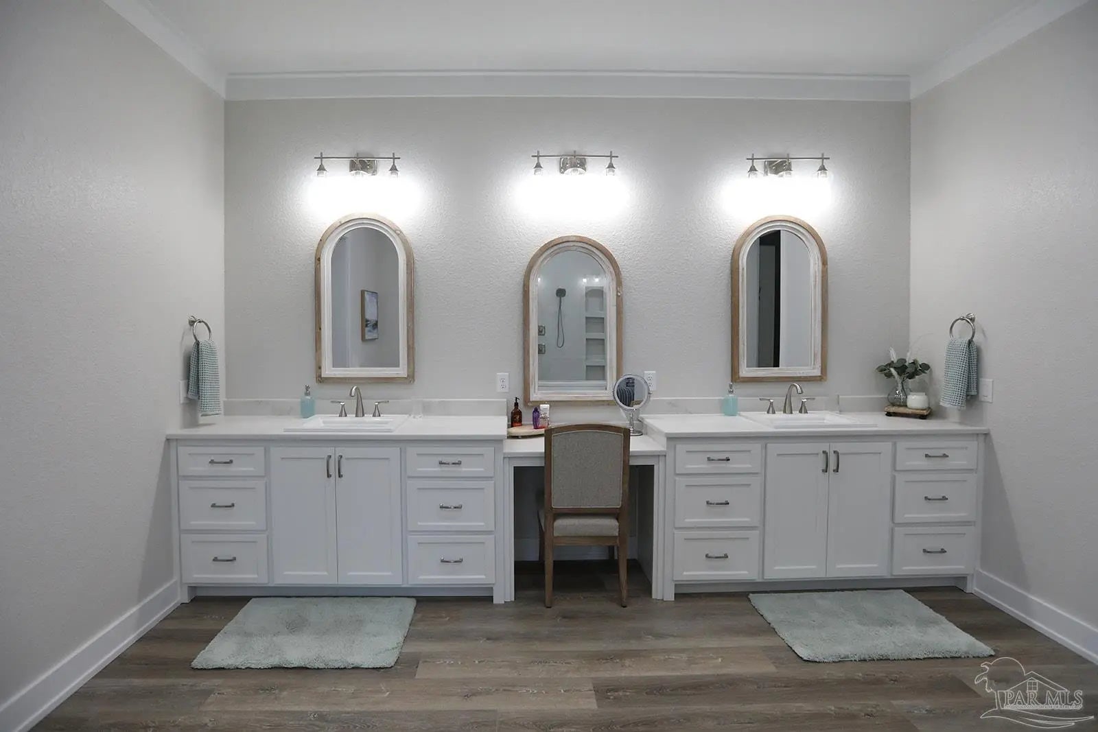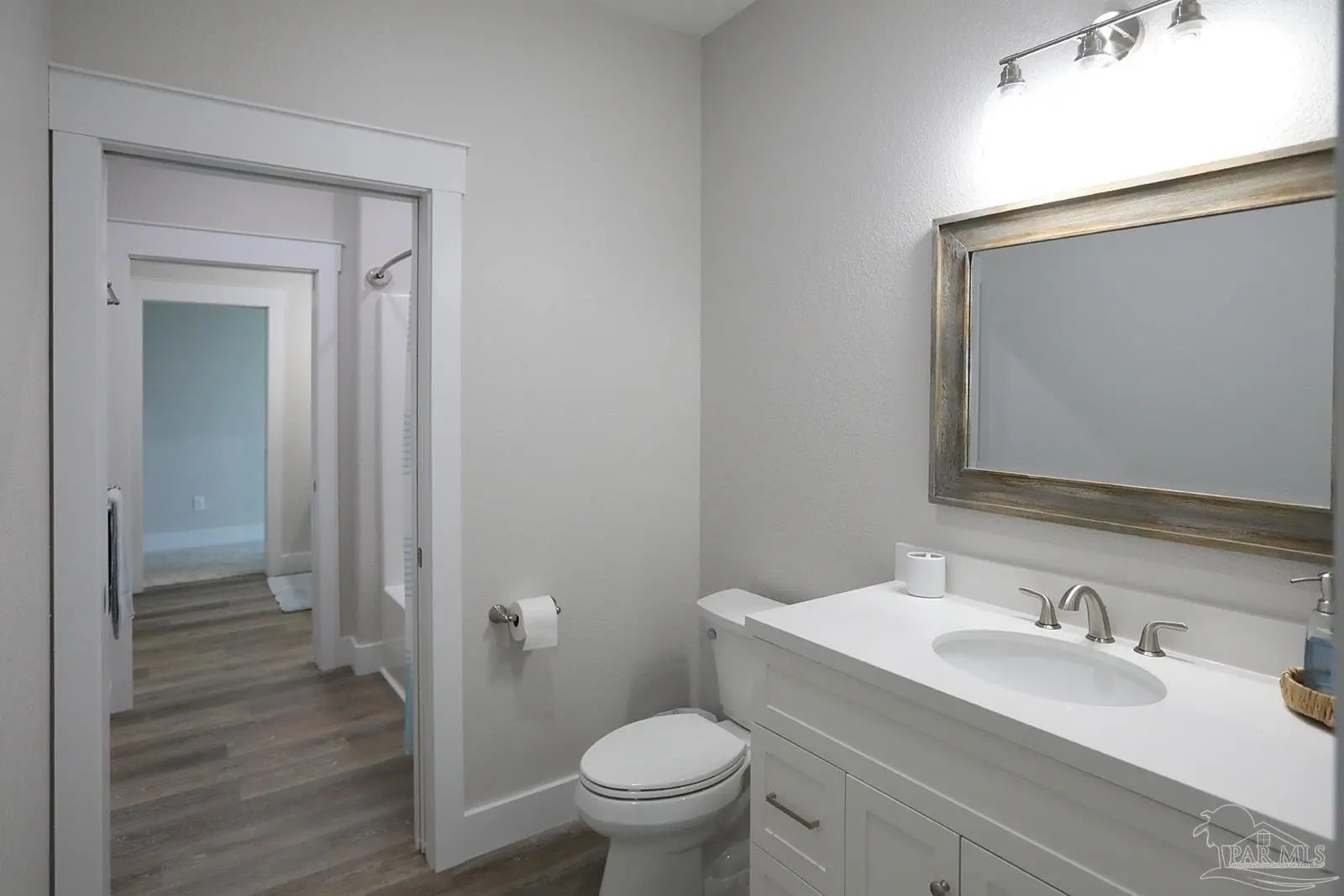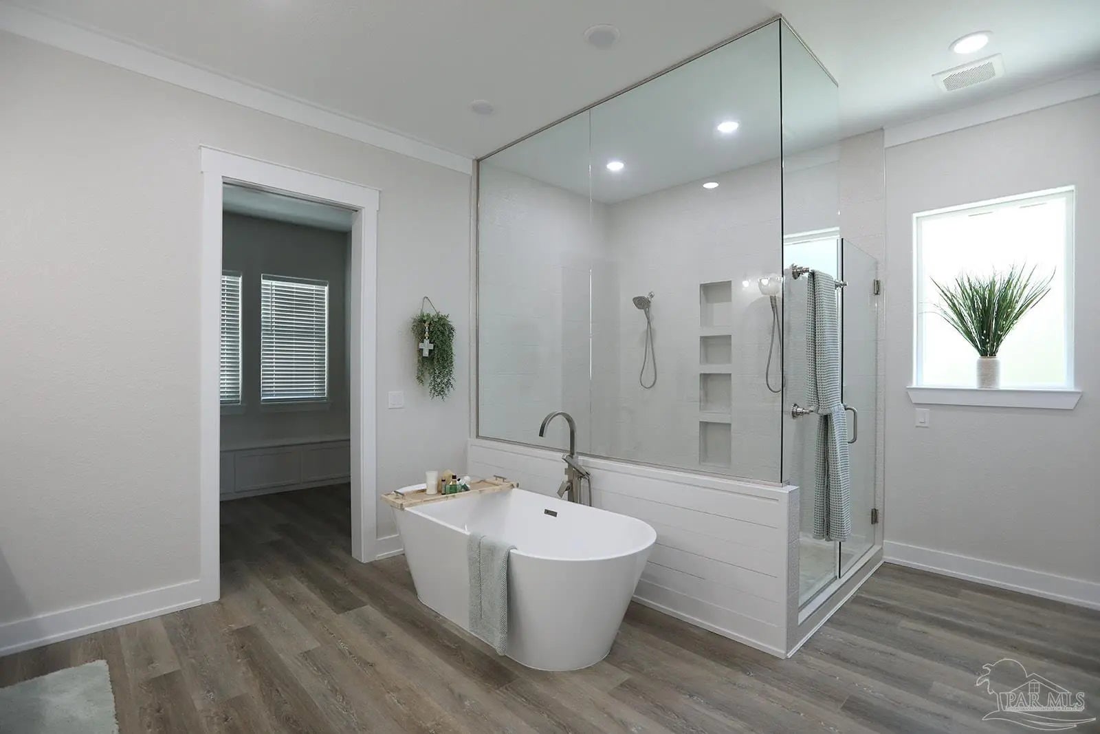 Fully Furnished Luxury Waterfront Living!! This custom built home sits on a half acre lot directly on Escambia Bay. Nestled among mature oaks in a quiet cup-da-sac, this home is waterfront living at its best. The 330' dock leads to a 30' boat house with lift. There is a 15'x30' platform great for entertaining. When you enter the front door the views through the rear French doors sets the stage. With coffer ceiling in the living room with stacked stone fireplace with built in book cases on each side. The living room is directly open to the kitchen and dining room. The kitchen features quartz countertops, gas cooktop, double oven, dishwasher and fridge. The dining room is directly off the kitchen with spectacular views of the bay. The butlers pantry you will find more cabinets along with a beverage fridge with a custom pantry with additional storage and microwave. The large main bedroom has high ceilings with black out curtains with windows overlooking the bay. The main bathroom has double vanity, make up area, freestanding tub and over sized tile shower with dual shower heads. The oversized closet has window seat and custom cabinetry. To the right of the front door you will find a half bath, a large storage closet that could be used as an office and oversized laundry room with custom cabinets, washer and dryer. Upstairs you will find two more bedrooms and a Jack and Jill bath. The loft area is great place for kids to hang out. Upstairs you will also find additional storage and the Media closet. The house has security cameras, alarm system, wifi extenders, 3 zone stereo system. The covered back patio has cypress ceiling with two huge ceiling fans, gas fireplace, with TV. The oversized garage under house has glass garage door across the back and a storage room with ice machine Floor plan in Docs