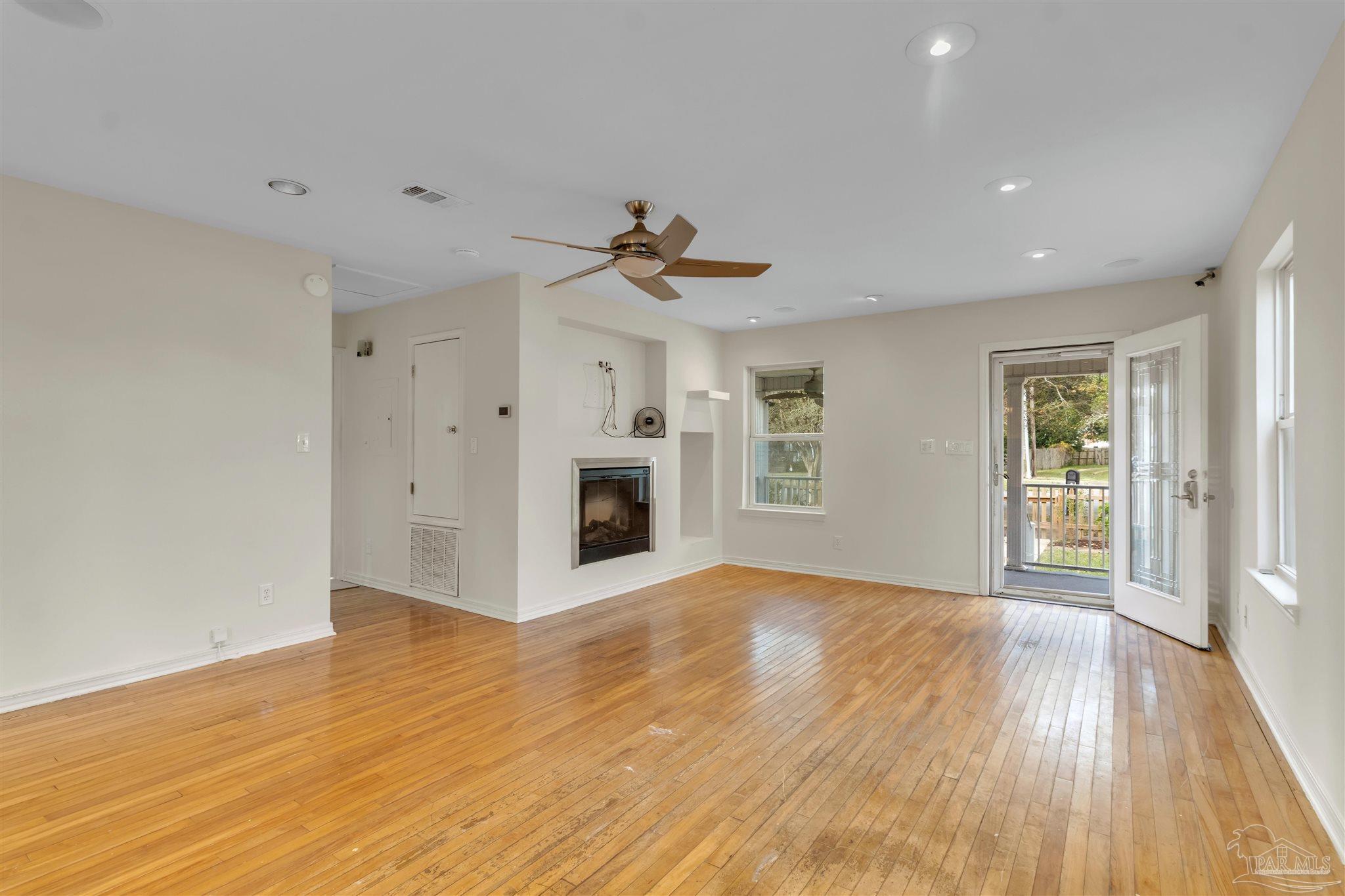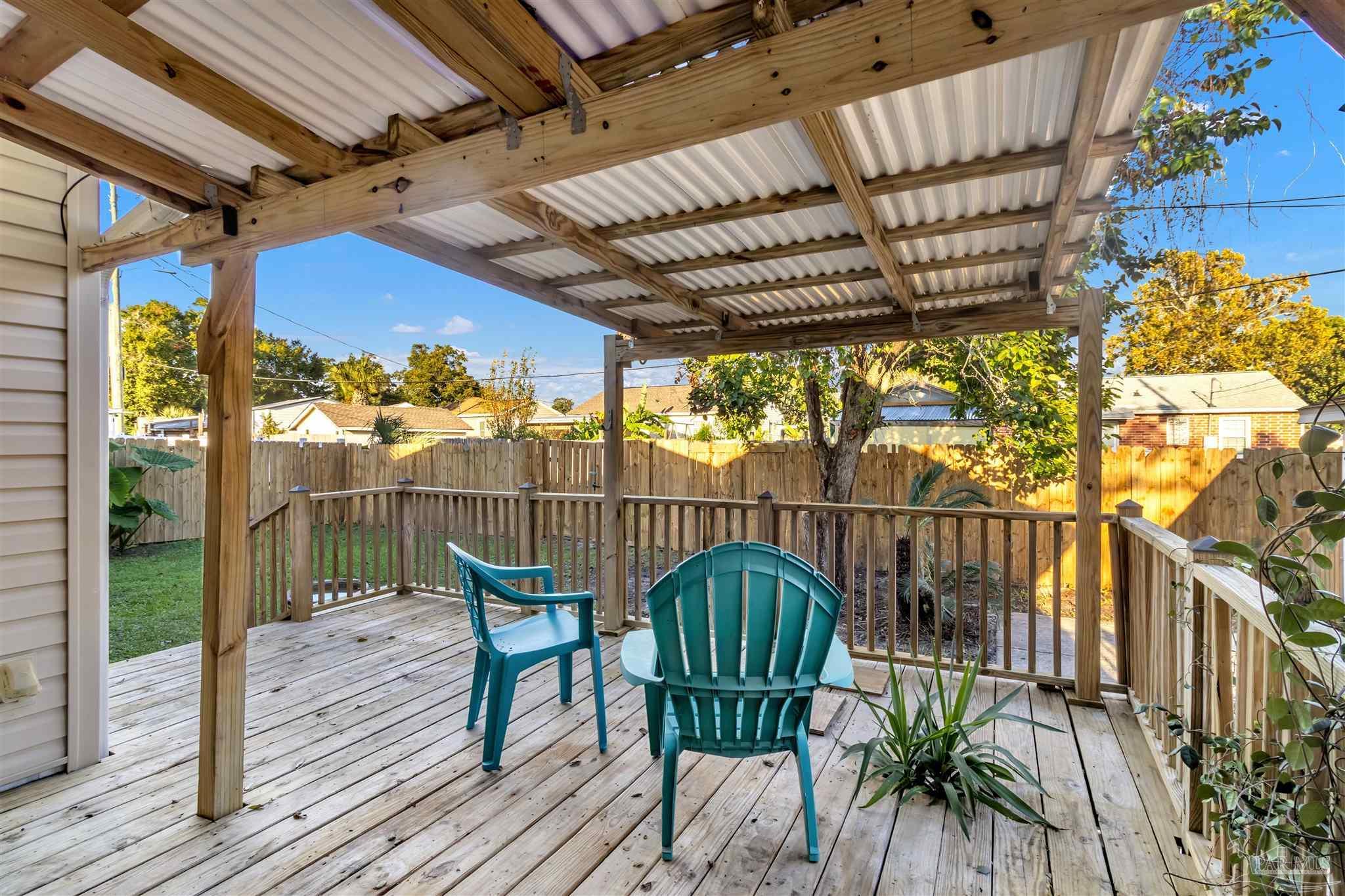 COZY, SPACIOUS COTTAGE WITH 400 sq OUT BUILDING Owner Moving and motivated to sell. Property was listed COMING SOON! It is AVAILABLE NOW to show. Newly painted and ready to move in. Discover this quaint and cozy but spacious two bedroom, two bathroom cottage nestled in the heart of beautiful Navy Point at Triangle Park. New paint and flooring help you move in now. Step back in time in this charming historic Triangle Park neighborhood, where life moves at a relaxed pace. Residents enjoy daily bike rides, peaceful walks through Triangle Park, and strolls along the scenic Navy Point Bayou and Park. From here, you can easily walk to Bayou Grande and Pensacola Bay. The remodeled historic home features a spacious backyard with a double deck that’s perfect for entertaining, plus a bonus fenced area for added privacy and use. Inside, the expanded chef’s kitchen steals the show with a huge island and professional-grade appliances—ideal for hosting family and friends. Built originally in 1944 and remodeled, the new bathroom and new chef-style kitchen with gas stove were added in 2008 by the long-time owner. Enjoy 232 sq. ft. of outdoor living on the back deck, along with a 96 sq. ft. front porch for morning coffee under the trees or evening relaxation. Additional storage is available with a 400 sq. ft. detached garage/outbuilding. Just one block away, you’ll find over two miles of Navy Point waterfront hiking and biking trails—perfect for an active, outdoor lifestyle. Staged virtual photos available in the listing for your review. Tour today! Buyer’s Disclosure linked. Buyer and Buyer’s agent to verify measurements.