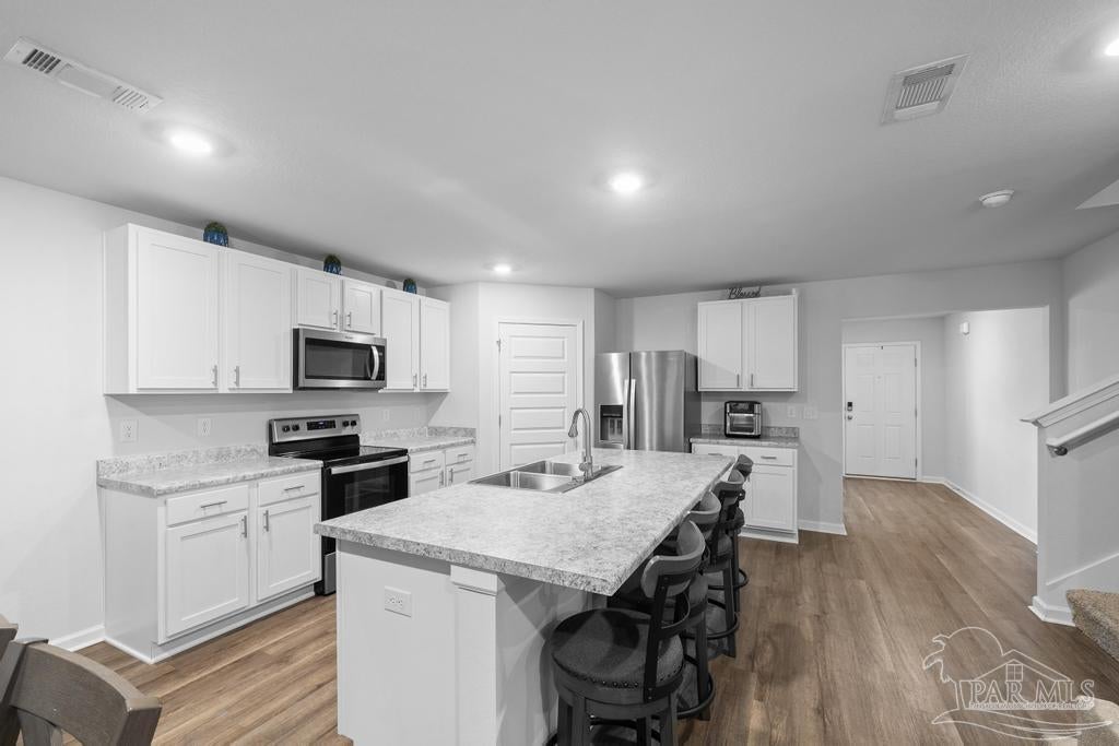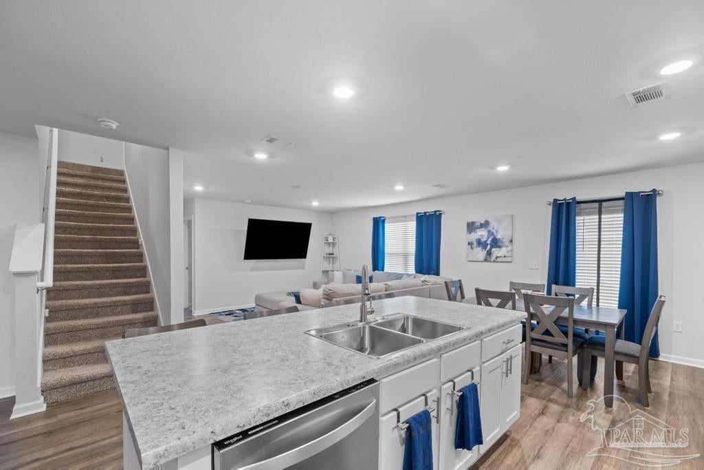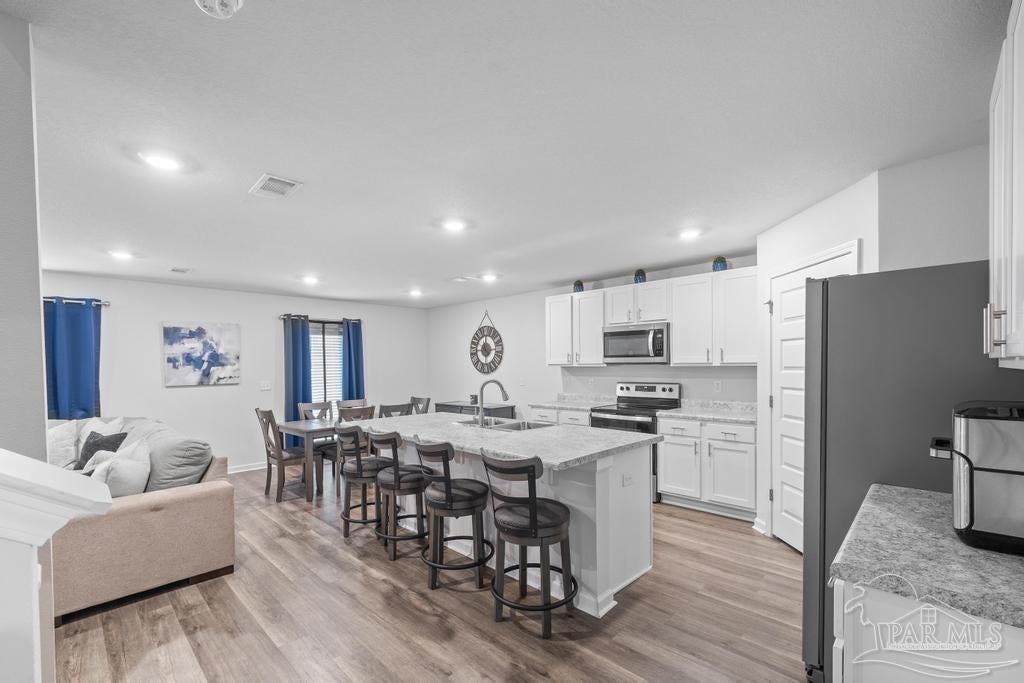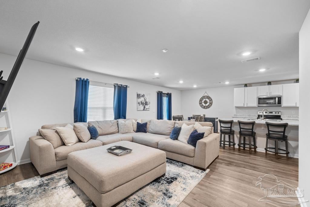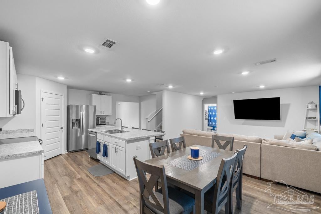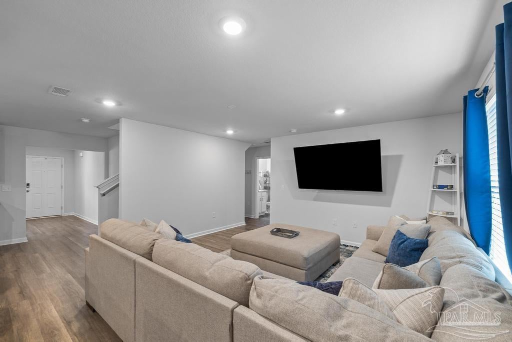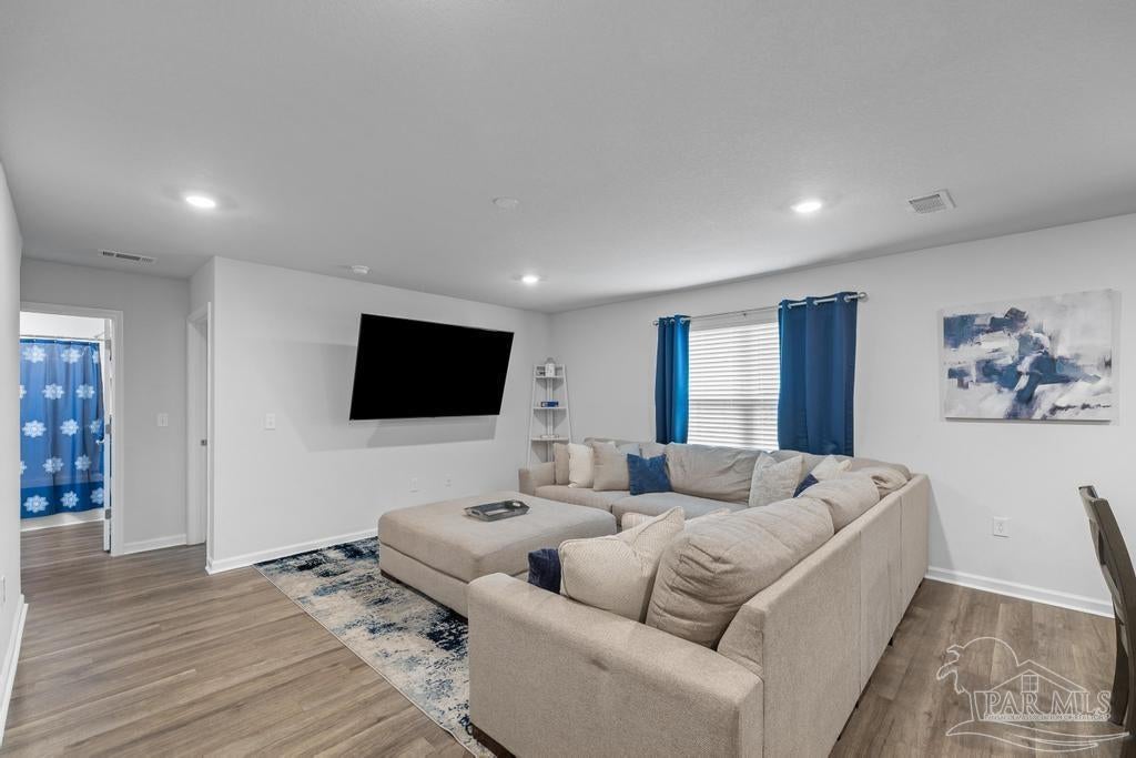 Spacious 5 bedroom, 3 bath two-story home that’s big on style, space, and fun! Step inside to a bright open floor plan where the spacious living area flows seamlessly into a contemporary kitchen with tons of cabinet space and a large dining area that’s perfect for everything from weeknight dinners to holiday feasts. The first floor also offers a full bathroom, a guest bedroom ideal for visitors or an in-law suite, and a versatile flex room that can be your home office, craft room, or formal dining space. Upstairs, you’ll find four generous bedrooms including a luxurious primary suite with two walk-in closets and a private bath, plus a second full bathroom, convenient upstairs laundry, and an additional family room perfect for movie nights, gaming, or home schooling. Outside, enjoy a private backyard built for BBQs, pets, and playtime, while the neighborhood park with splash pad and walking trail adds even more ways to have fun just steps from your door. With plenty of room to spread out and a prime location, this home has everything you need to live big and live comfortably!