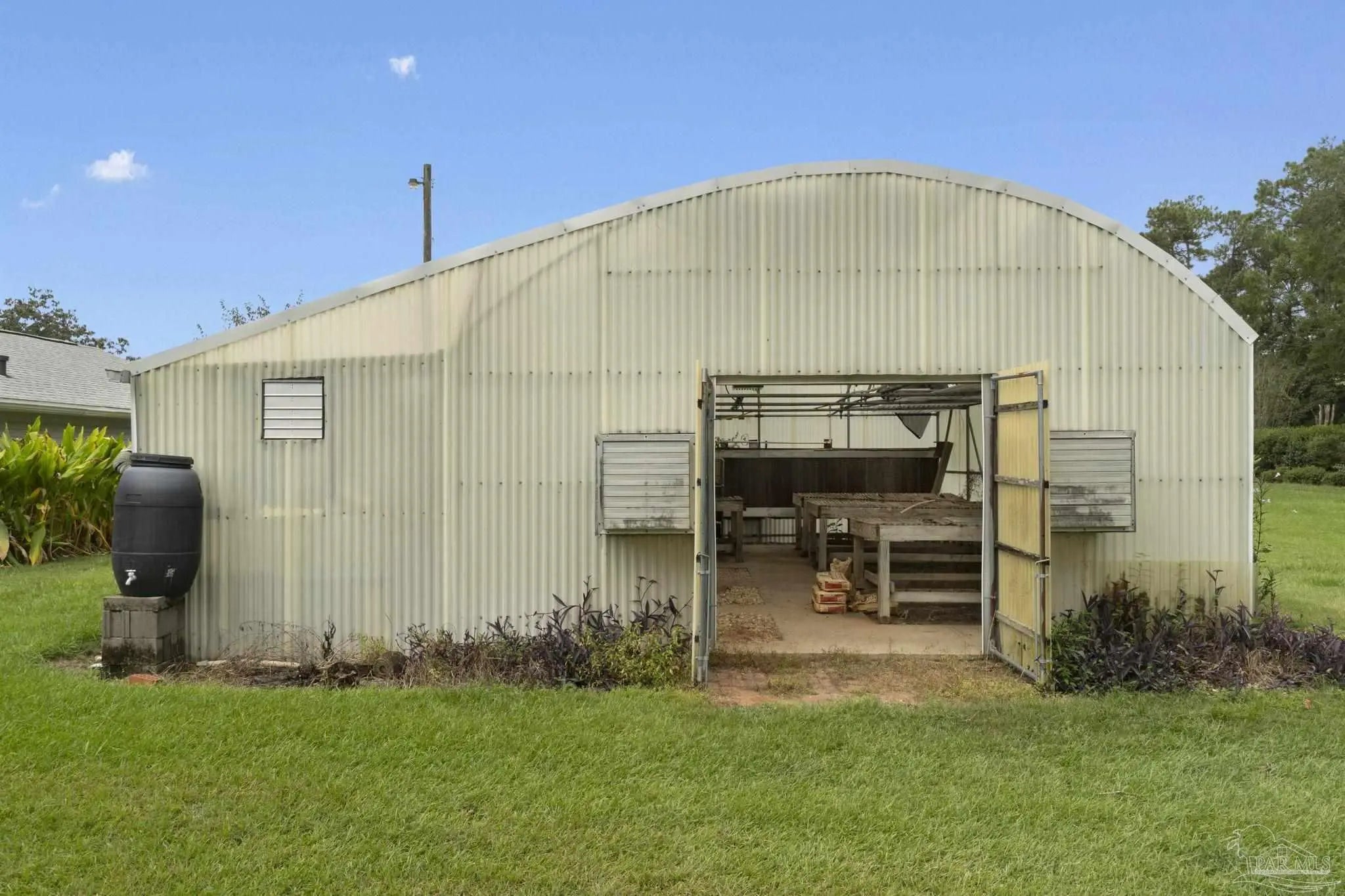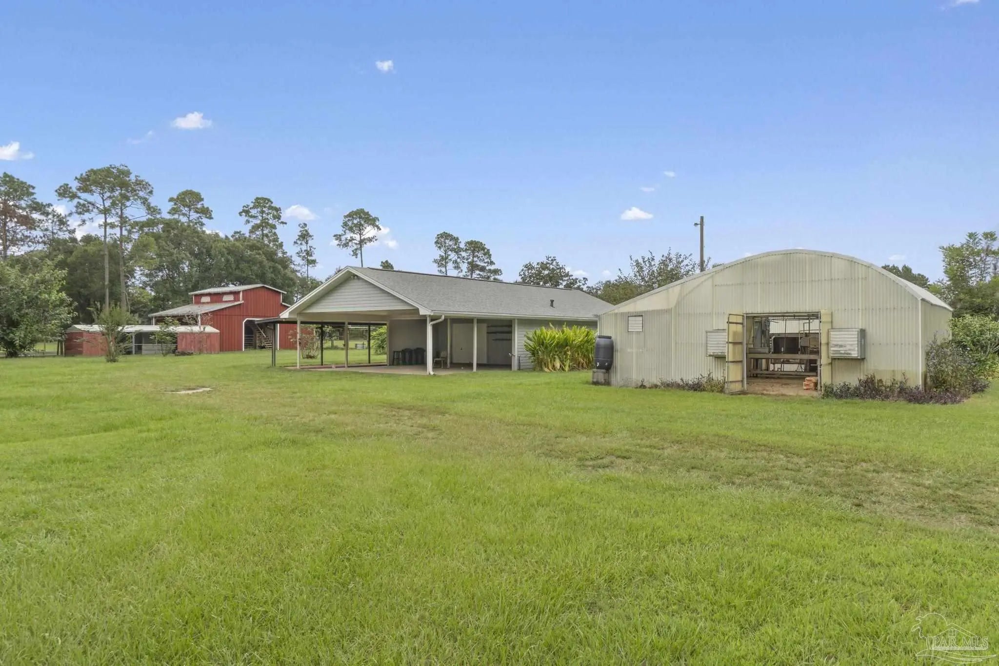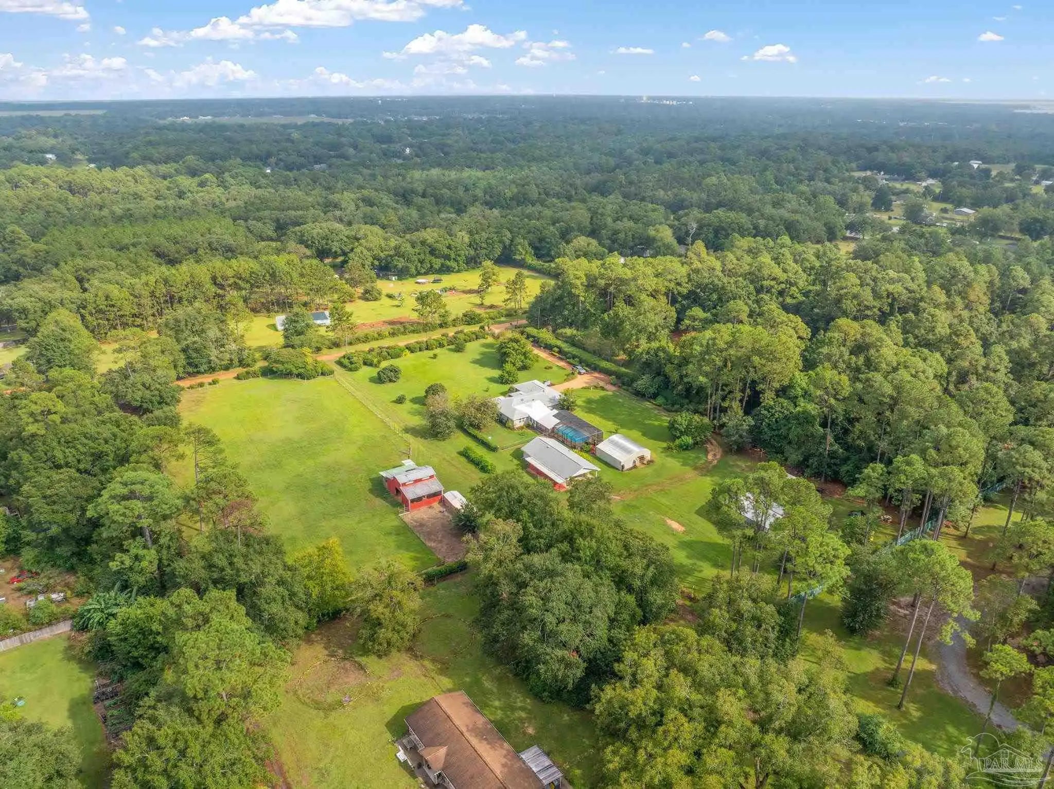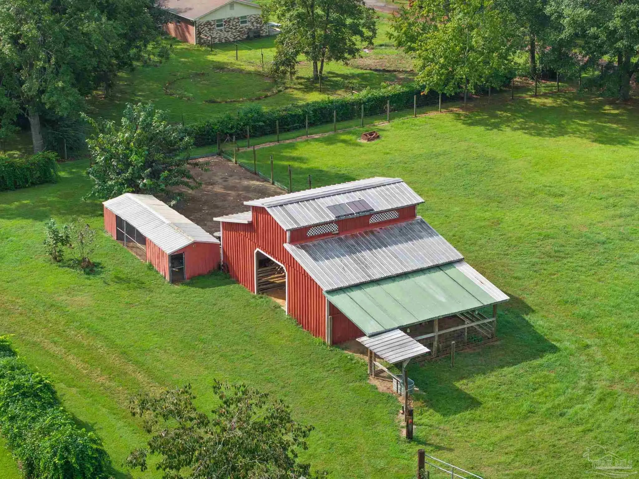 Set amid four peaceful acres in sought-after Pace, this four-bedroom, two-bath residence blends the ease of modern living with the charm of a private country estate. A welcoming front porch leads into an open, light-filled interior where generous living spaces and warm finishes create an inviting atmosphere. The kitchen offers ample counter space and storage, while the adjoining dining and family areas are perfect for gatherings large or small. A 320-square-foot sunroom stretches across the back of the home, framed by walls of windows that overlook the sparkling inground pool and landscaped grounds. The screened pool enclosure ensures year-round enjoyment, whether you’re swimming on warm afternoons or hosting evening get-togethers under the stars. Outdoors, the property is designed for versatility and self-sufficiency. A detached 1,000-square-foot garage provides room for multiple vehicles, a workshop, or serious storage. Nearby, a 24×36 pole barn offers storage for your boat or tractor. A 24×36 horse barn accommodate animals, equipment, or hobby projects, while a greenhouse invites you to cultivate vegetables and flowers throughout the seasons. A whole-home generator offers peace of mind during storms, and a full sprinkler system keeps the grounds lush with minimal effort. Despite its quiet, rural setting, the home sits just minutes from top-rated schools, shopping, and dining in Pace. Whether you envision a small farm, an equestrian retreat, or simply a spacious haven away from the rush of town, this property delivers privacy, practicality, and room to grow—making it a rare find in today’s market.