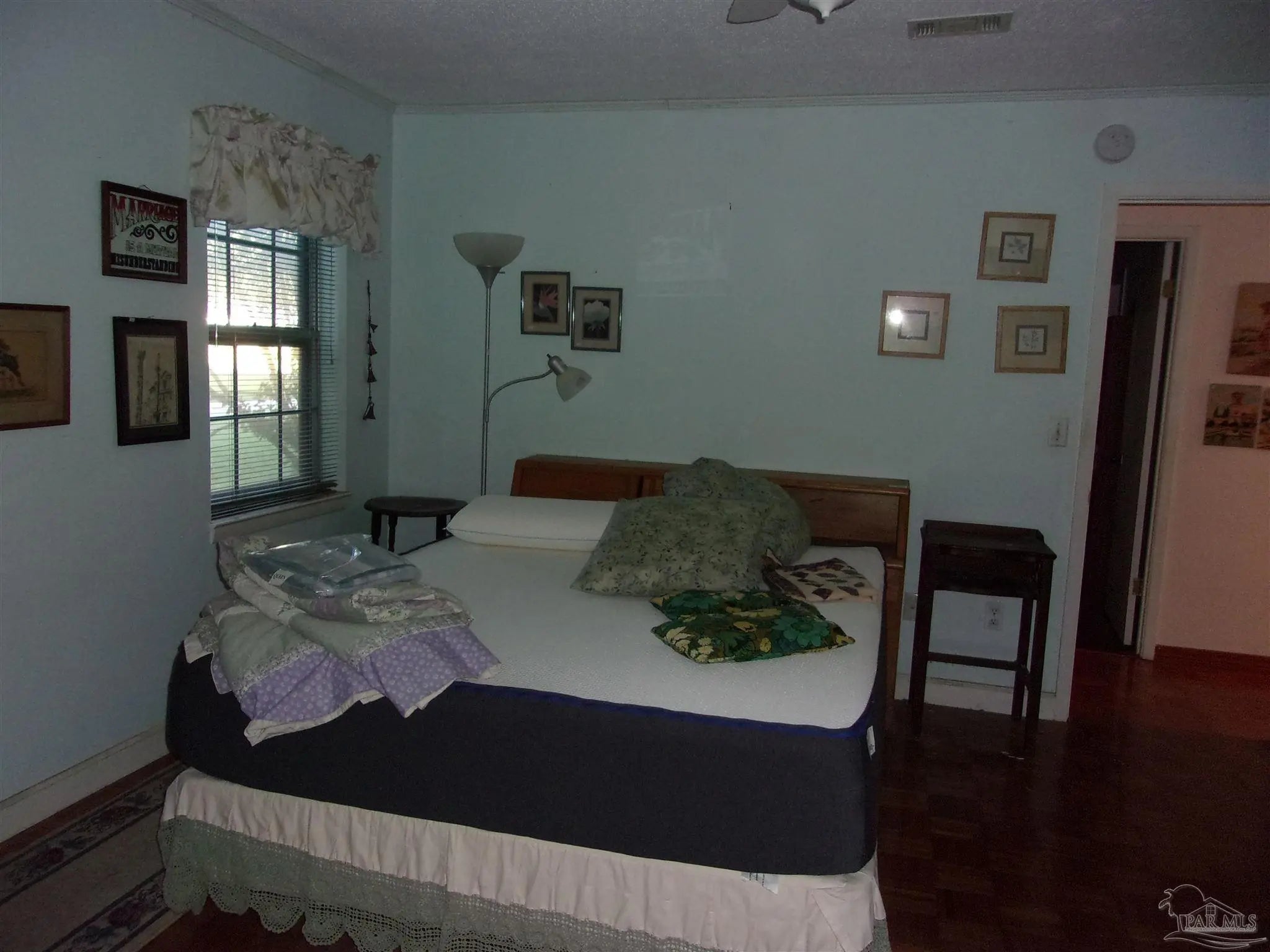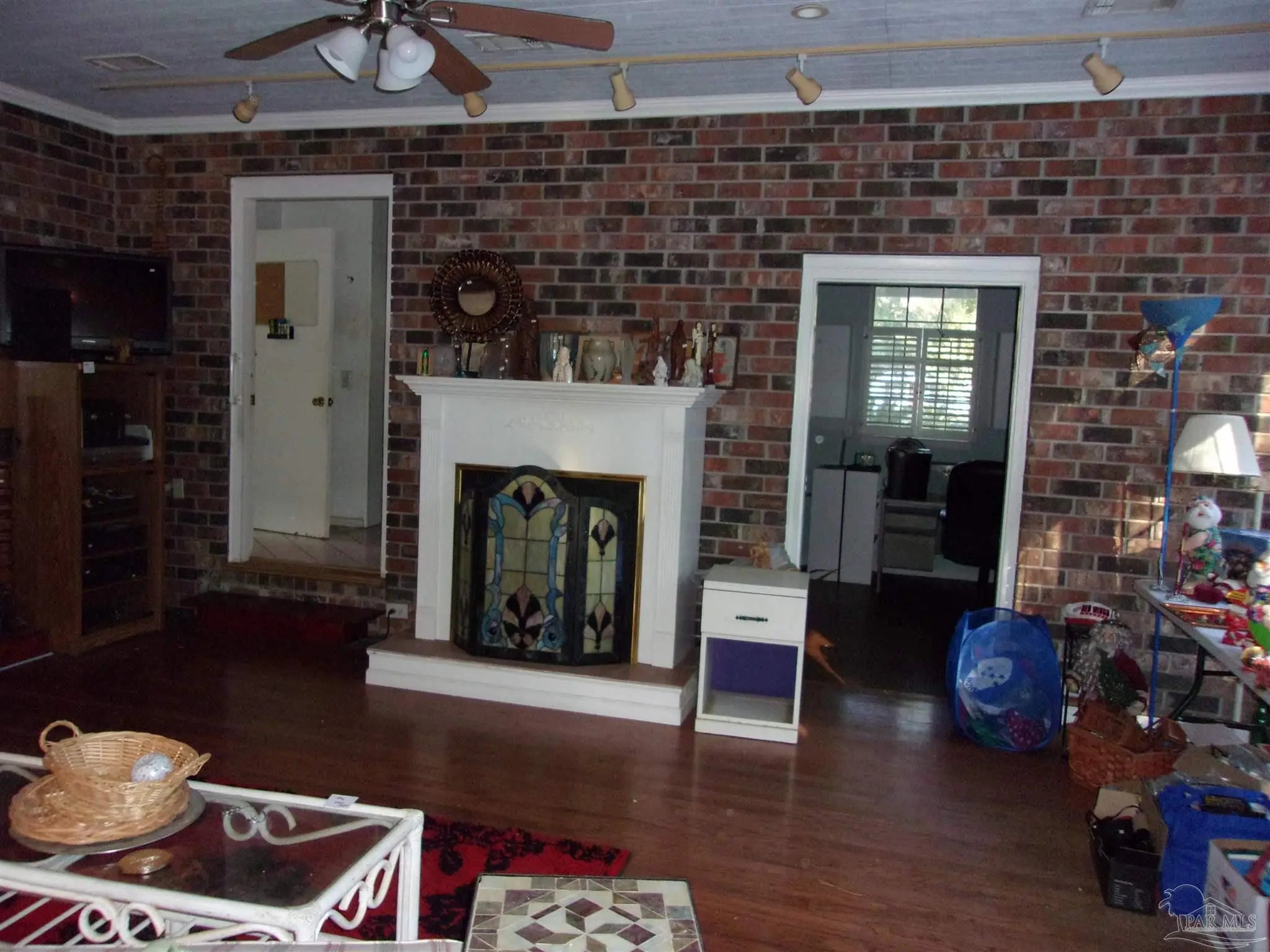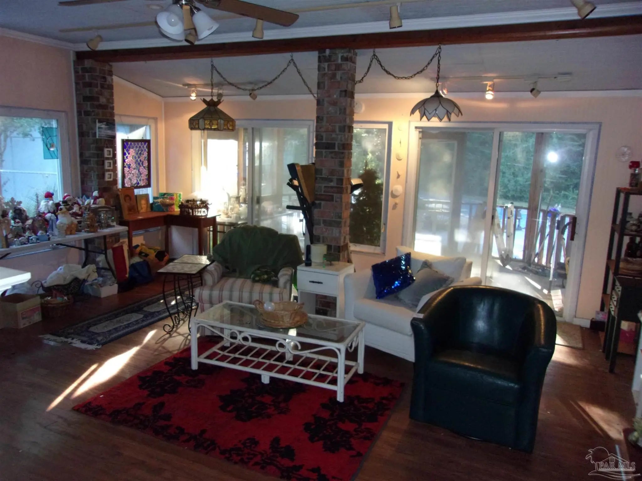 Three bedroom, 3 bath POOL home located in the heart of Pace. This well maintained home has unlimited possibilities for living style. The .63 acre lot offers a country feel but with the convenience of urban living. The home boasts wood and parquet floors and has a large sun room filled with light. Stove and fireplace operate off propane. The screen porch overlooks the pool and private backyard. The generator remains. It can be operated by propane or gasoline. There are 3 out buildings on the property, one large enough for a workshop or for a craft enthusiast. Quiet street, quiet neighborhood and no HOA.