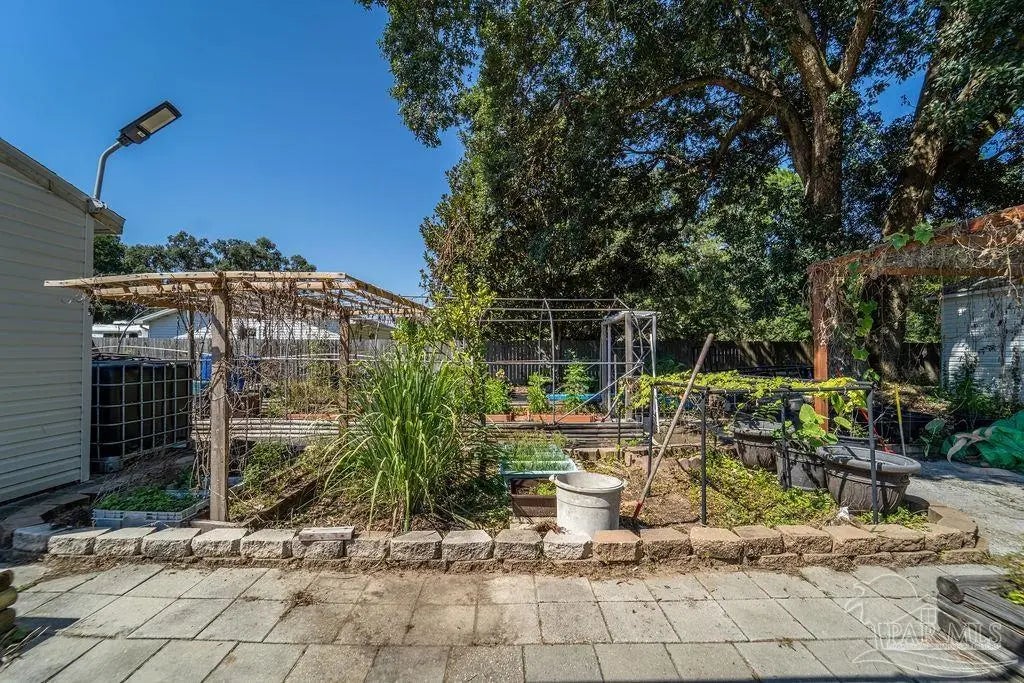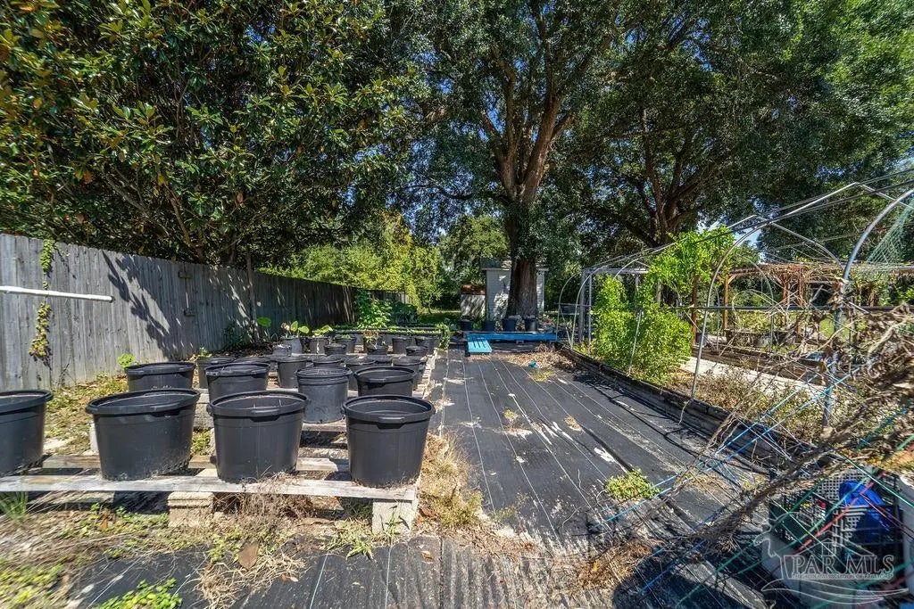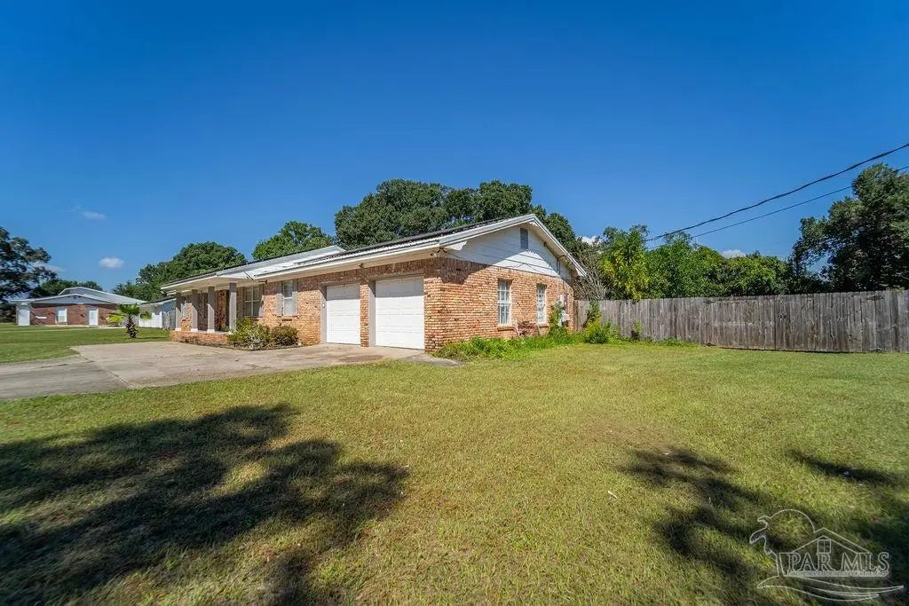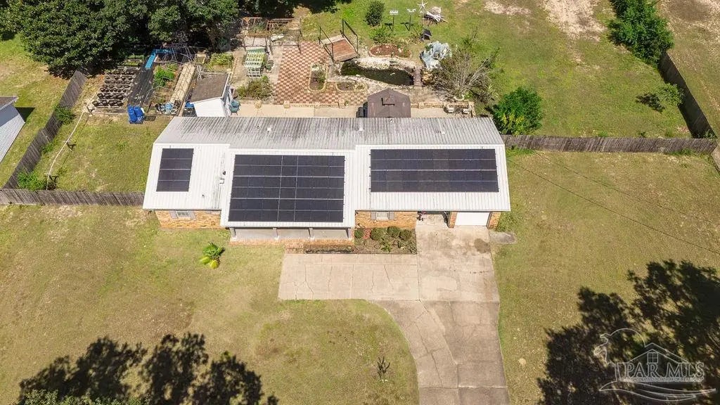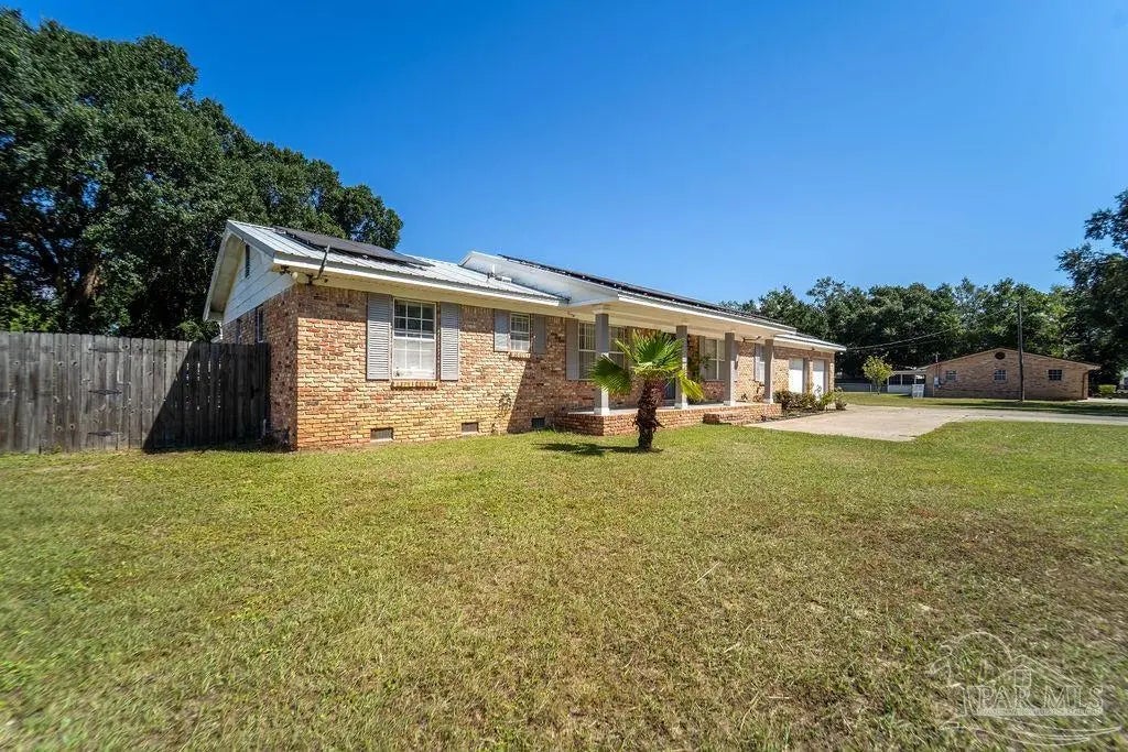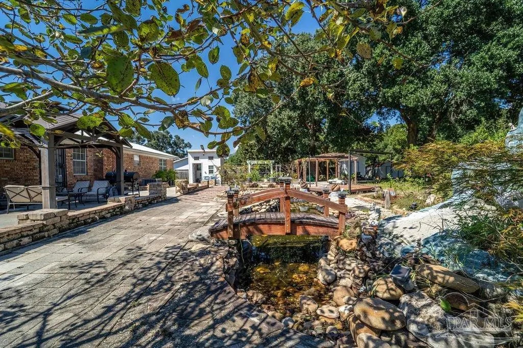 Welcome to a truly special Pensacola home, lovingly maintained and ready for its next chapter. Situated on a spacious 1.24-acre rectangular lot with only five neighbors and no HOA, this property offers the perfect blend of privacy, comfort, and convenience. Inside, you'll find 3 bedrooms and 2 full bathrooms, highlighted by original wood flooring in the foyer, living room, and hallway, plus a dining room with a cozy fireplace. The converted garage adds extra living space with its own family room and kitchen, while the utility room includes an interior washer and dryer hookup. Modern updates include all-recessed lighting, newer windows, and a brand-new 2023 metal roof, with a 2014 HVAC system for year-round comfort. Outside is an entertainer's dream, featuring an open front patio, a concrete backyard slab perfect for BBQs, a pergola, two storage buildings, and an additional outhouse bathroom ready to serve a future pool. The oversized backyard easily accommodates RV or boat parking, outdoor toys, and even a dream garden oasis complete with a custom koi pond, bridge, and shaded relaxation areas. Best of all, solar panels will be fully paid off at closing. Just minutes from white sandy beaches, nearby boat ramps, excellent schools and colleges, the airport, and the interstate, this home offers both tranquility and easy access to everything Pensacola has to offer. Give me a call today for a personal tour!