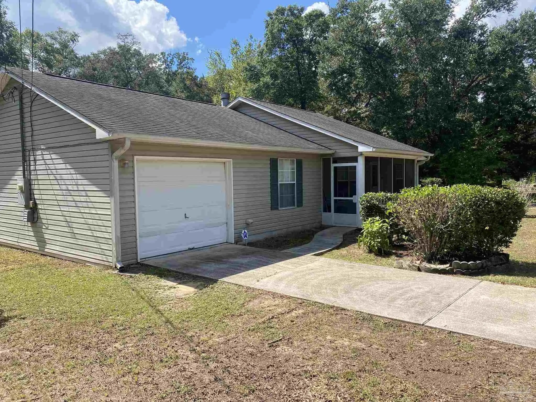 Move in before Christmas! Stake your claim with this 1997 3-bedroom, 2-bath, one owner home located on a 1-acre parcel at the end of a private street in Milton. Just a 10-minute drive to I-10 or Hwy 90, this home offers the opportunity for a quiet and private lifestyle. Engage in gardening, continue pruning the variety of fruit trees (the family says the oranges produced are sweeter than the ones you can find at a corner market) or recreate the land to complete your vision. Relax or entertain on the large, screened back porch, or spend time reading on the screened front porch. Both screened porches are unique to most homes and add to the spaciousness of this home. The new HVAC system (replaced in May of 2024) keeps the home comfortable, and the Water Heater (replaced in 2020) does its job as well! The 'never used' wood burning fireplace features a blower to help disperse heat into the home. Take a look at the aerial view of the home and you will be able to see the complete property. If you are looking for privacy, and plenty of property to complete your dream visit 6333 Rice St today. Make this home yours today!